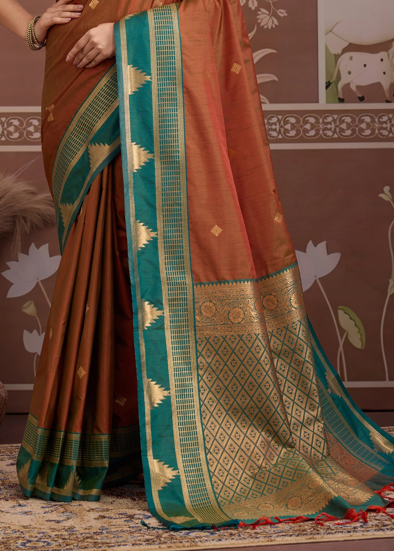 Rust Brown Woven Tussar Silk Saree