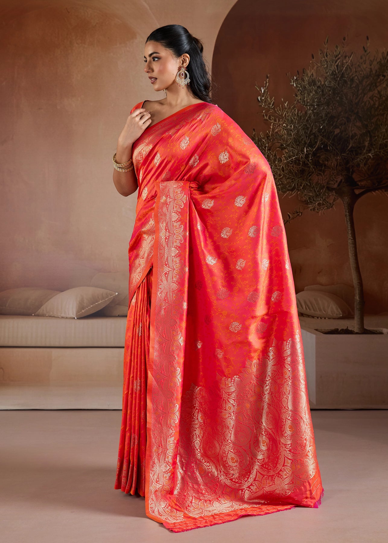 Sunrise Orange Woven Banarasi Silk Saree