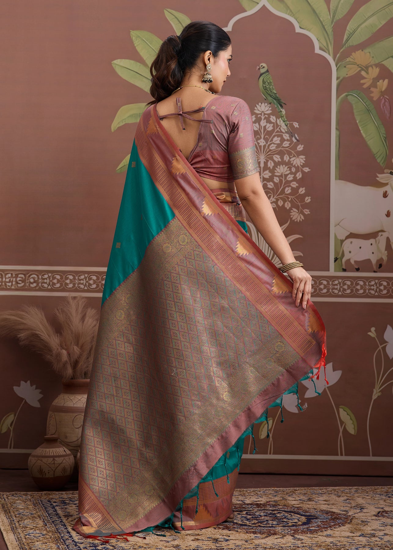 Blush Pink Woven Cotton Kashmiri Jamewar Saree