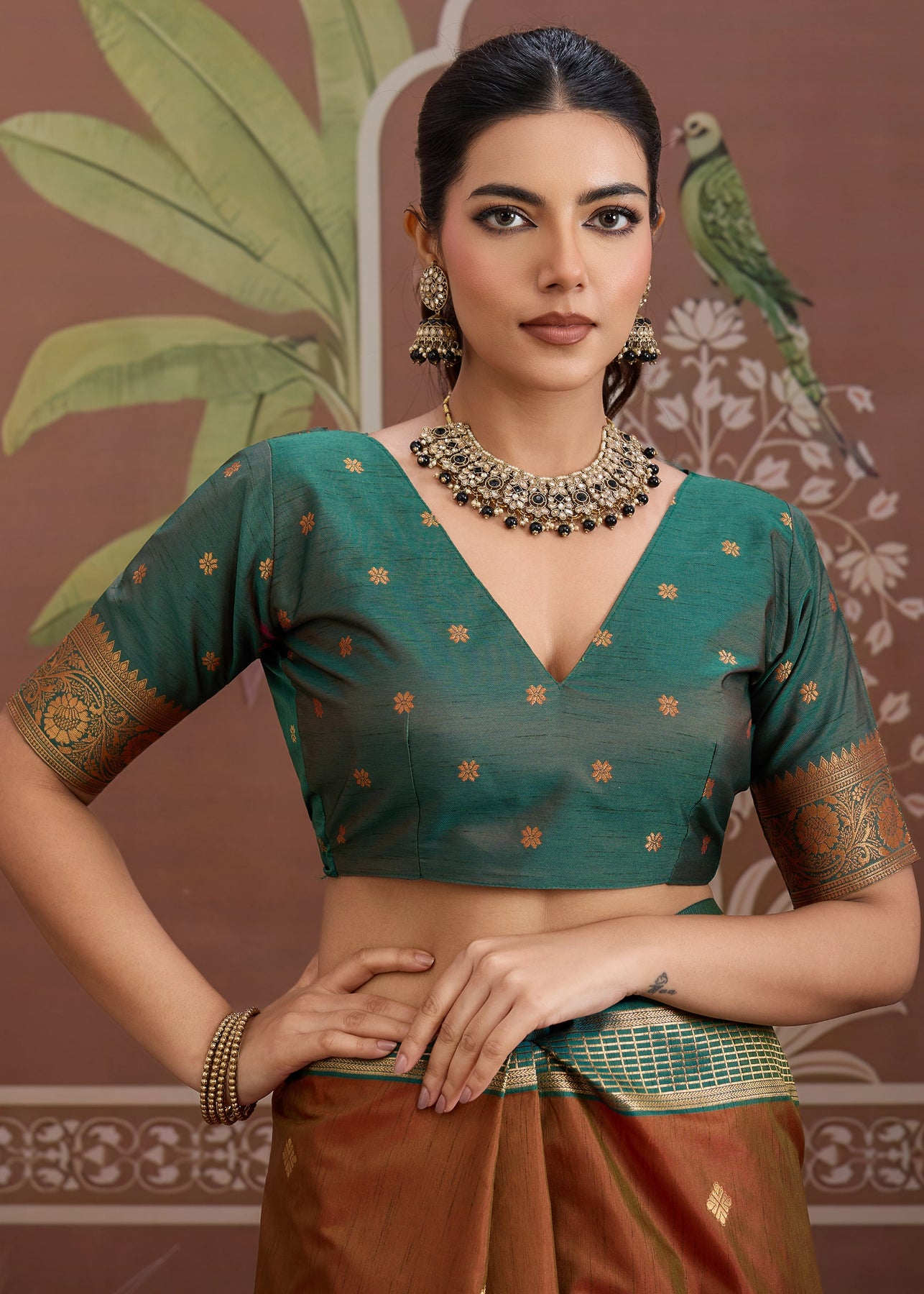Forest Green Woven Banarasi Silk Saree
