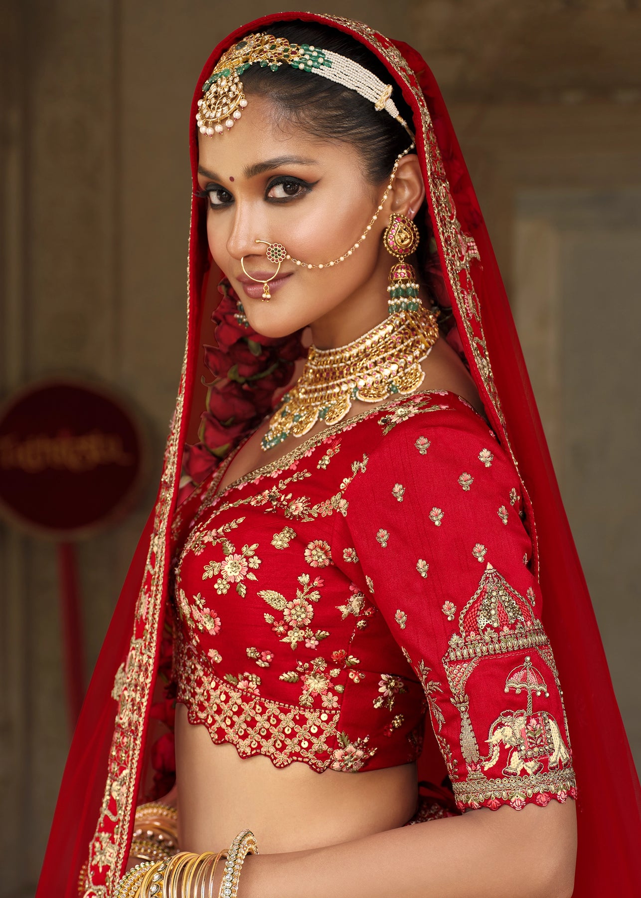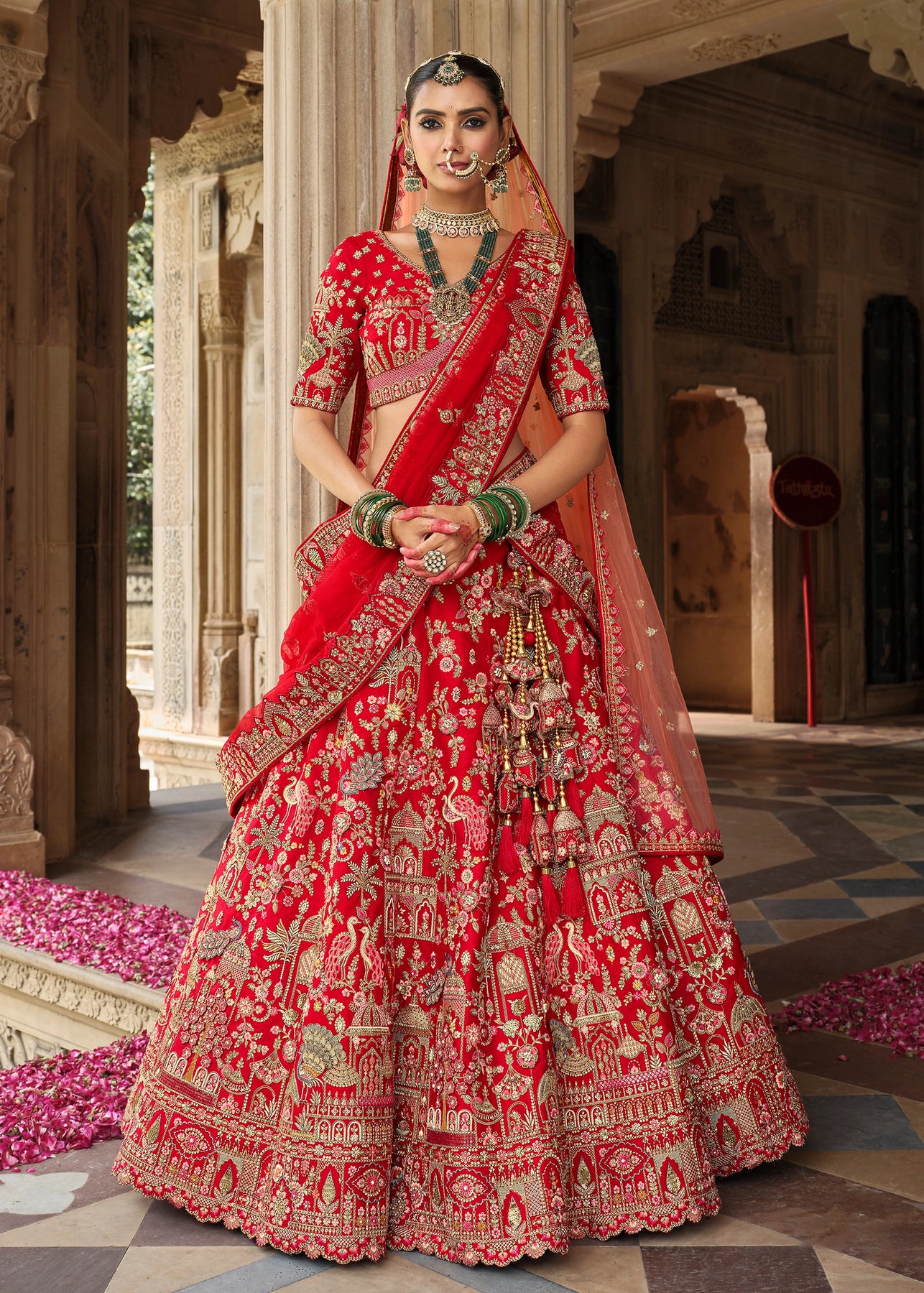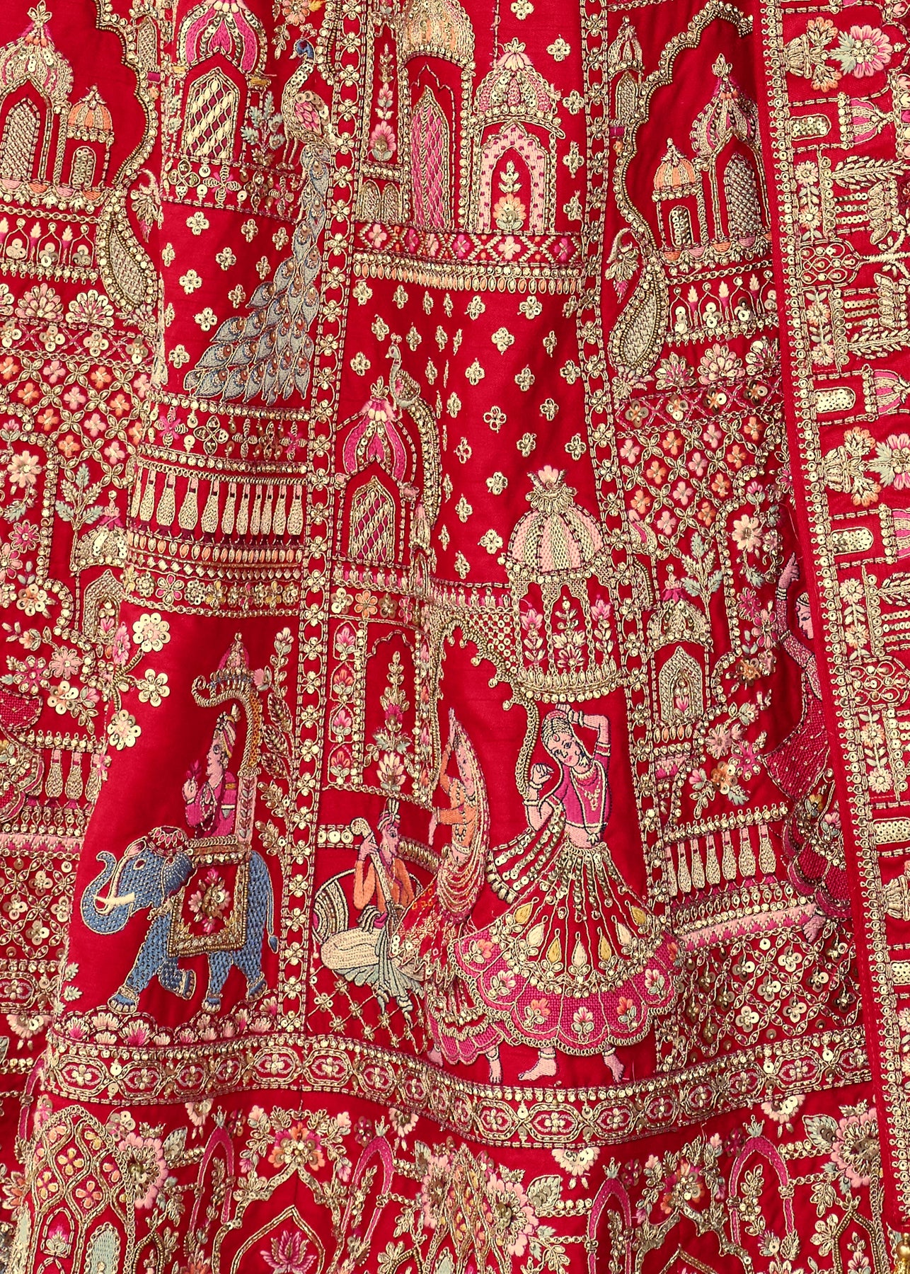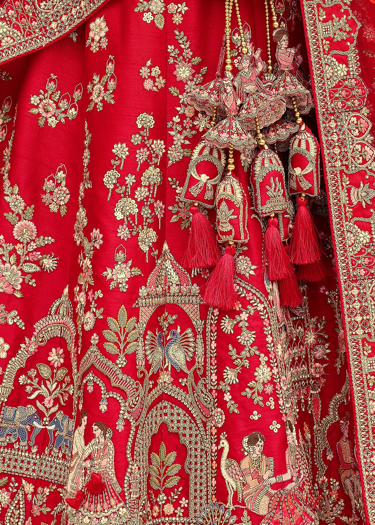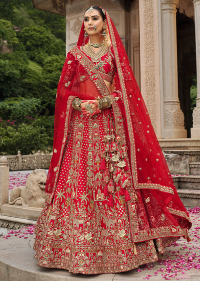 “Exclusive Offer” :Red and Beige Designer Lehenga Set