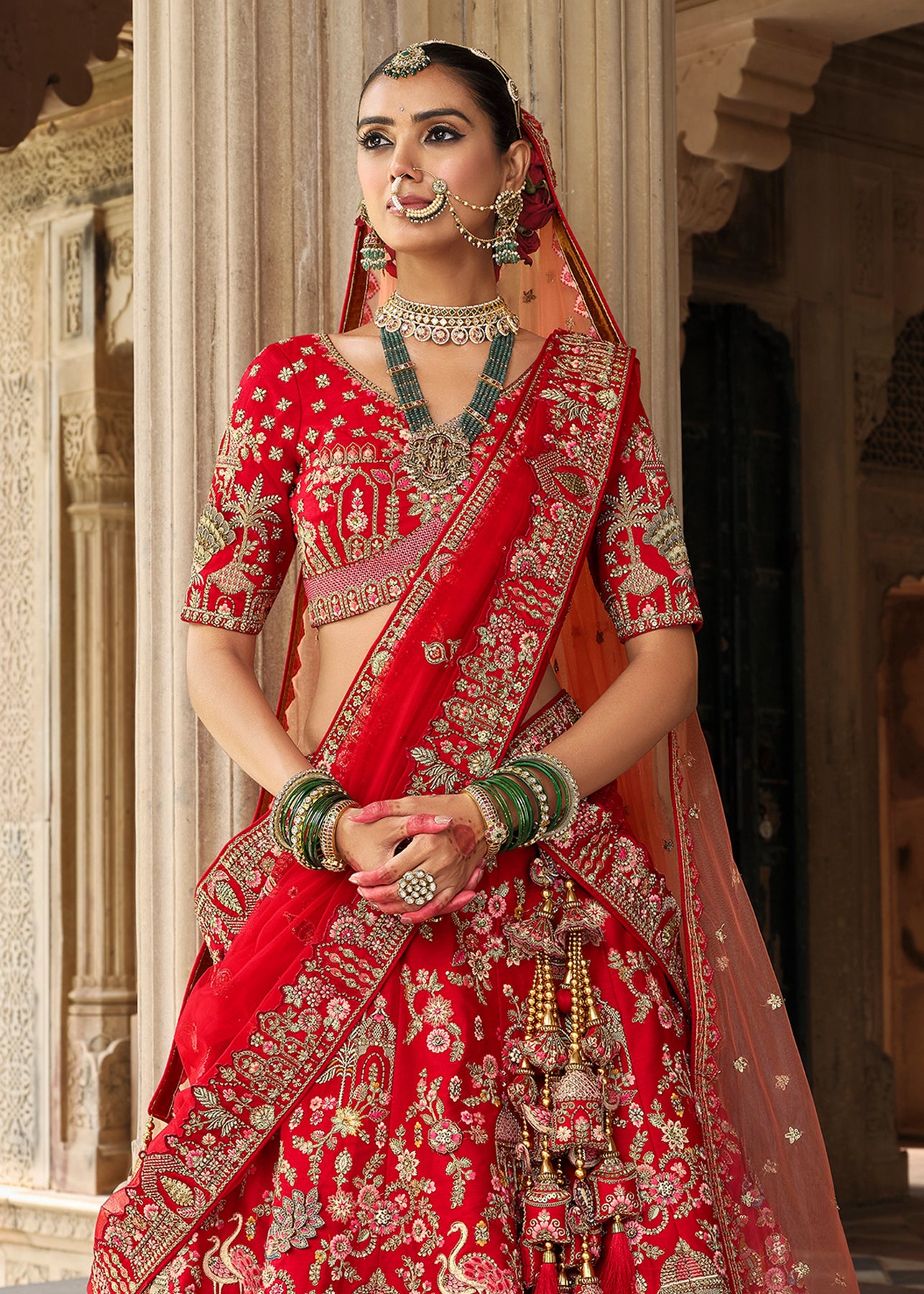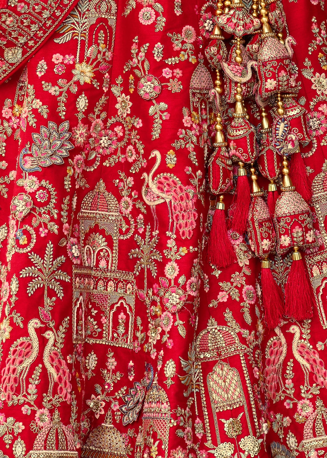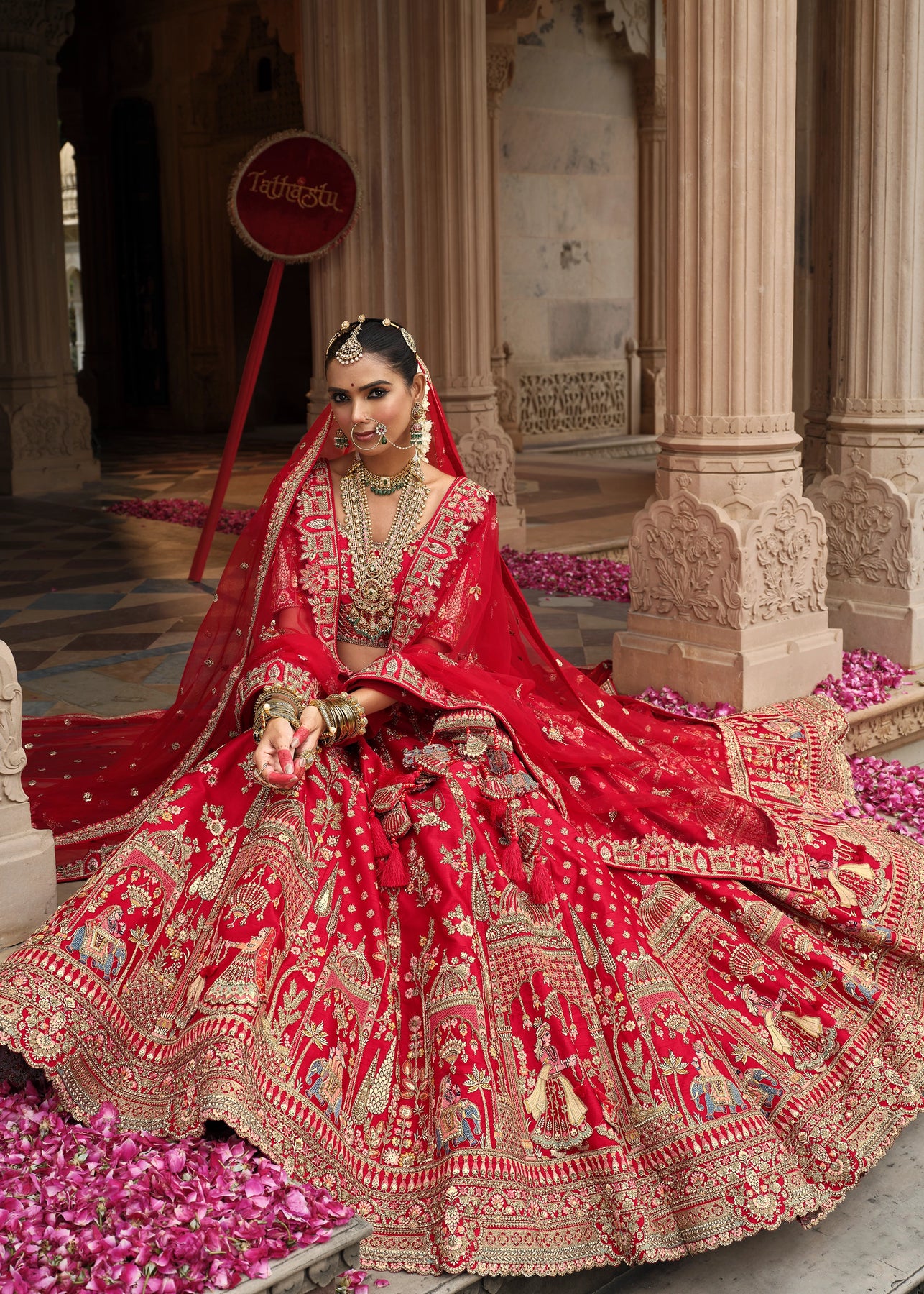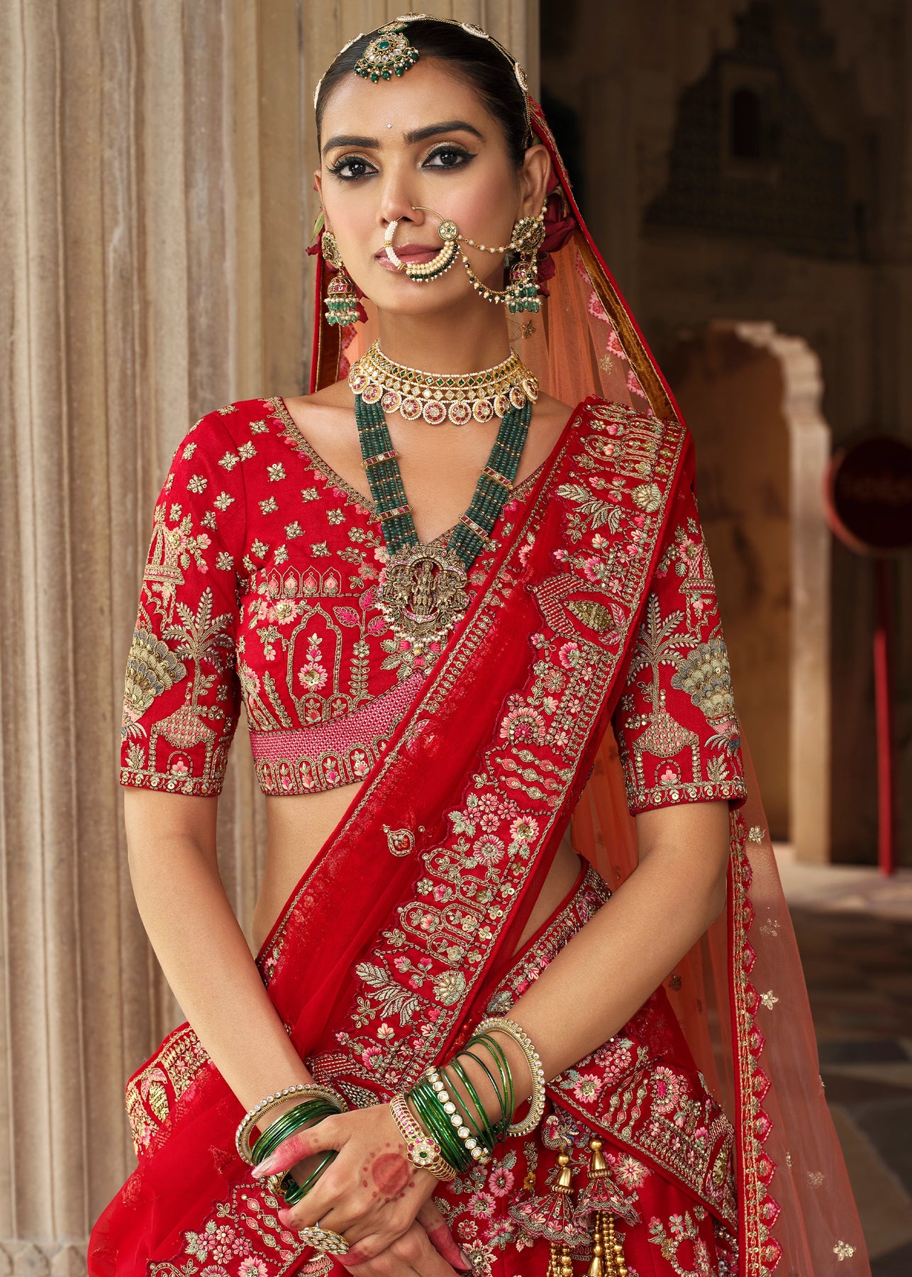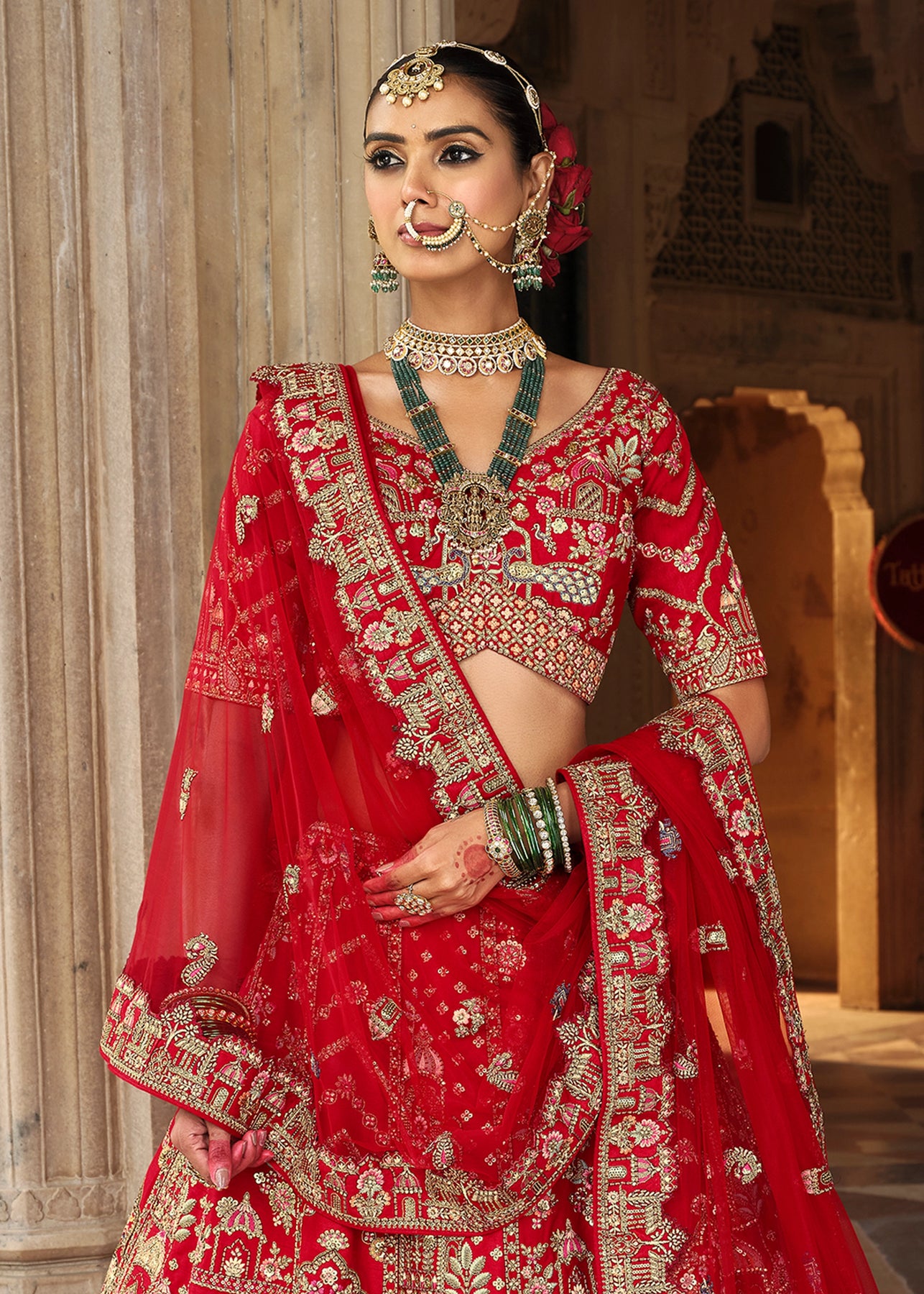 “Exclusive Offer” :Red and Beige Designer Lehenga Set