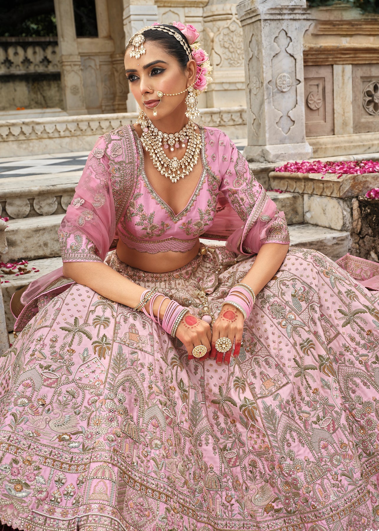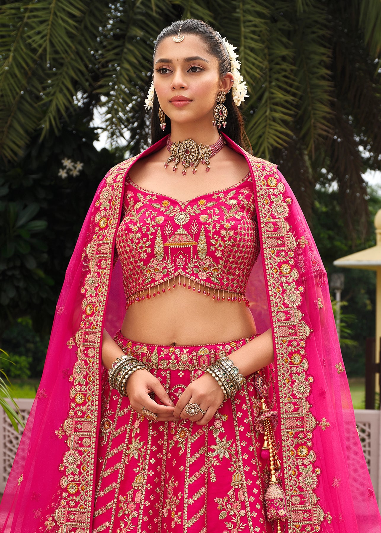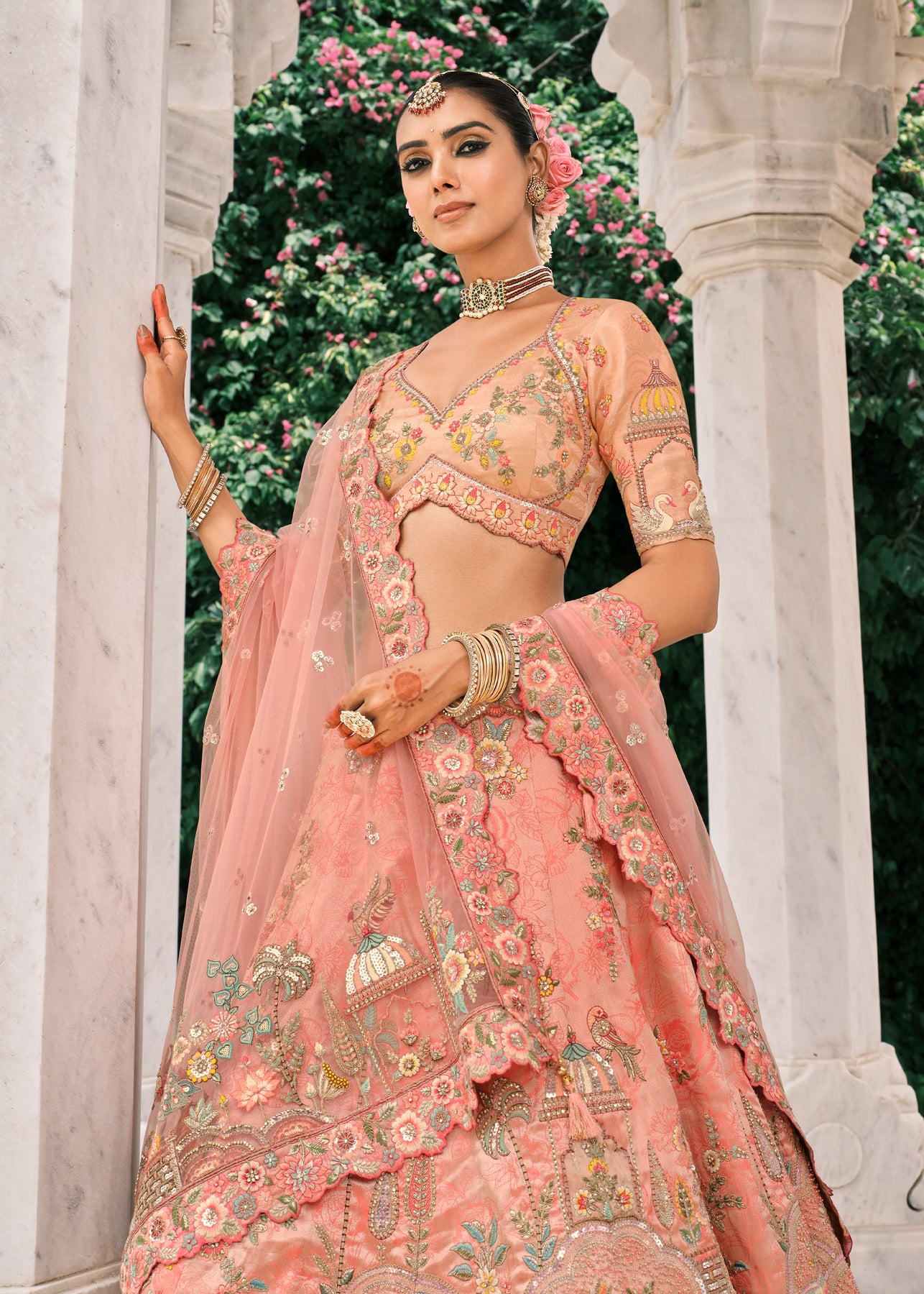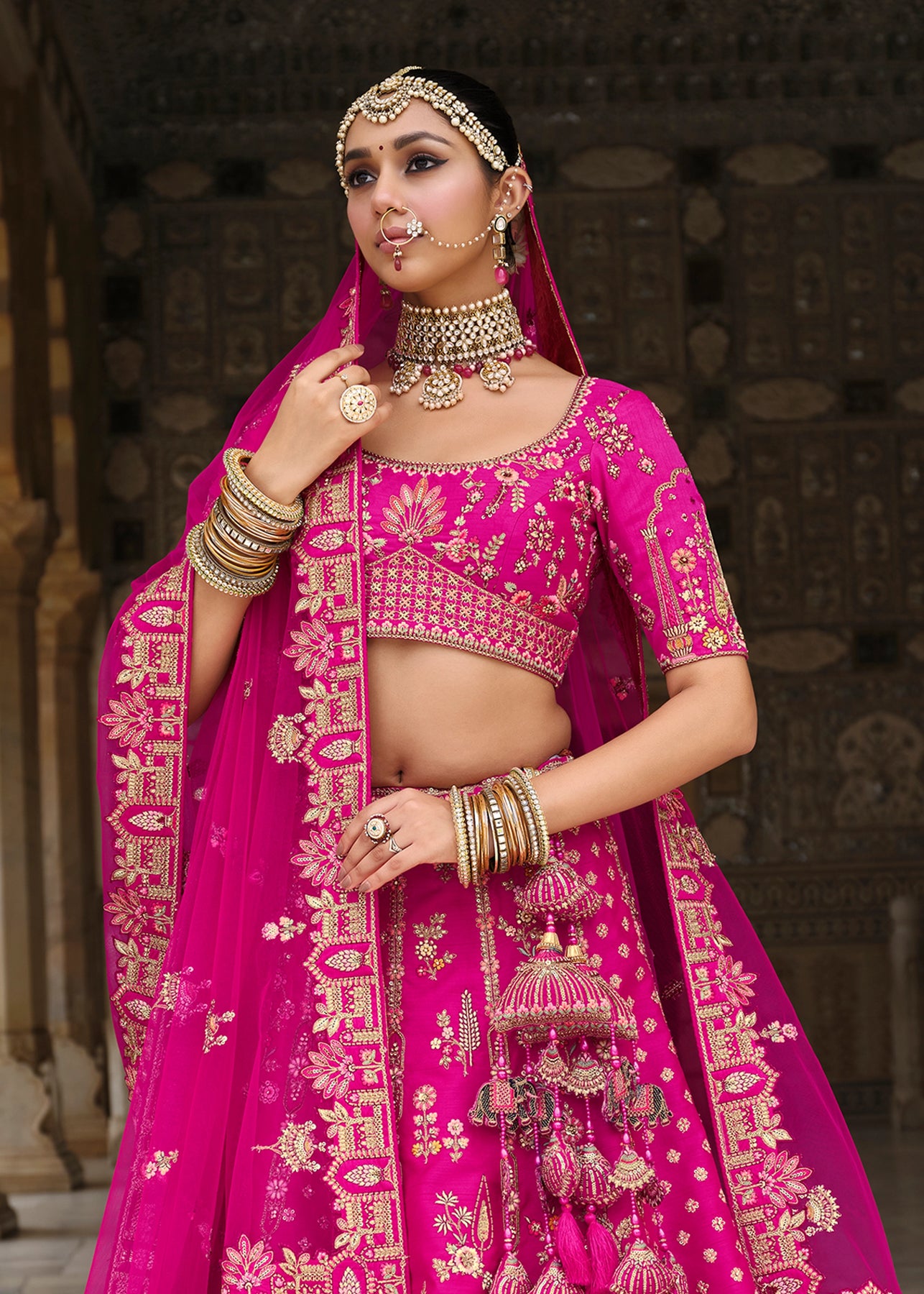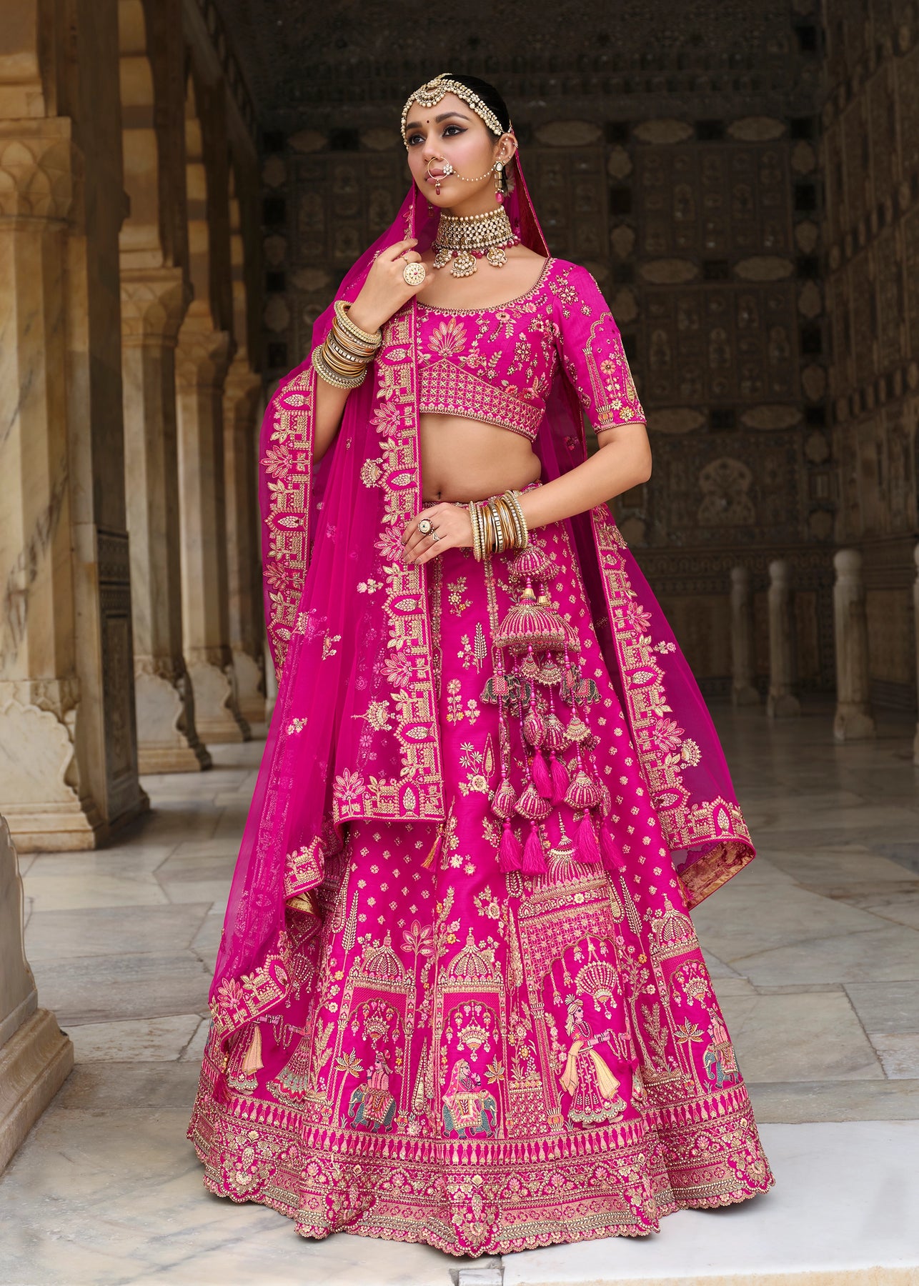 A stunning lehenga with beautiful work. Ravishing attire to enhance your beauty. Be your own style icon with elegance...