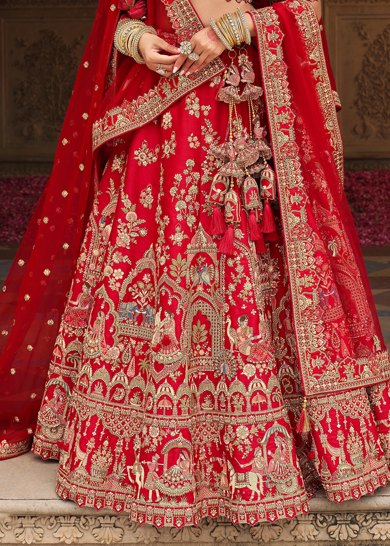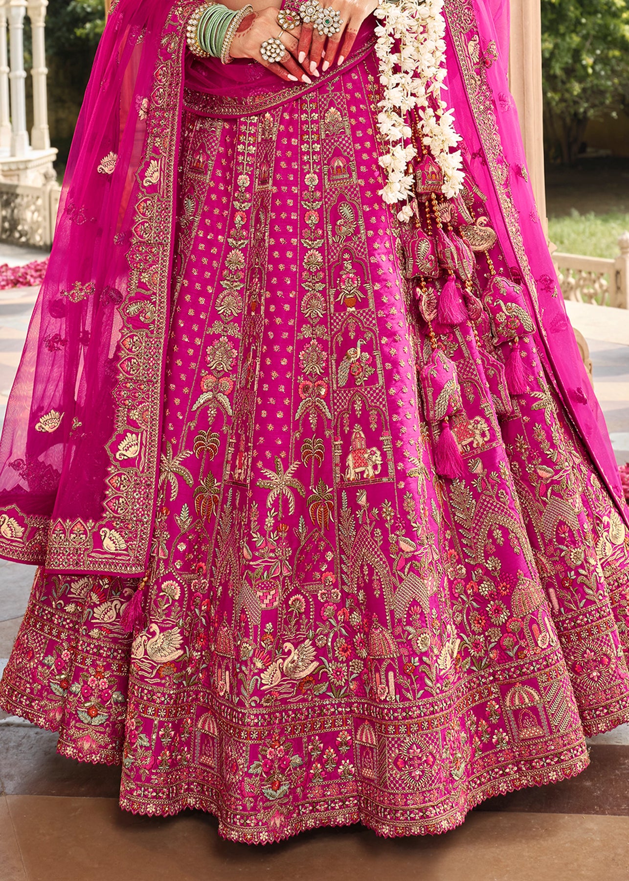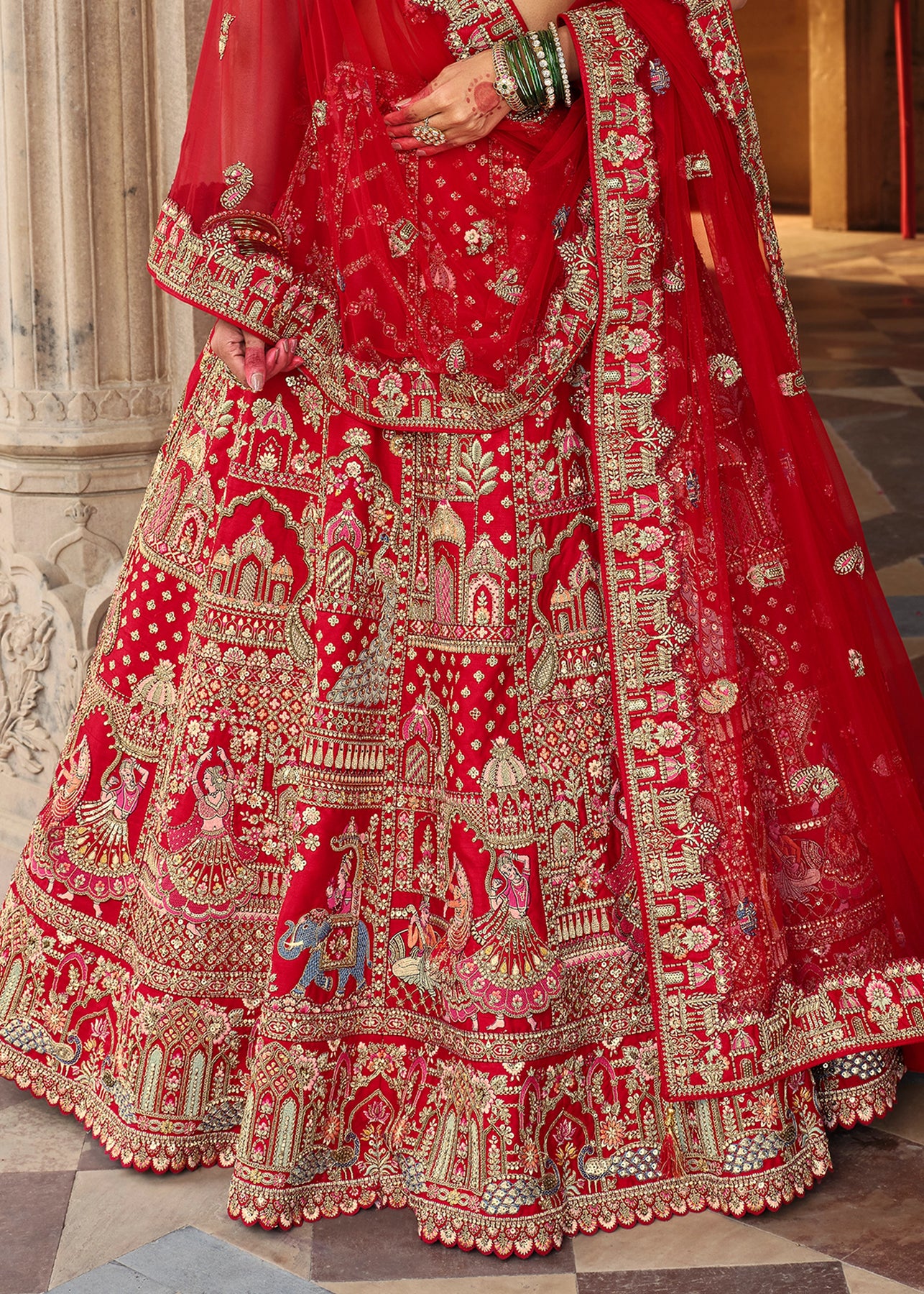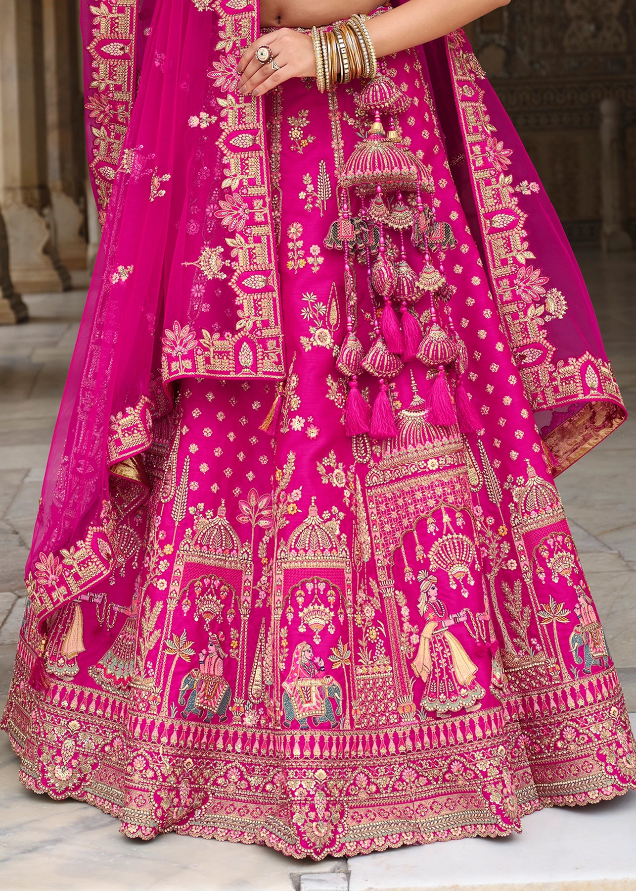 Lehenga: Rajwadi Silk -(stitched) Circular (Gherao) 4.5 meters.