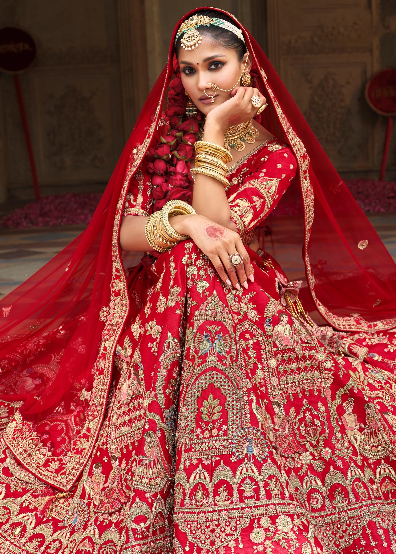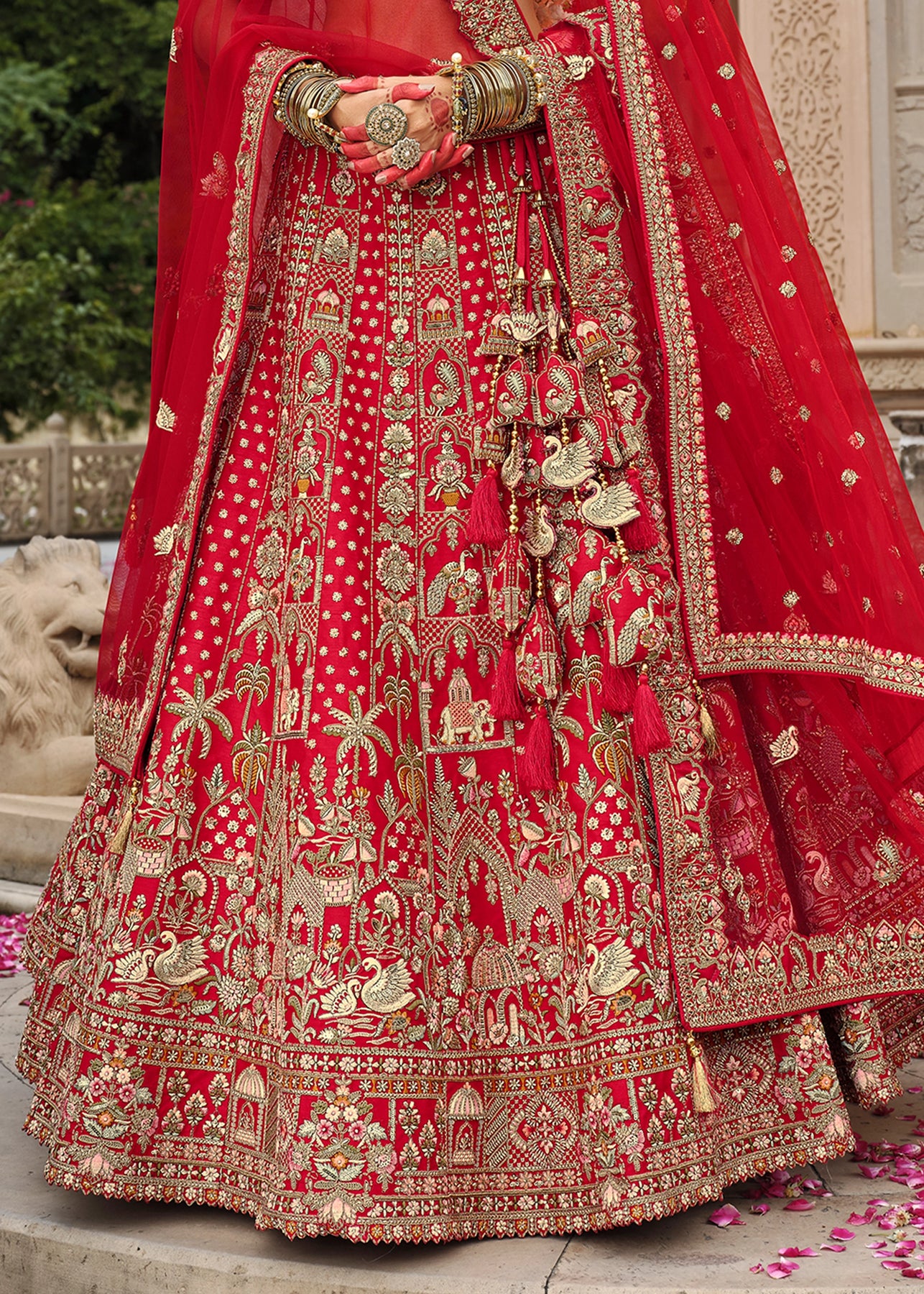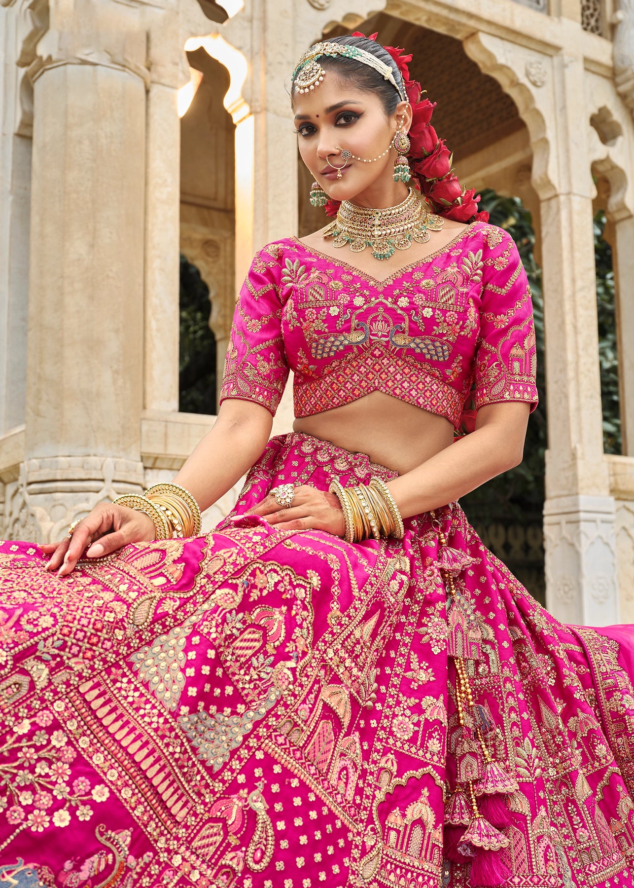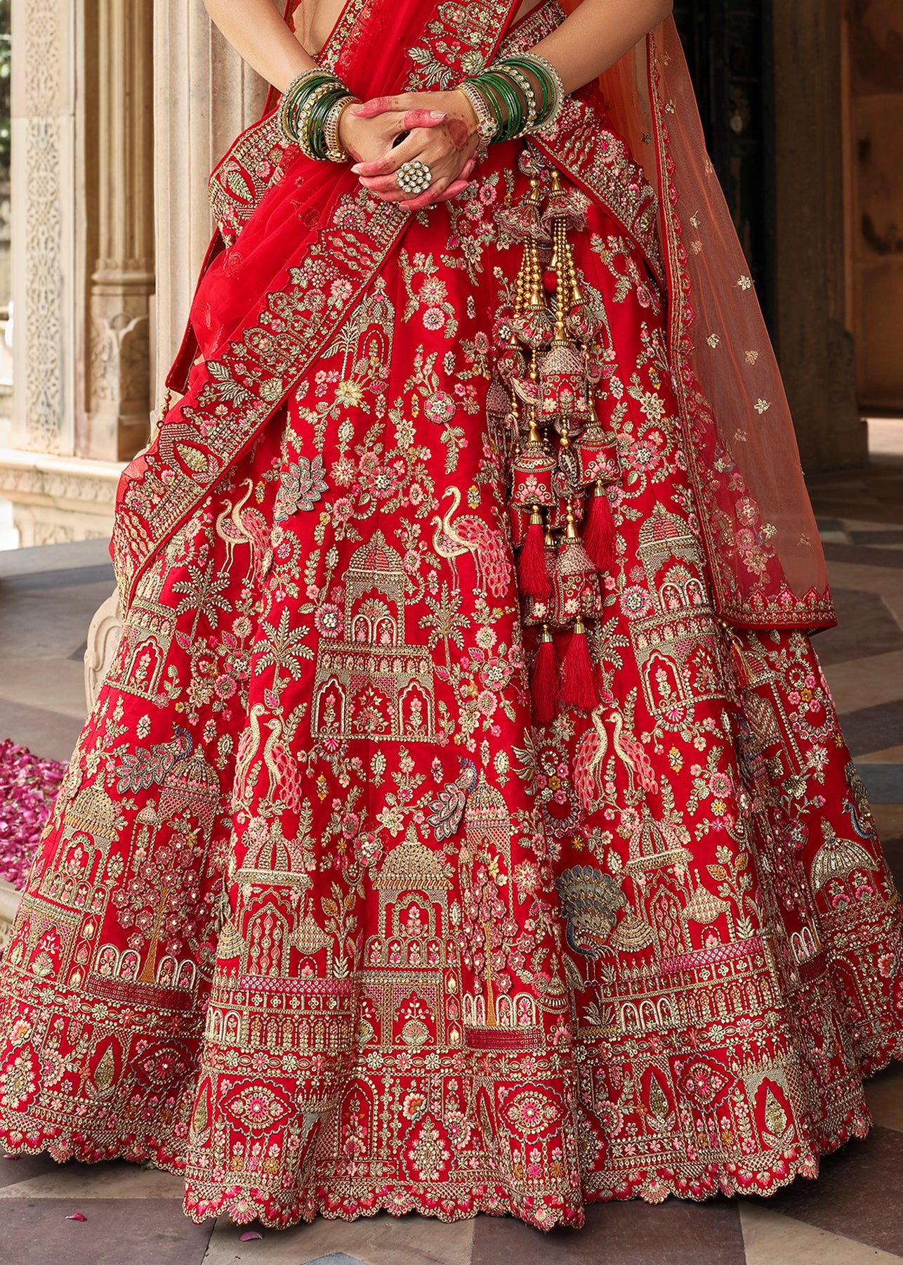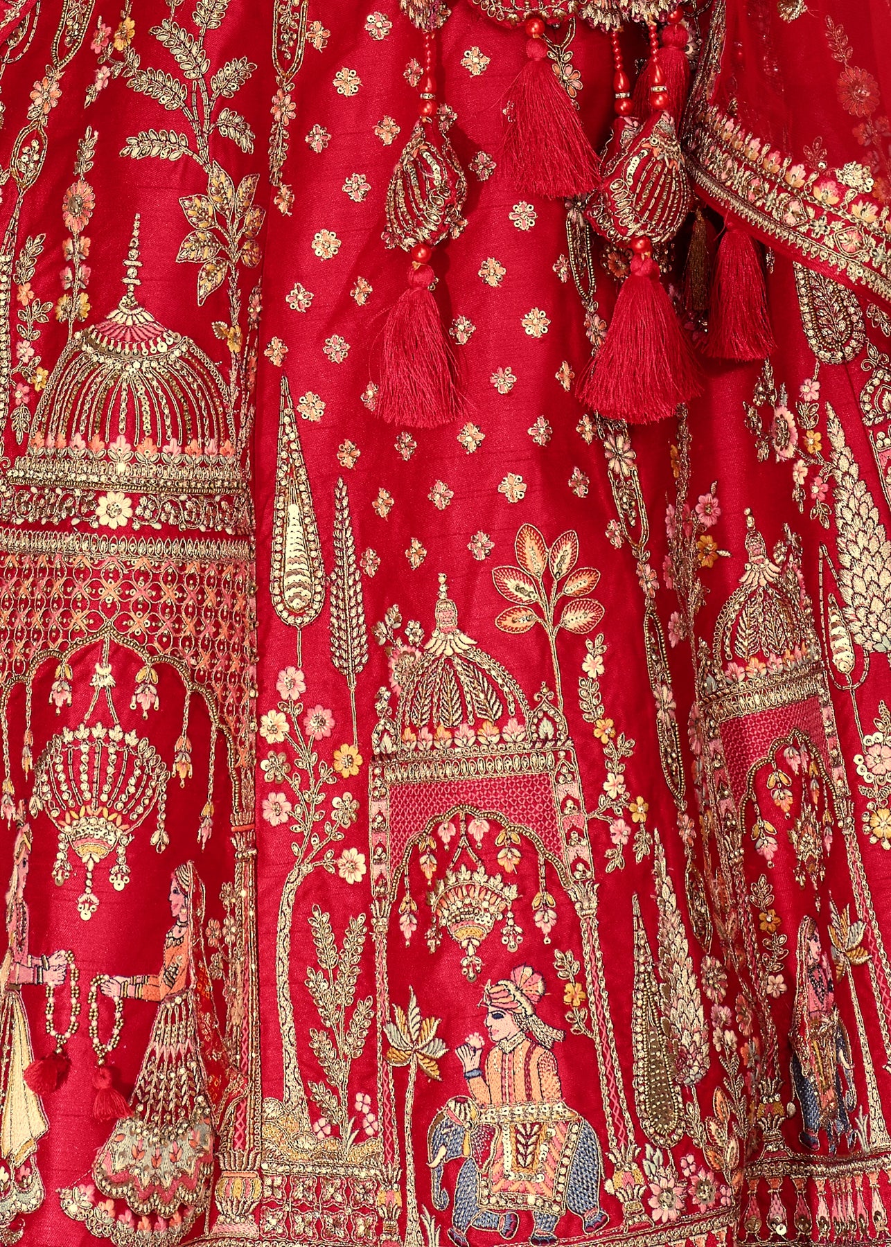 Lehenga: Rajwadi Silk -(stitched) Circular (Gherao) 4.5 meters.