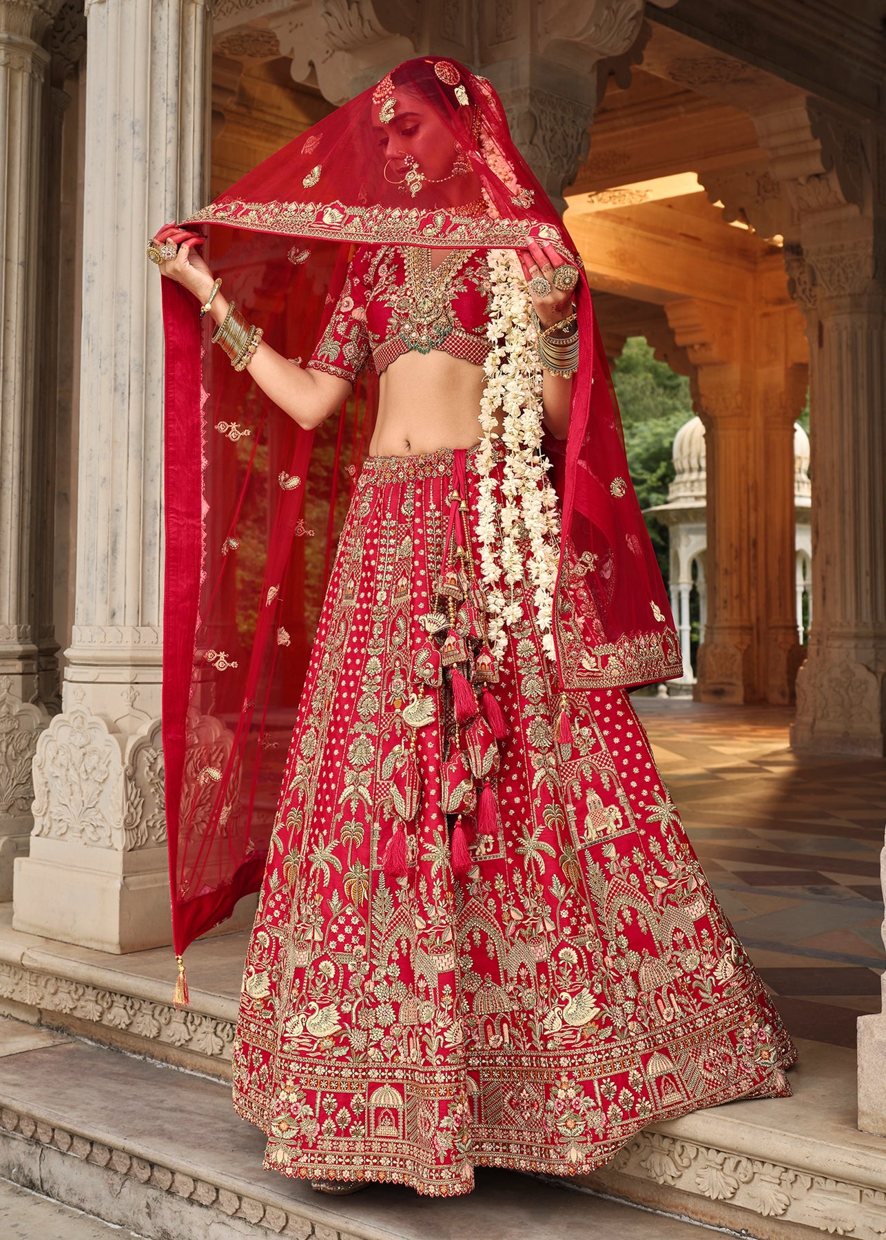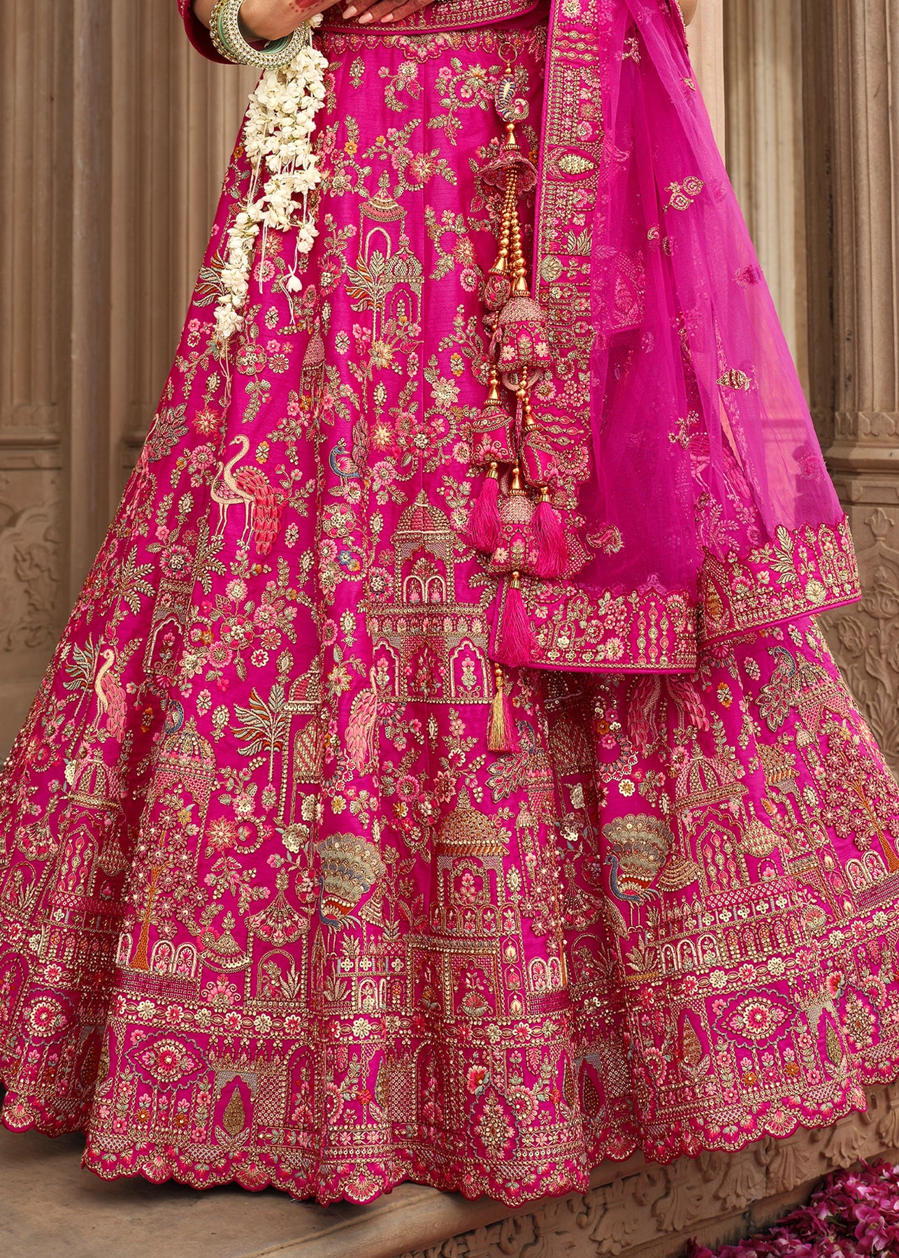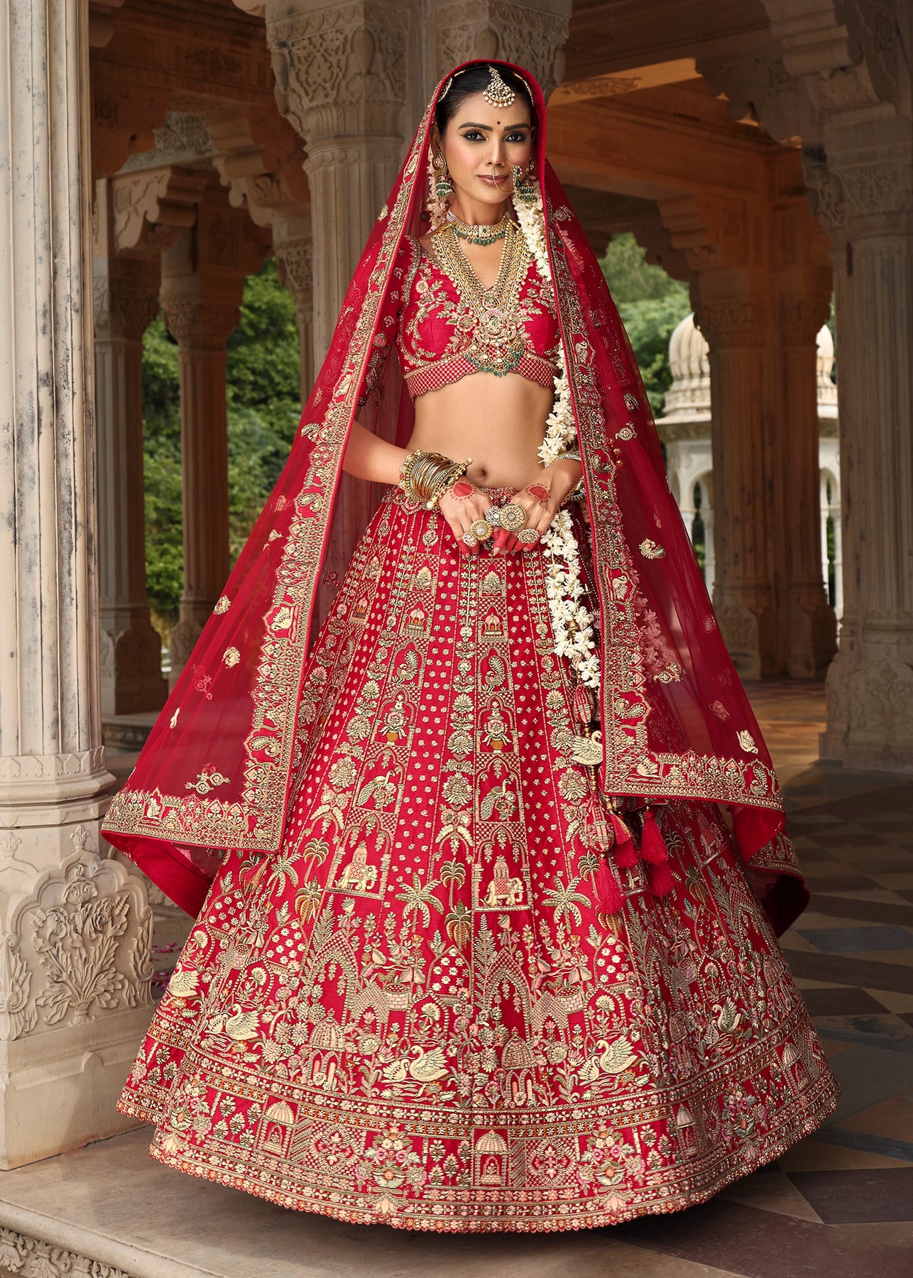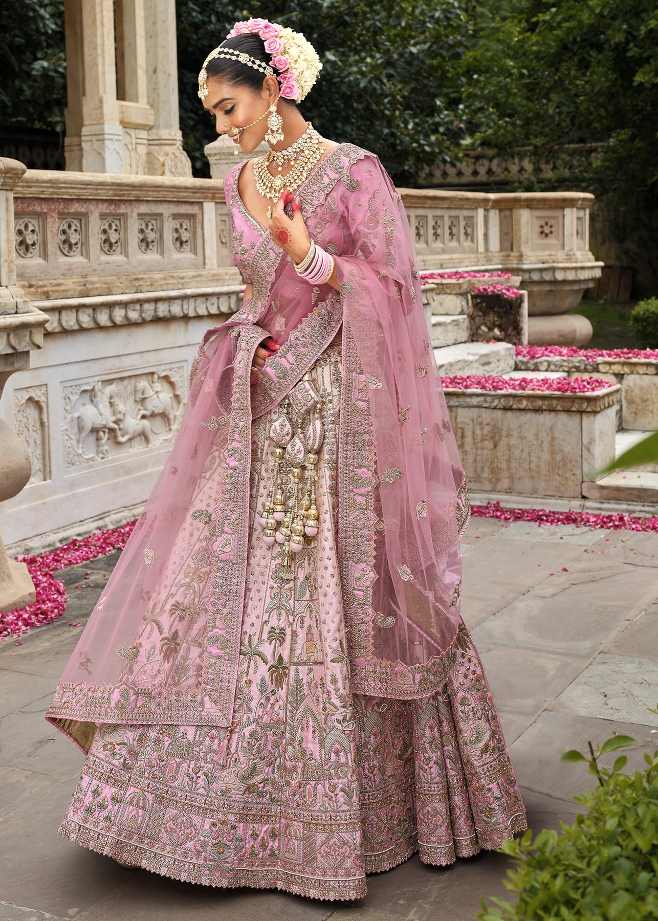Lehenga: Rajwadi Silk -(stitched) Circular (Gherao) 4.5 meters.