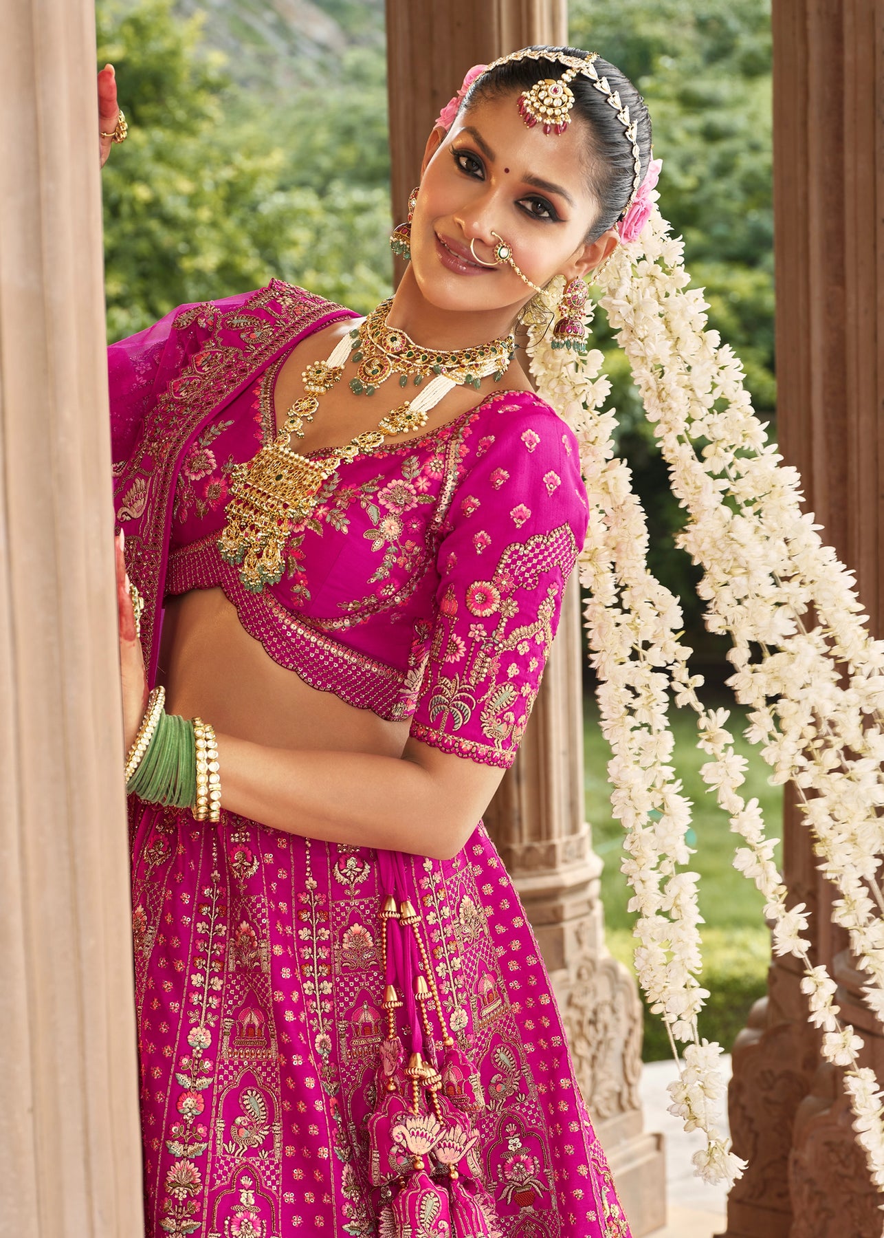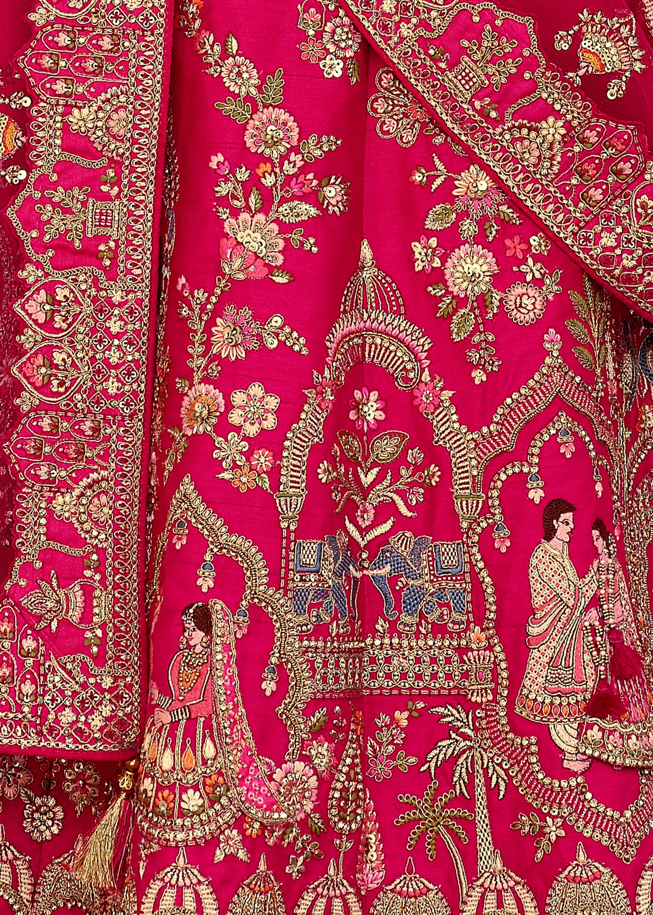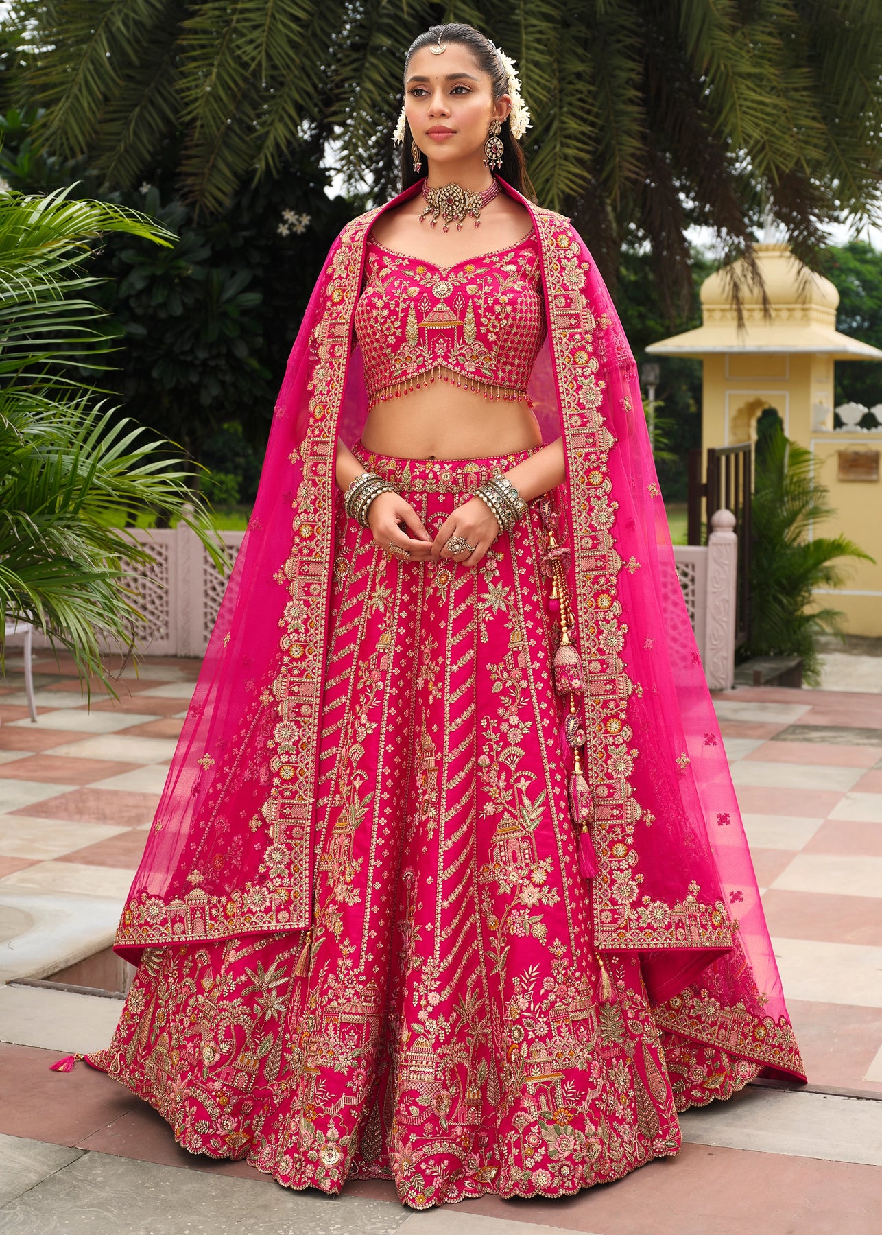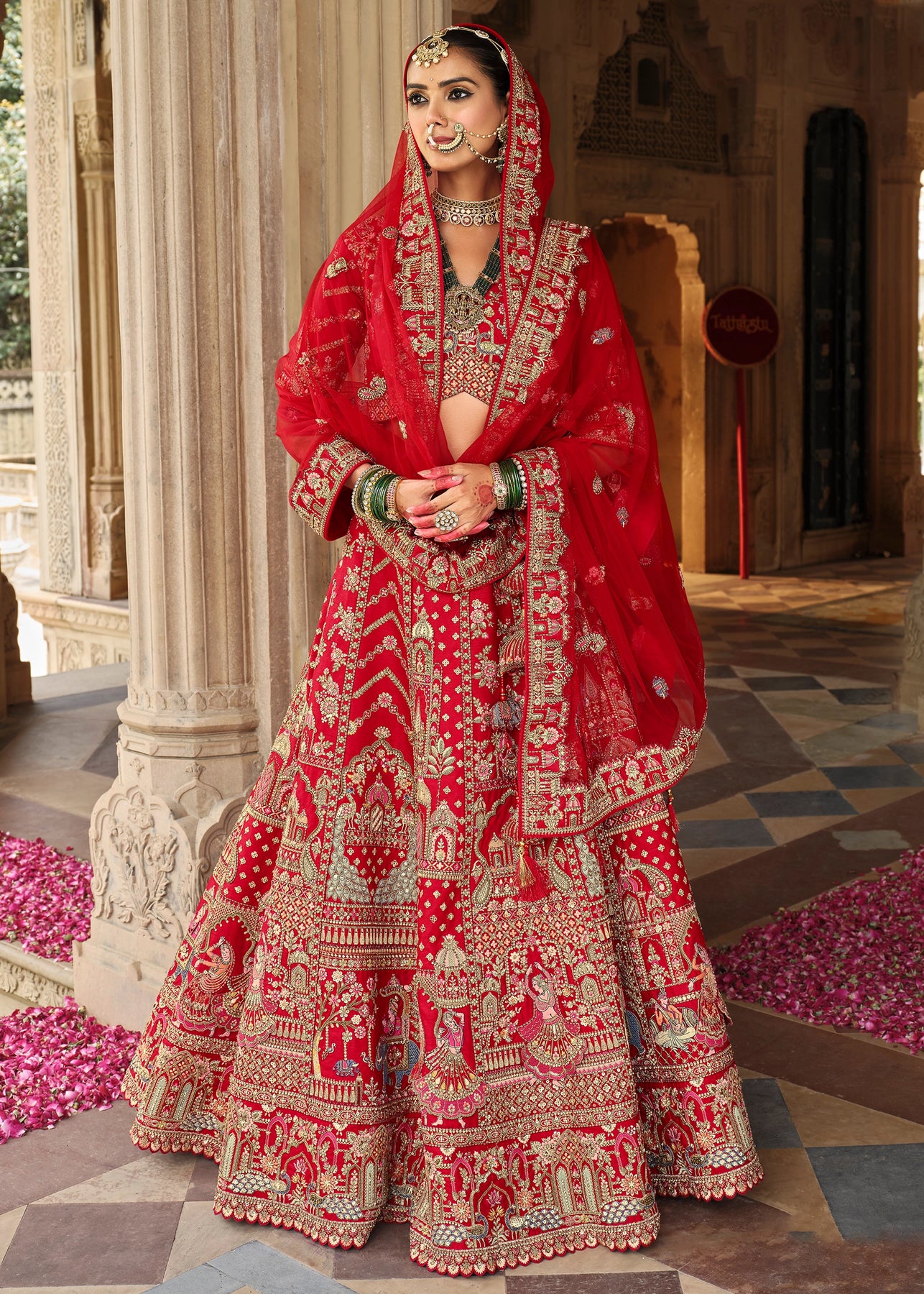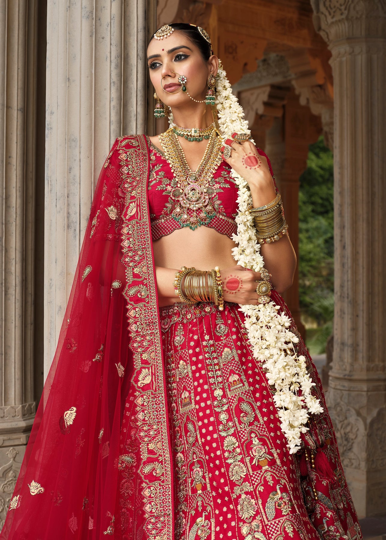 Lehenga: Rajwadi Silk -(stitched) Circular (Gherao) 4.5 meters.