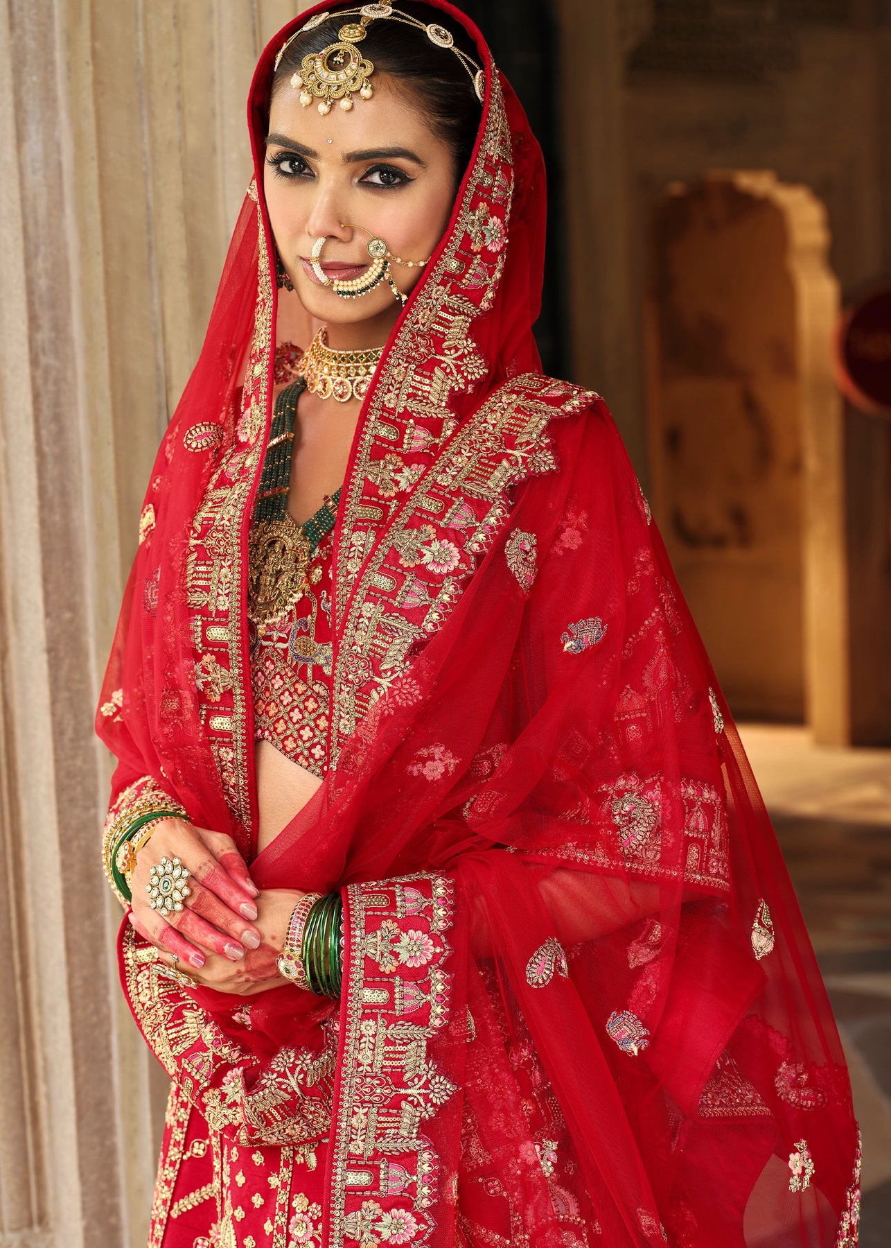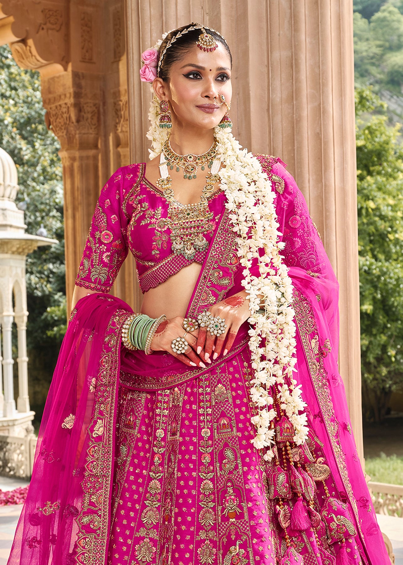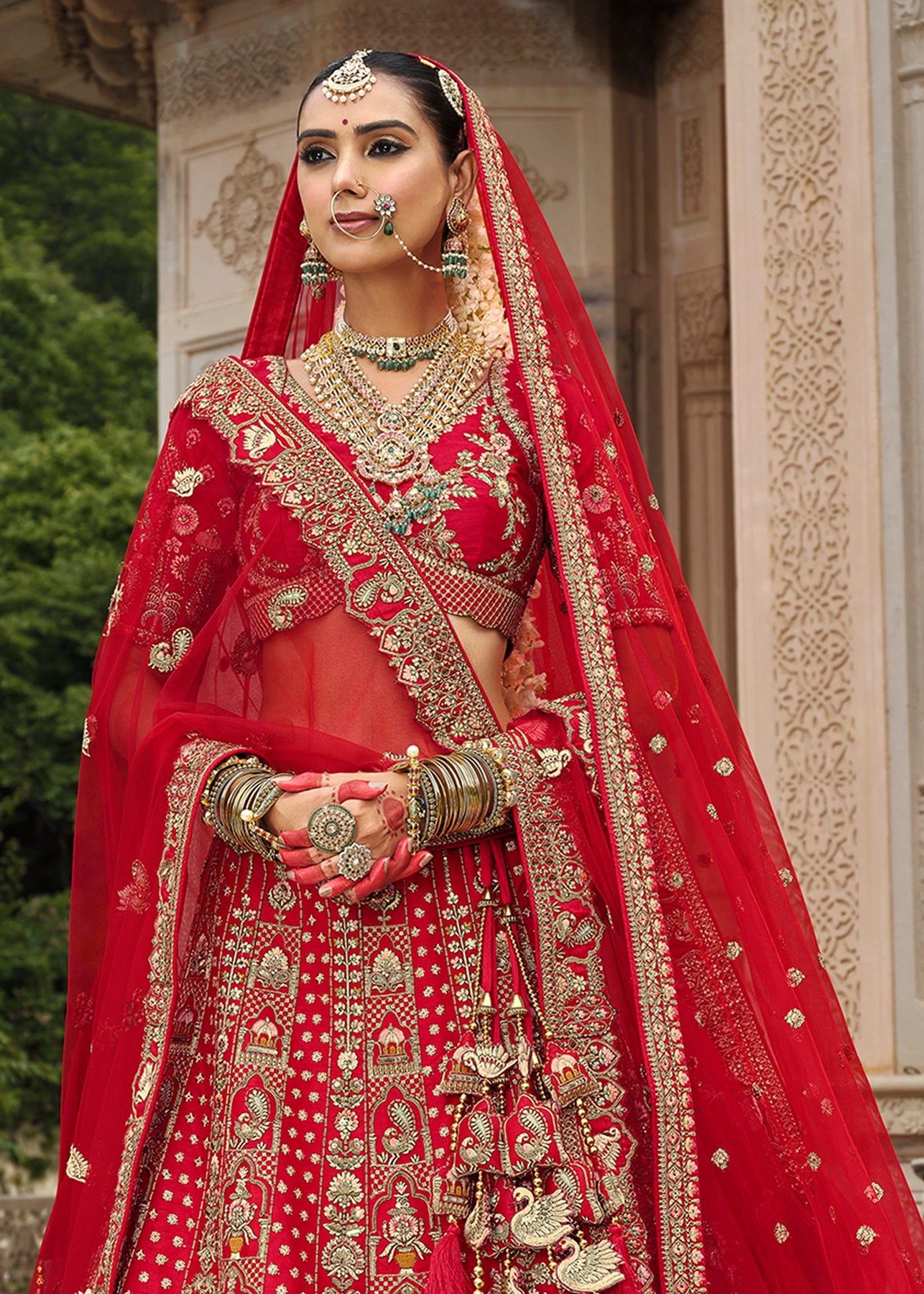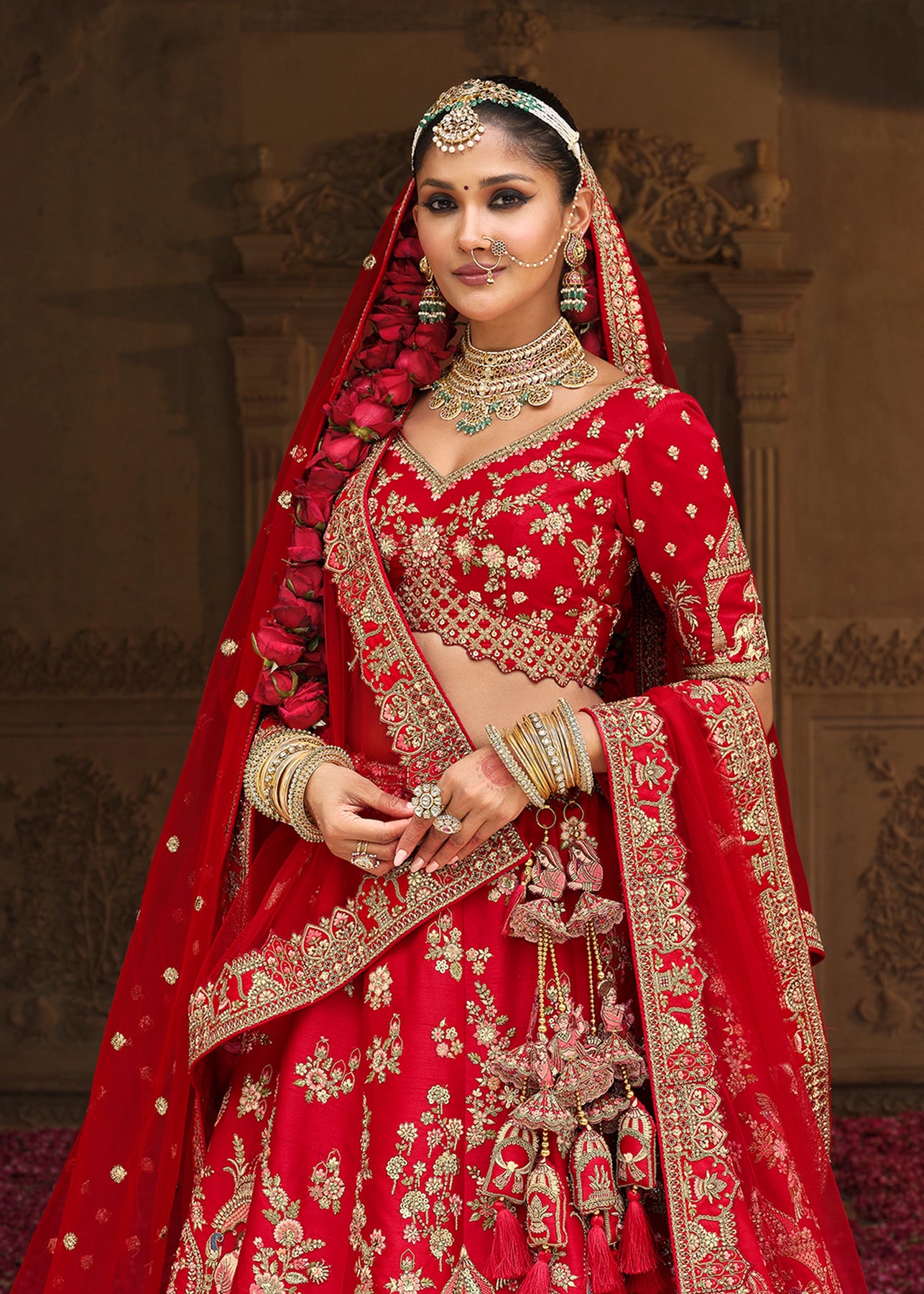 Lehenga: Rajwadi Silk -(stitched) Circular (Gherao) 4.5 meters.