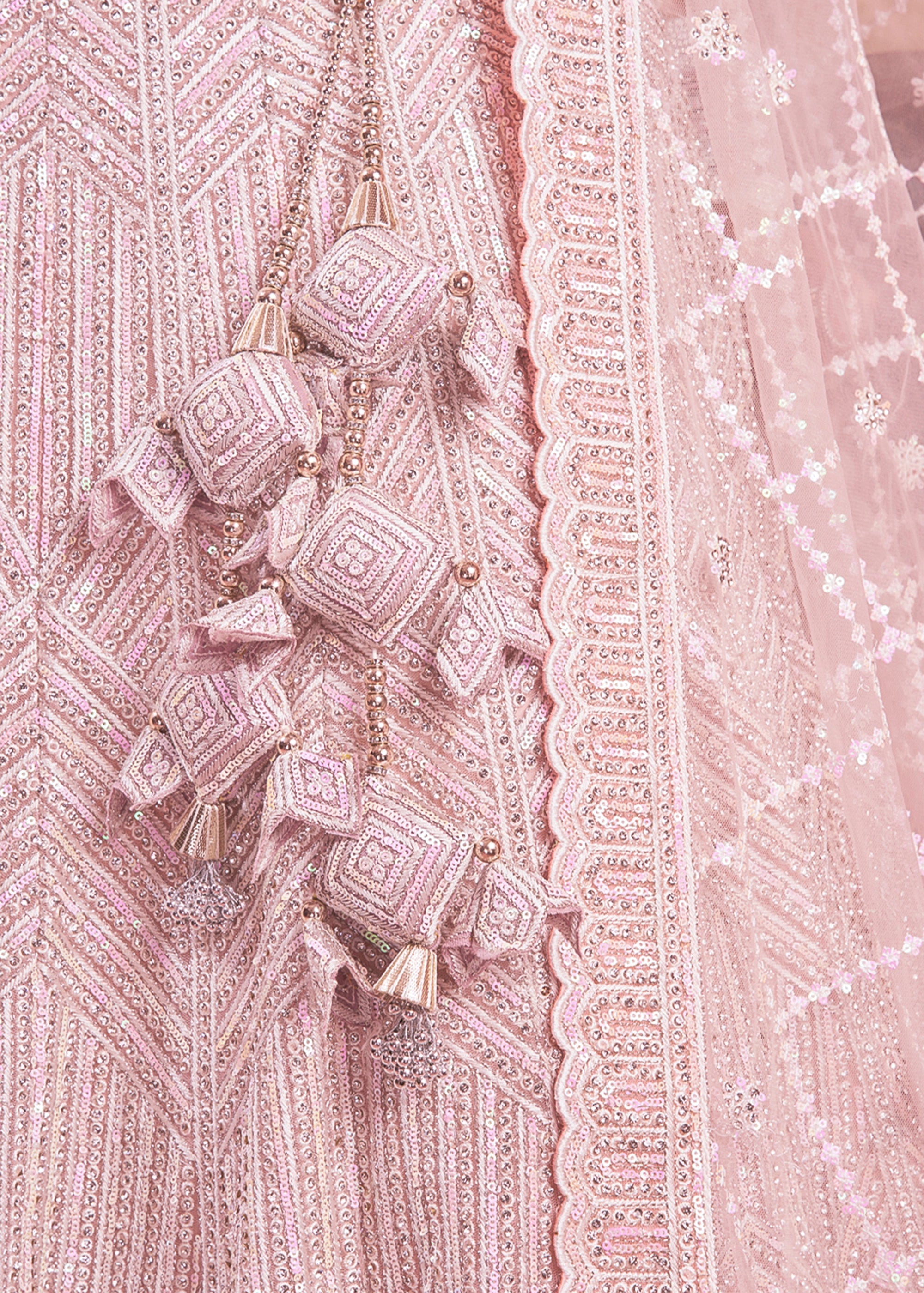 Embrace ethereal elegance with this exquisite premium net lehenga choli set. Featuring meticulous zarkan and mirror handwork, it is perfect for weddings, engagements, or sangeet.