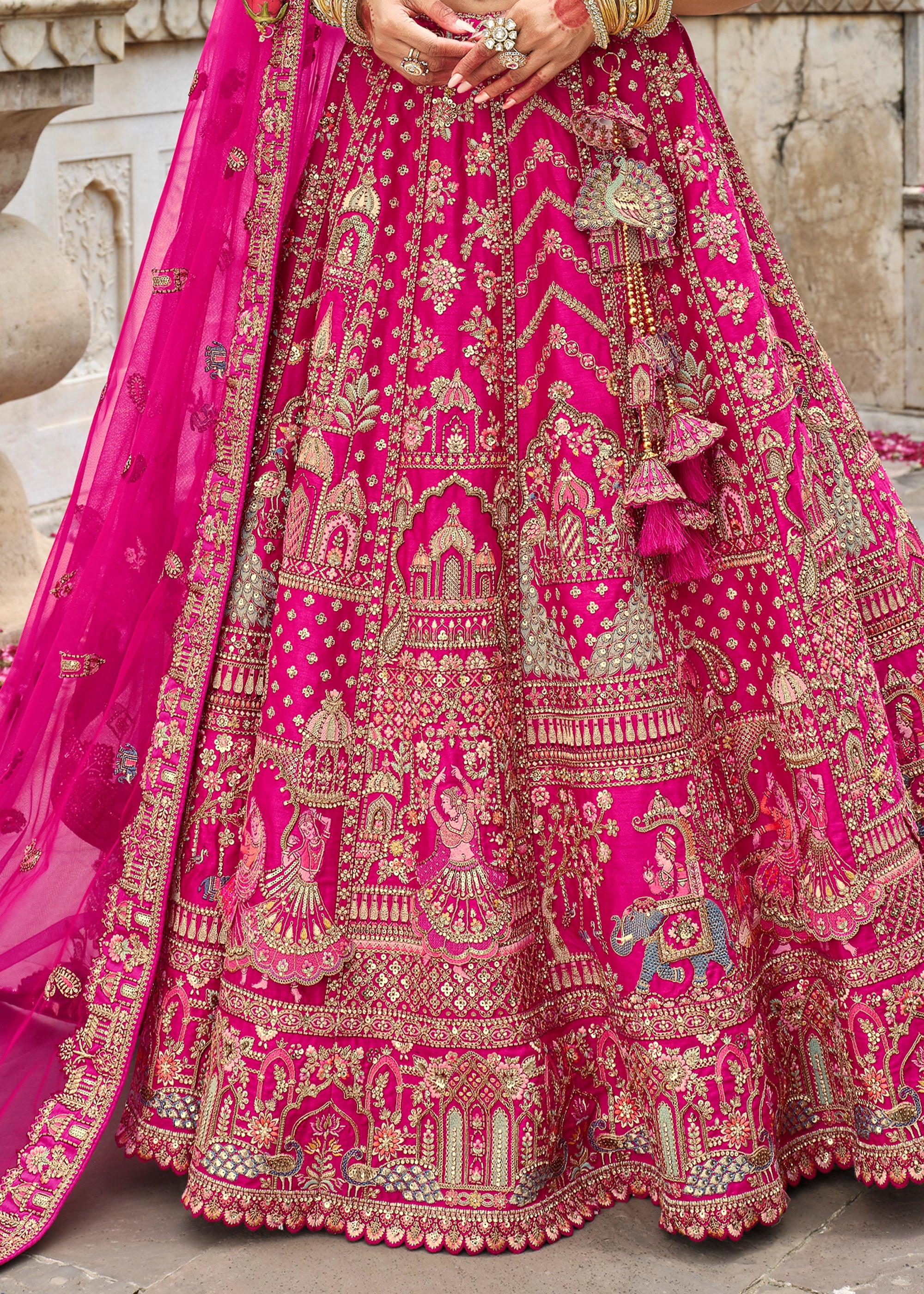 Bright Pink Heavy Embroidered Designer Lehenga