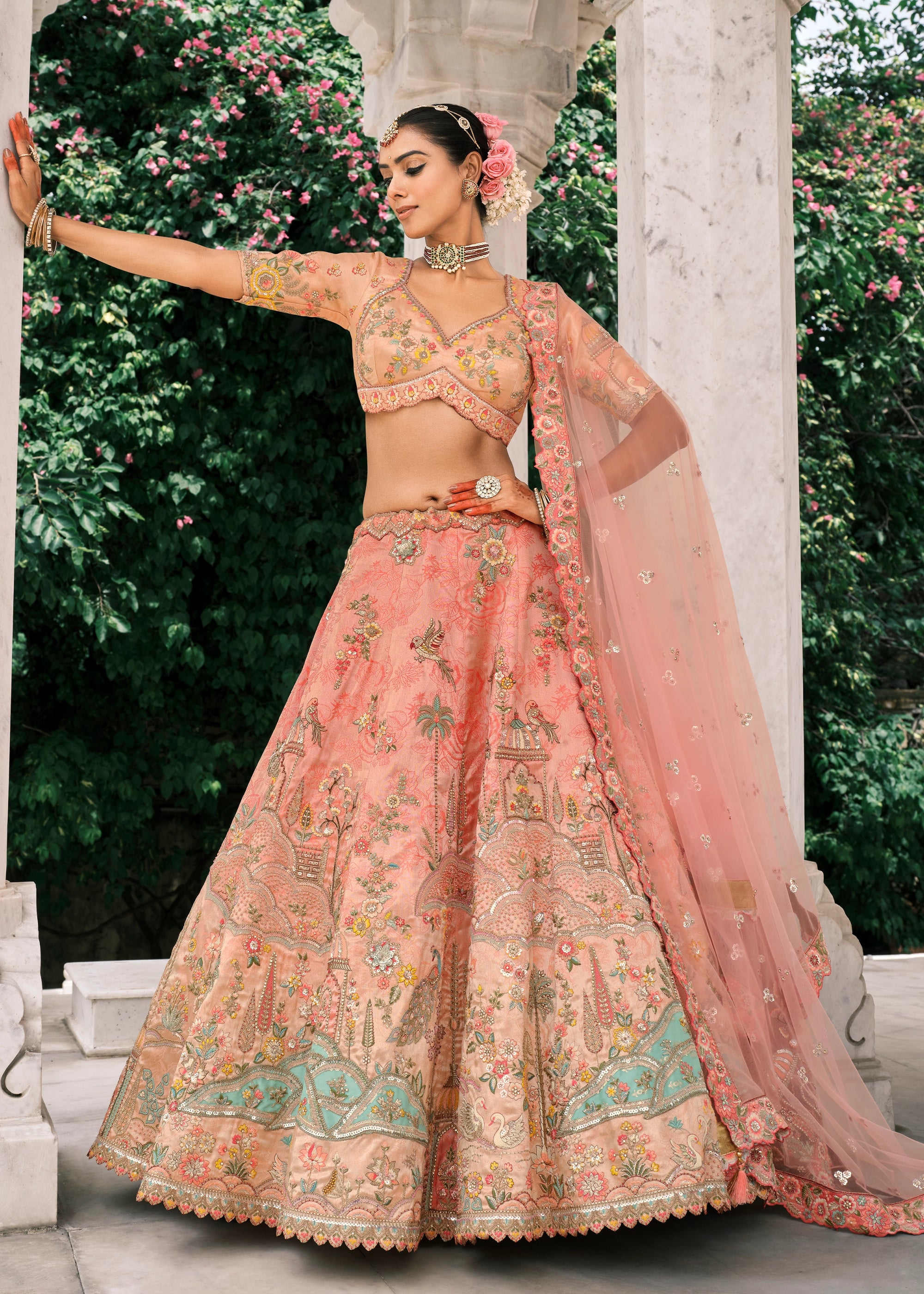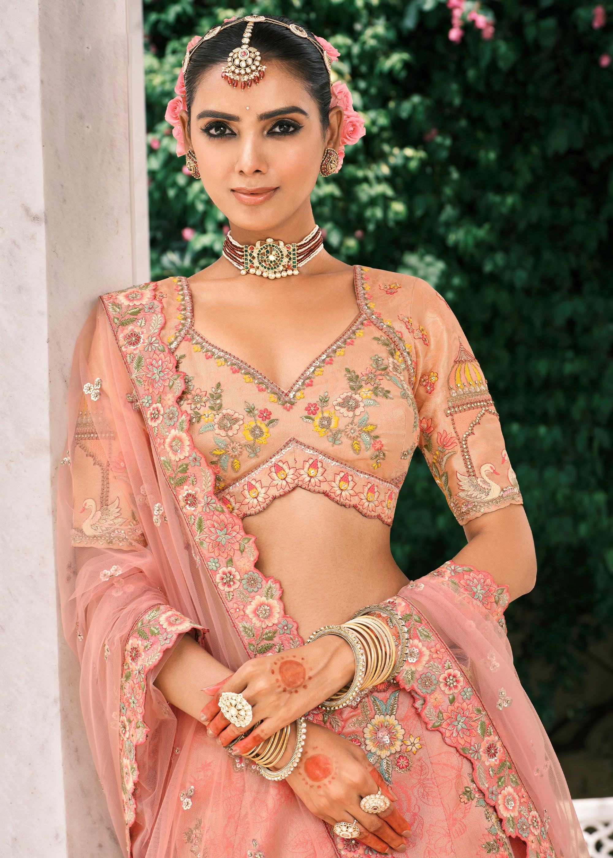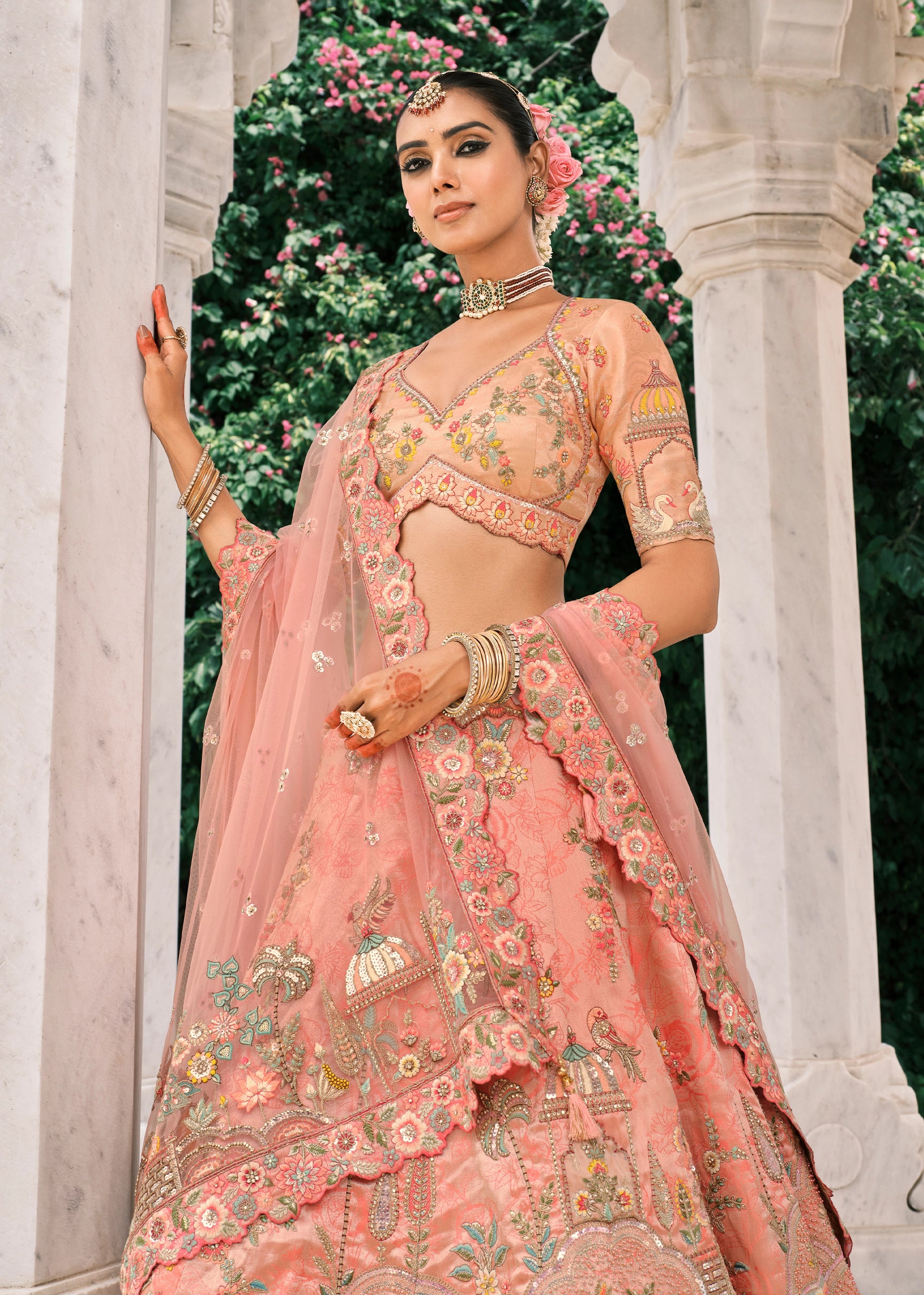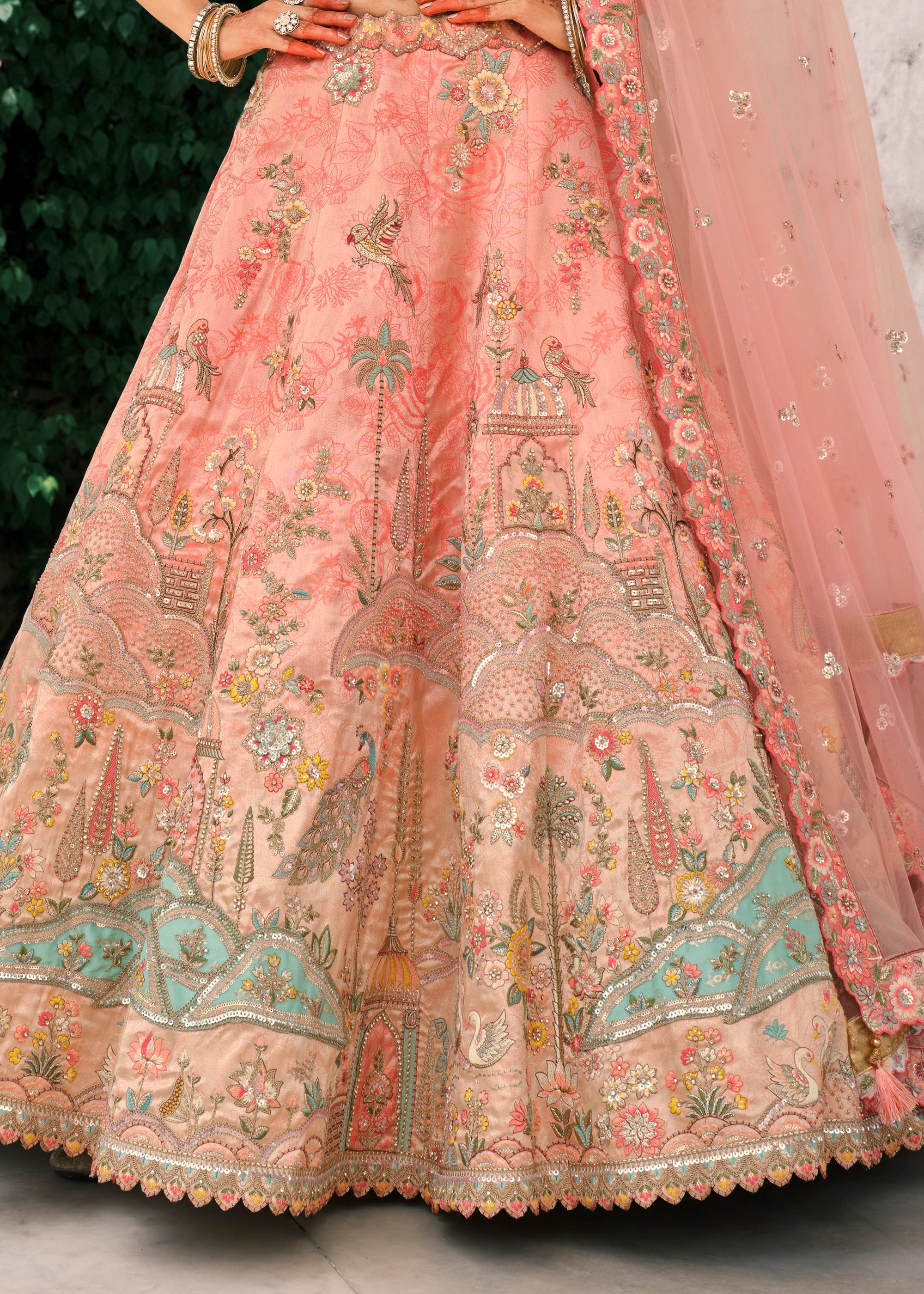 Adorn yourself in this gorgeous Fancy Silk Lehenga, featuring all-over designer embroidery, intricate Cut Work border, stone, sequence, and mirror...