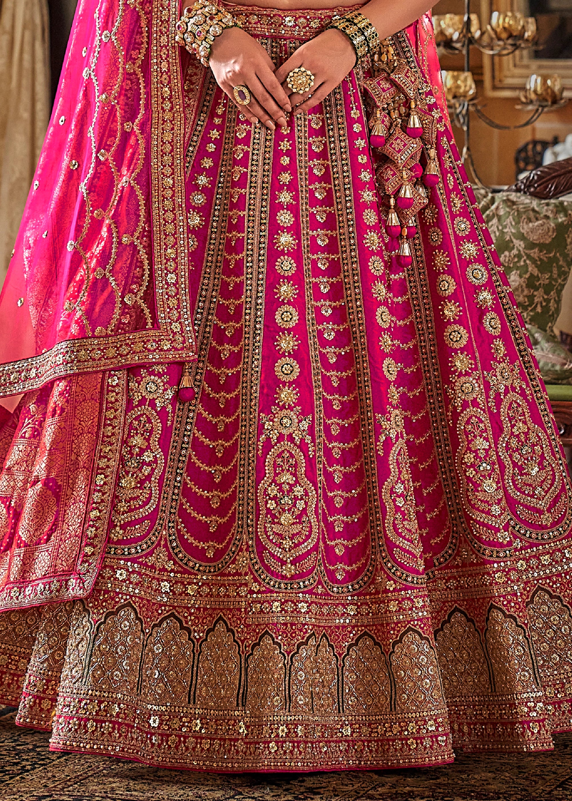 Fuchsia Pink Heavy Embroidered Designer Lehenga