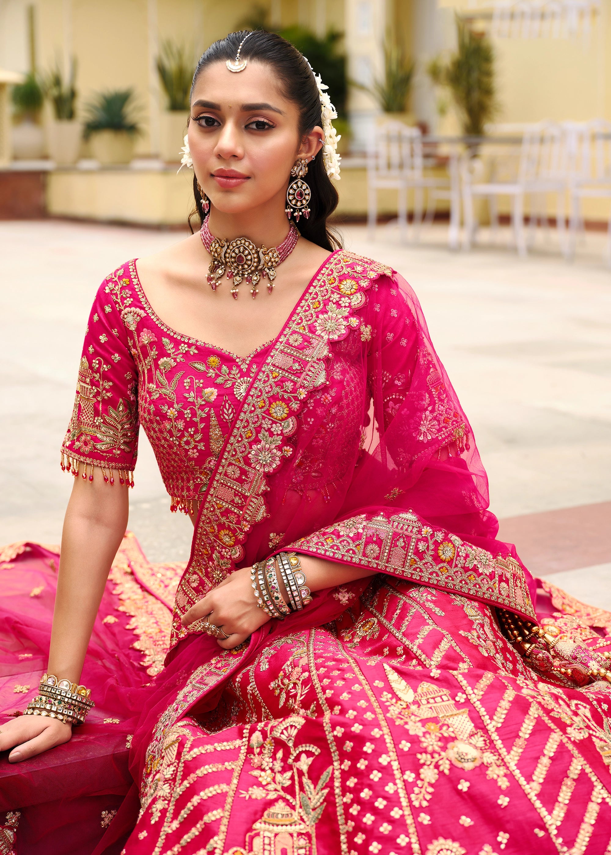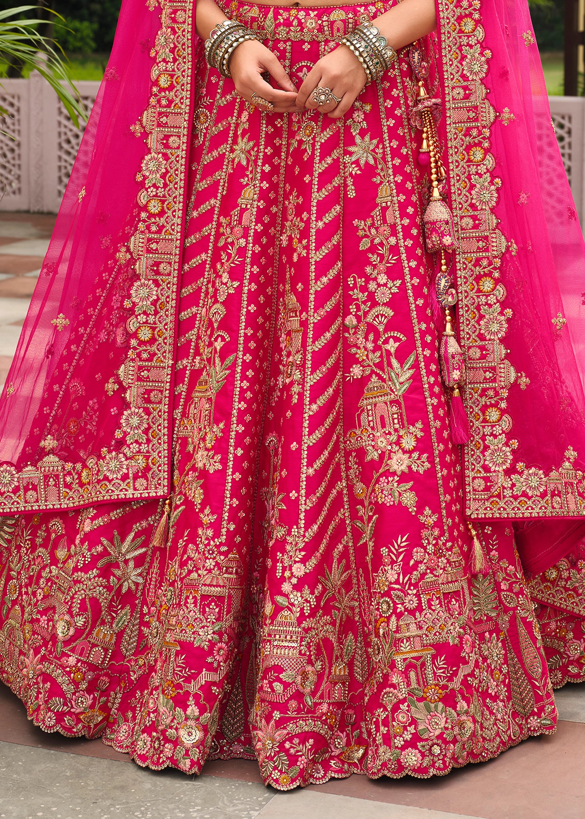 Hot Pink Heavy Embroidered Stitched Designer Lehenga