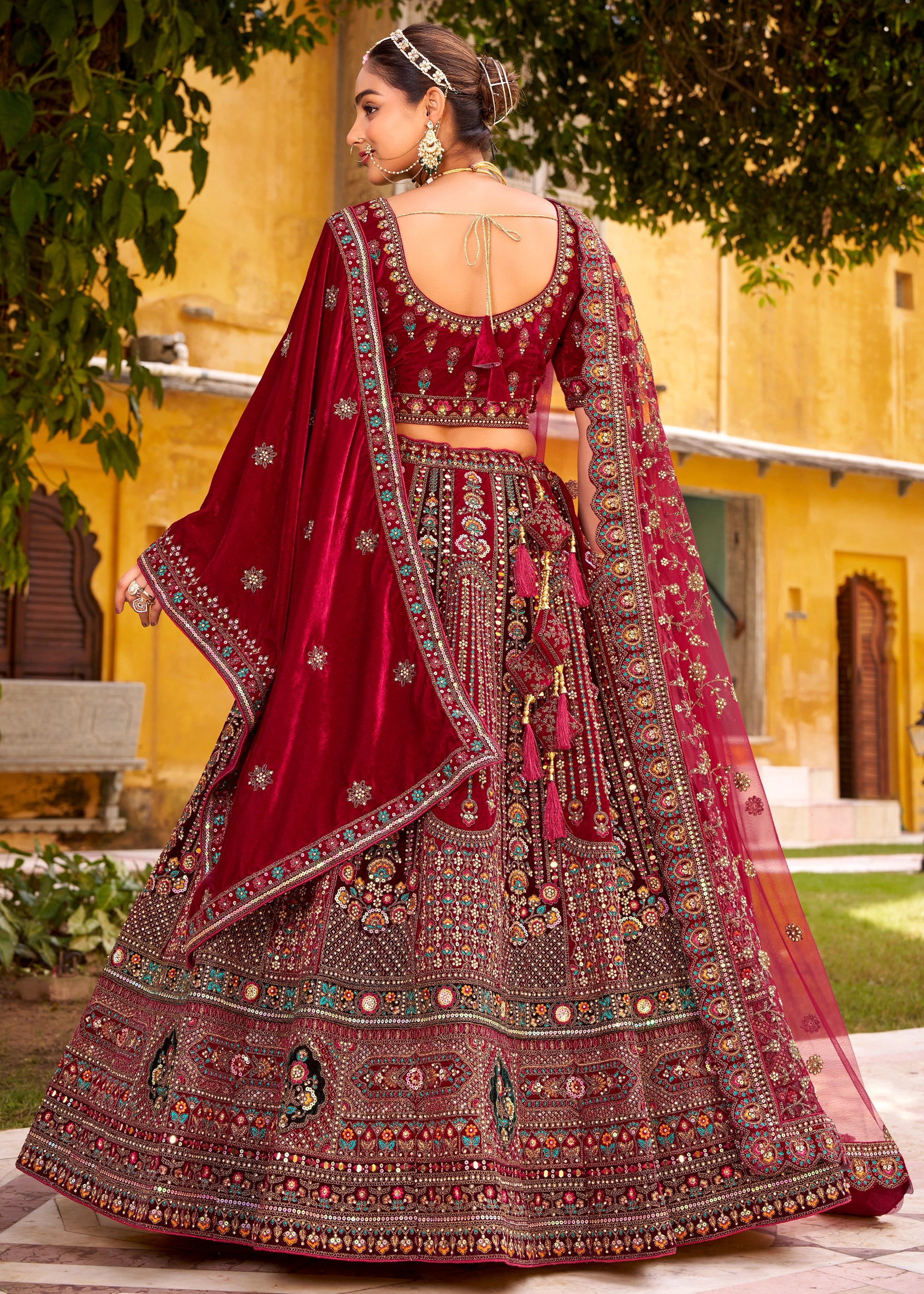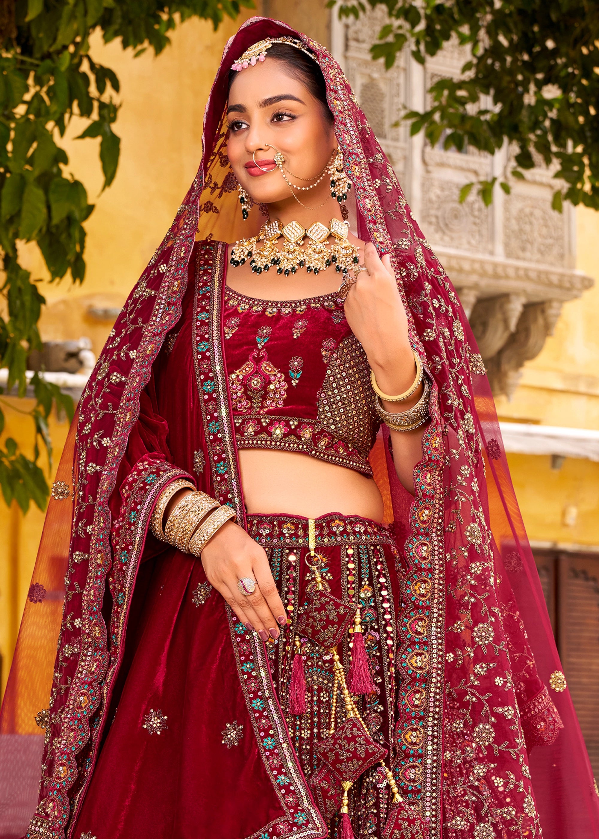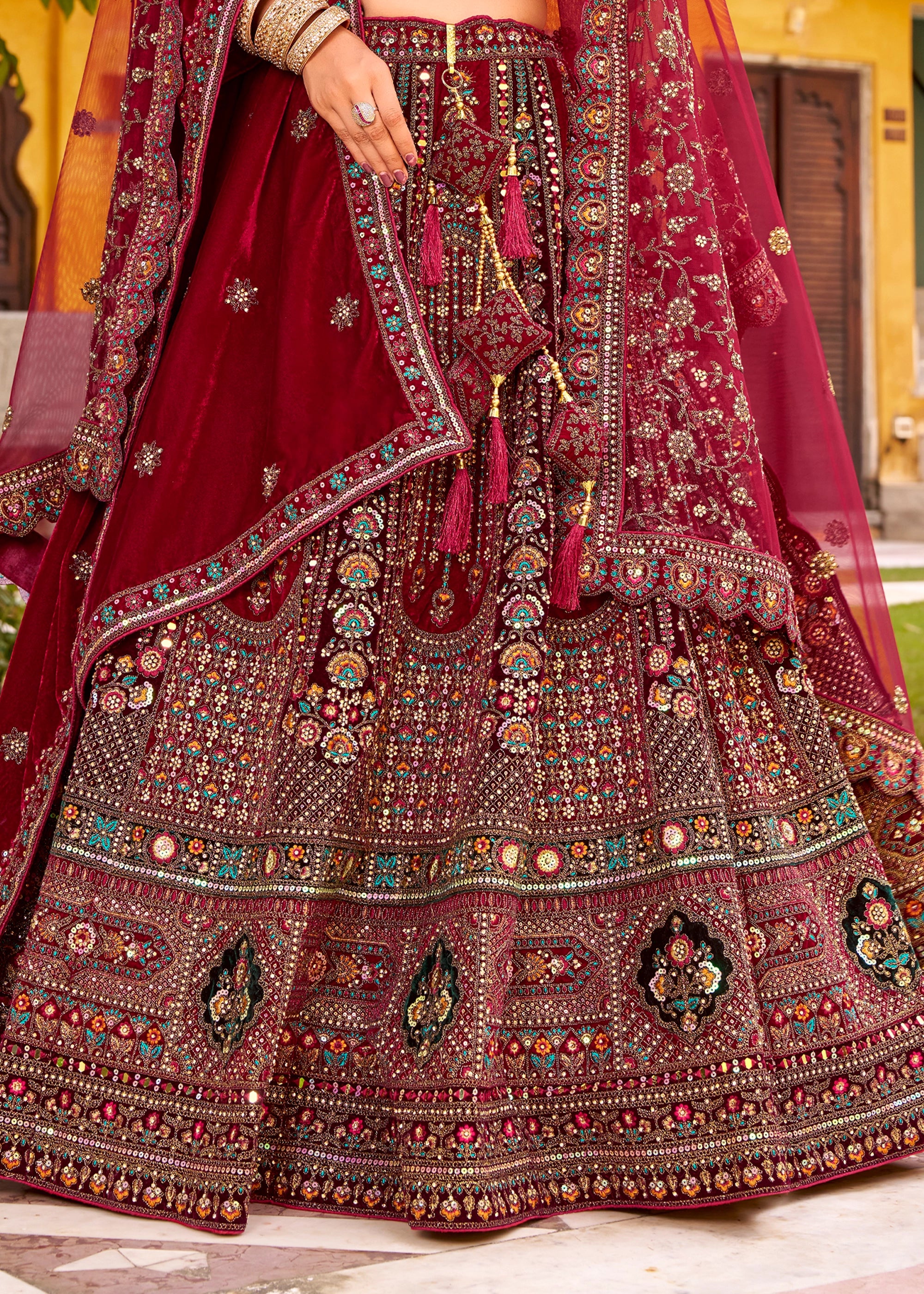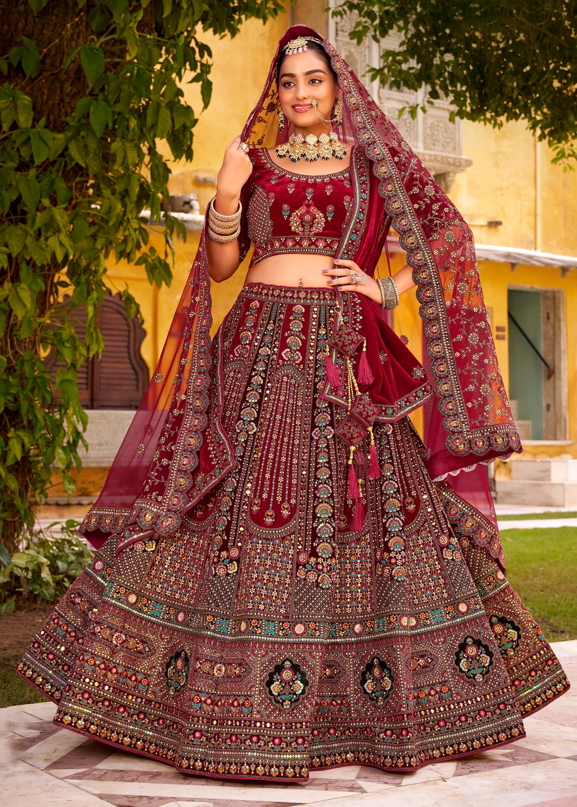 Maroon Heavy Embroidered Designer Lehenga