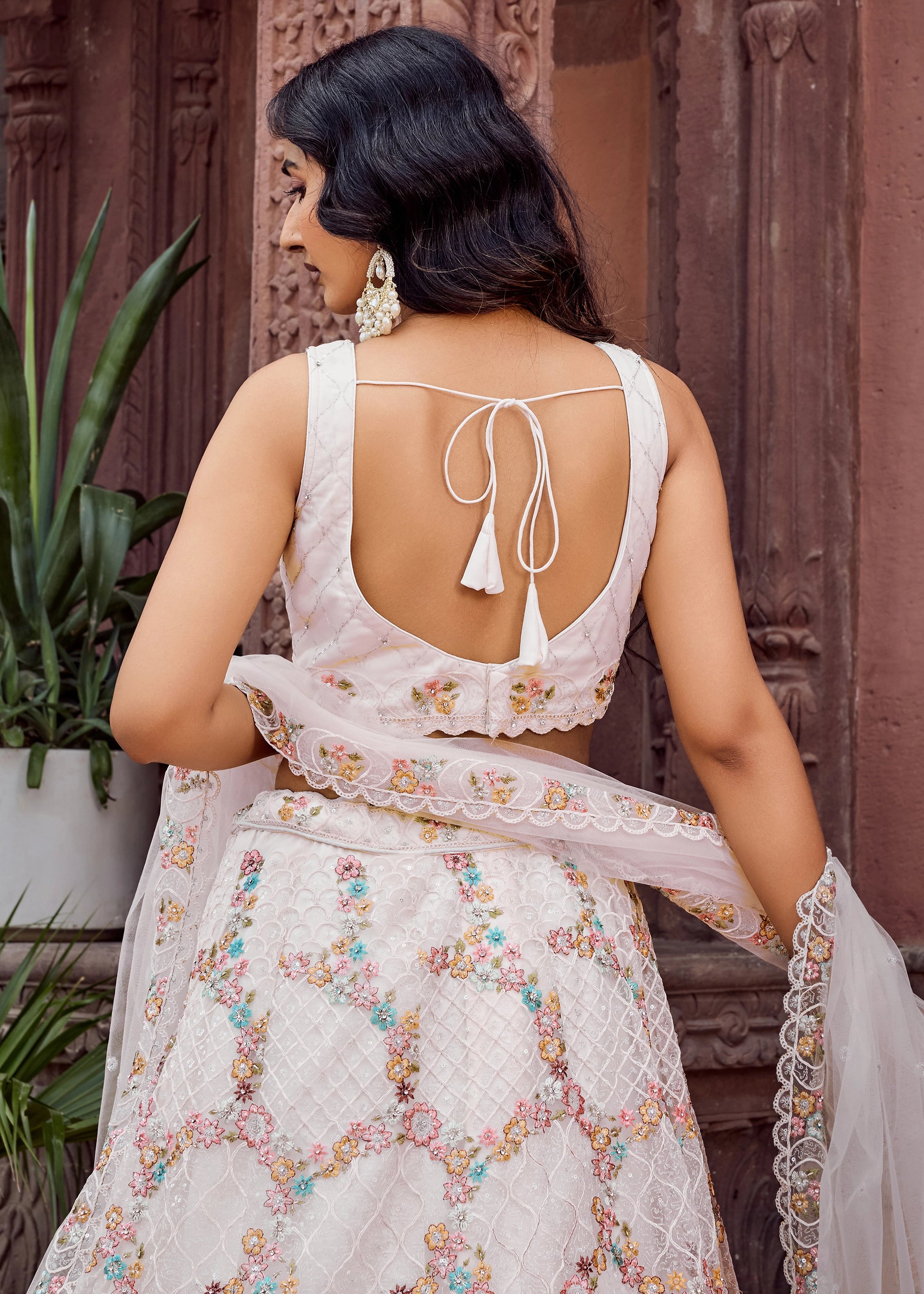 Dupatta: Net (2.5m x 1m) with Heavy Cutwork Embroidery.