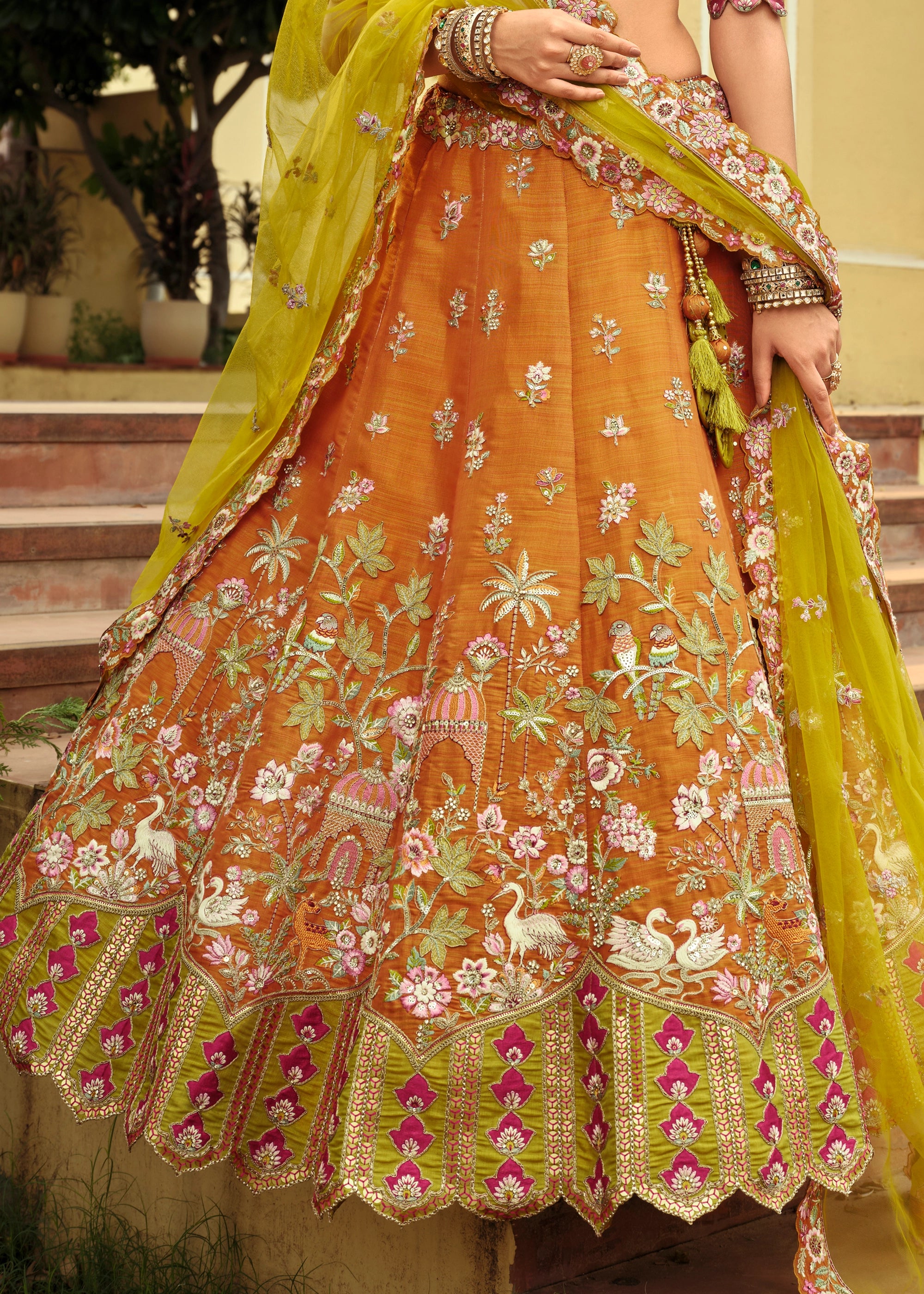 Saffron Orange Embroidered Stitched Designer Lehenga