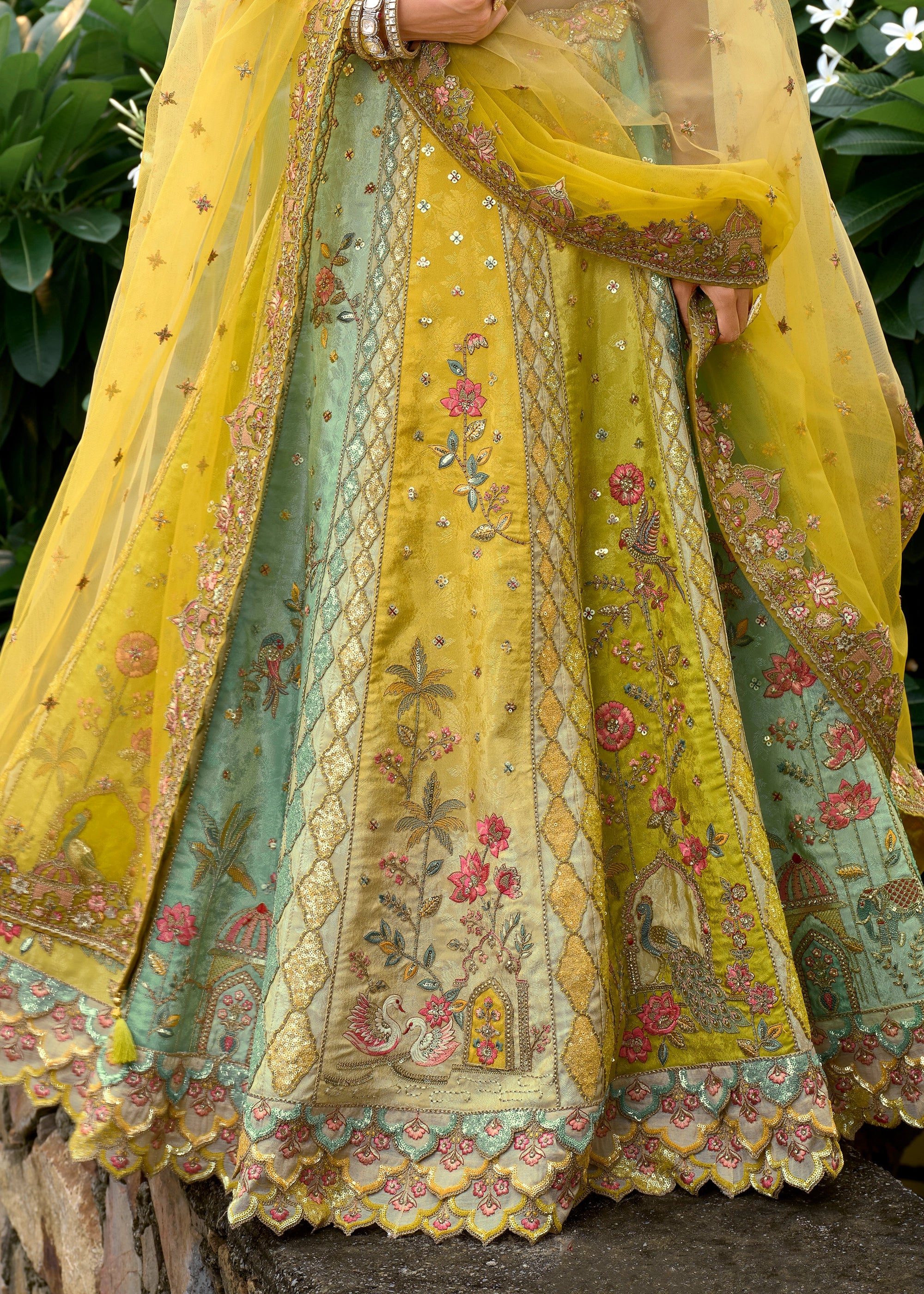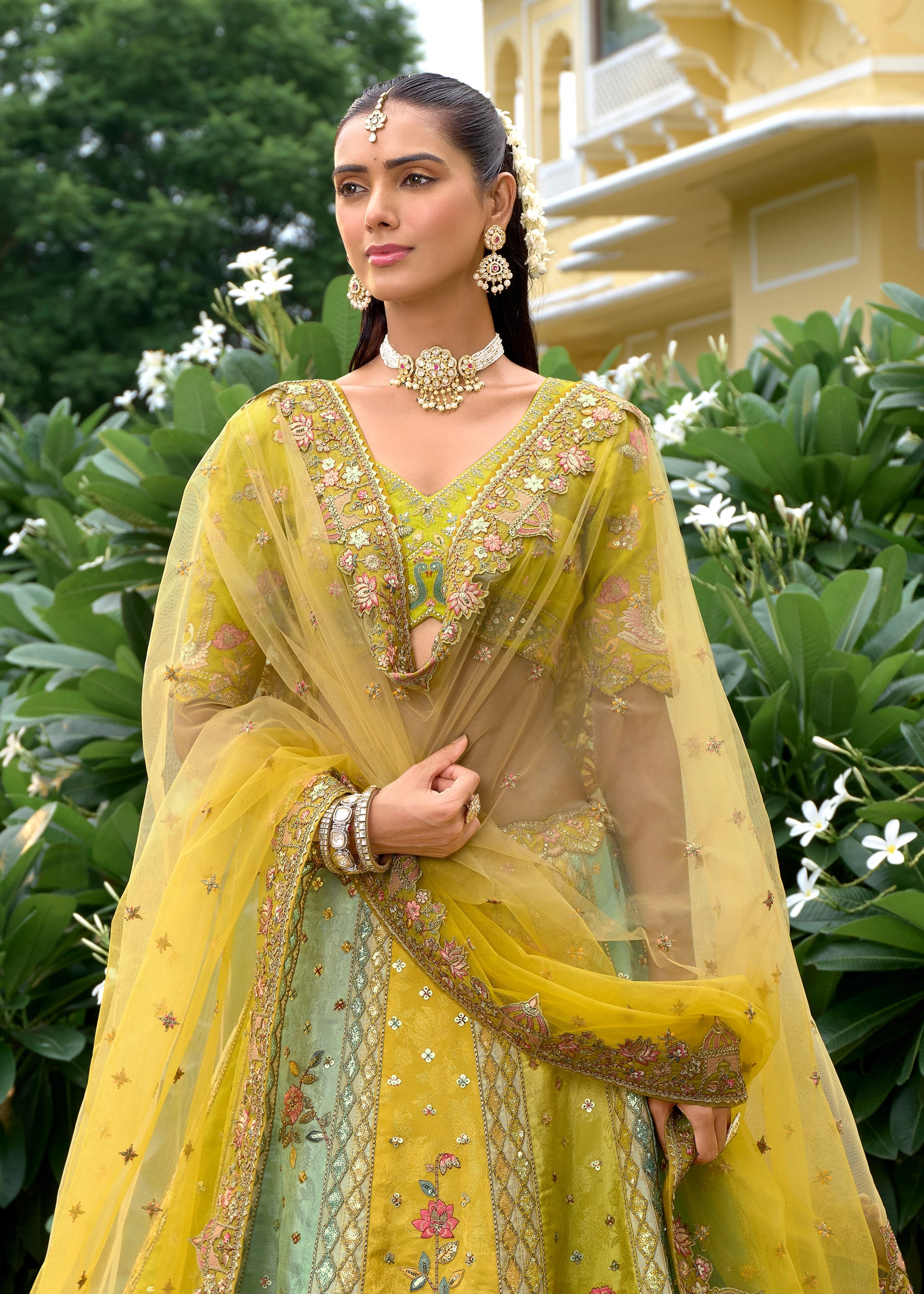 Shaded Multi-Color Yellow Elegance Embroidered Lehenga