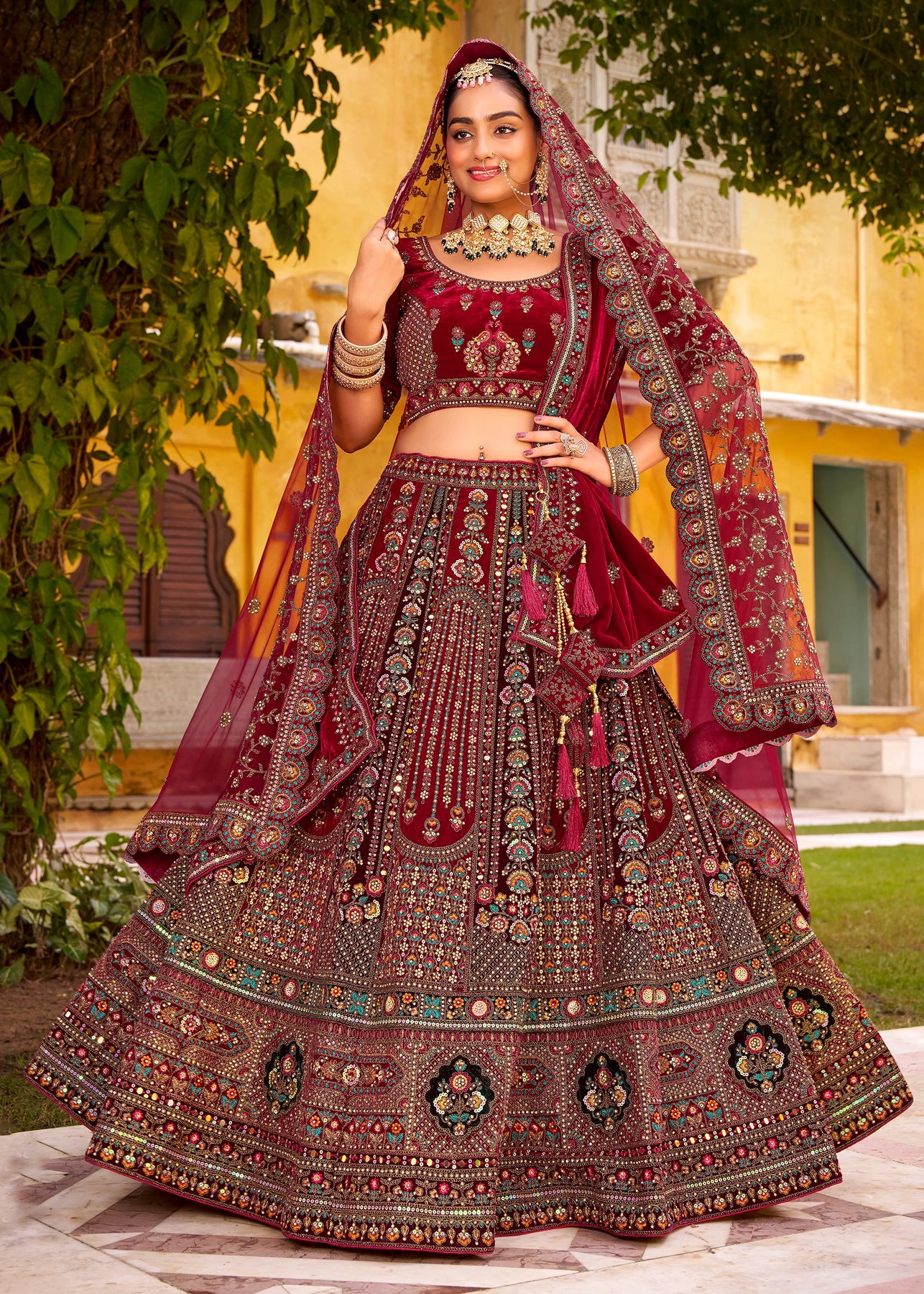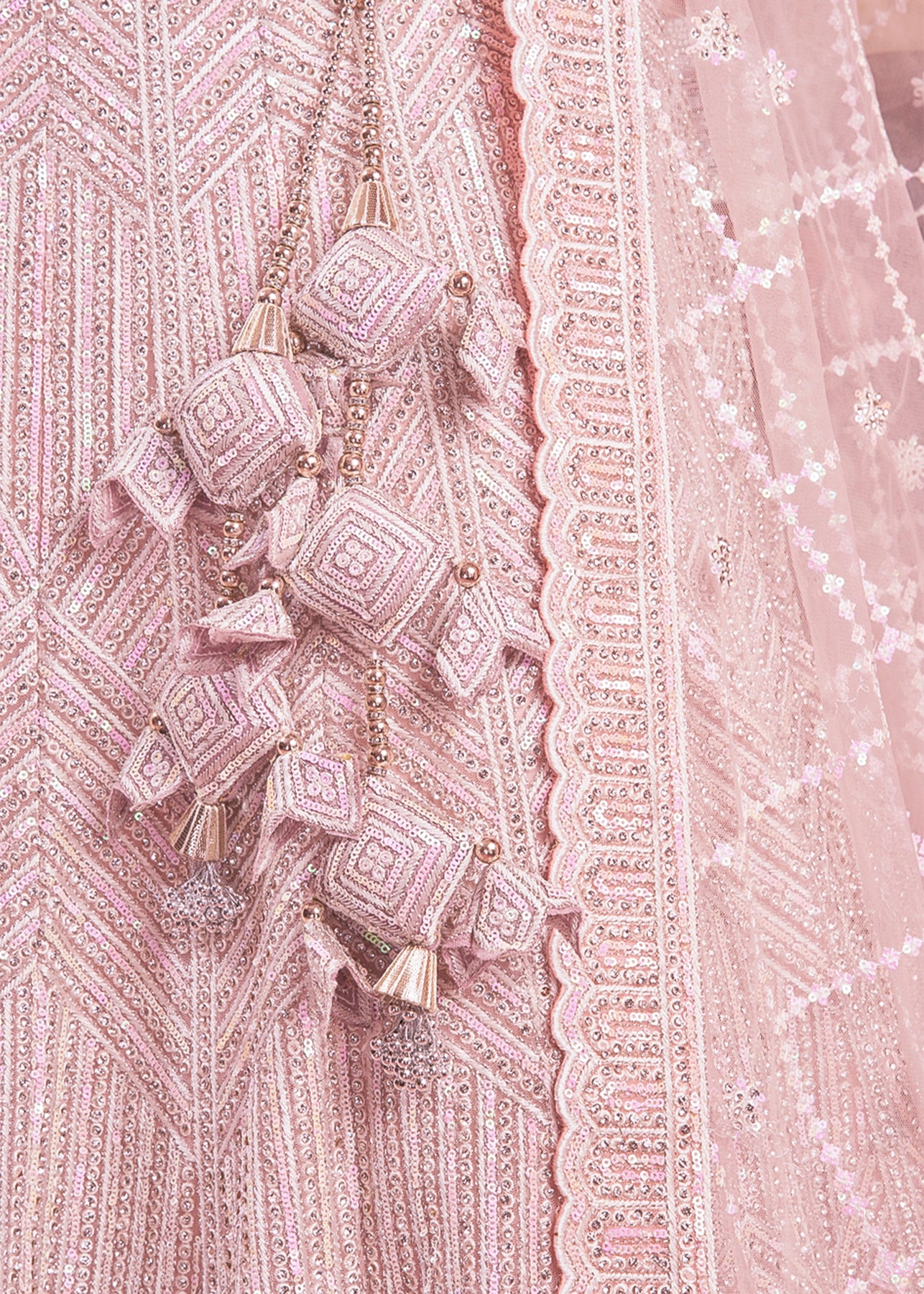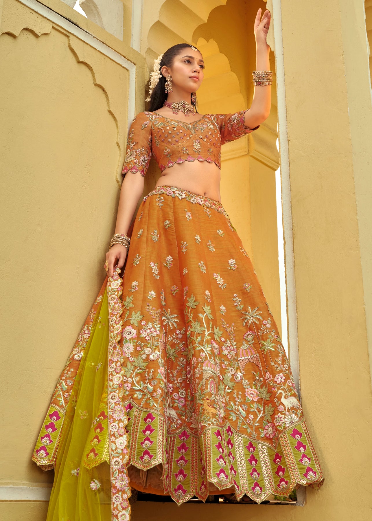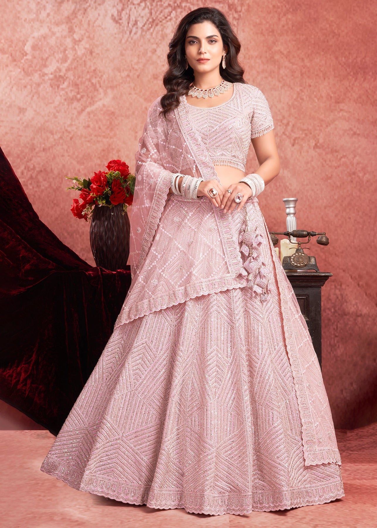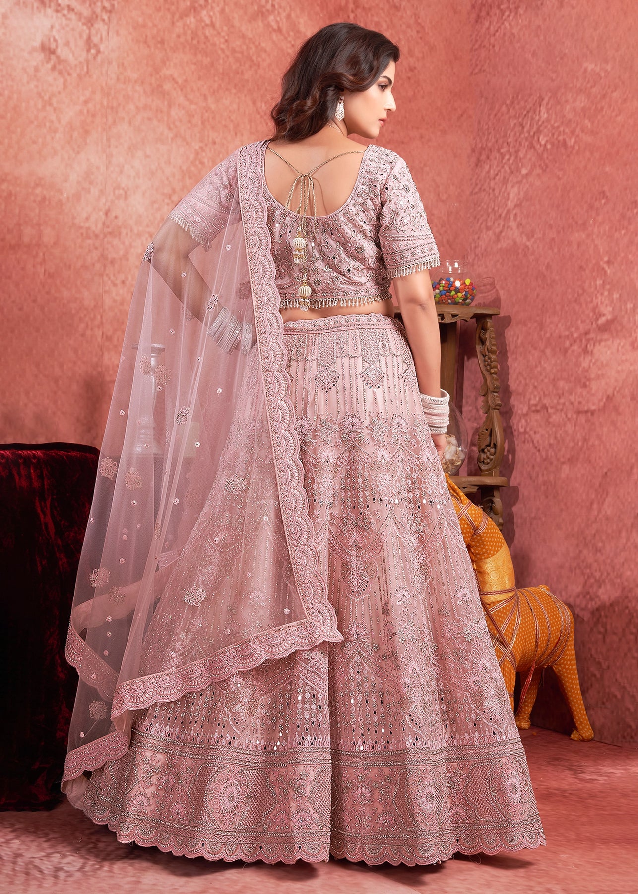 Adorn yourself in this gorgeous Fancy Silk Lehenga, featuring all-over designer embroidery, intricate Cut Work border, stone, sequence, and mirror...