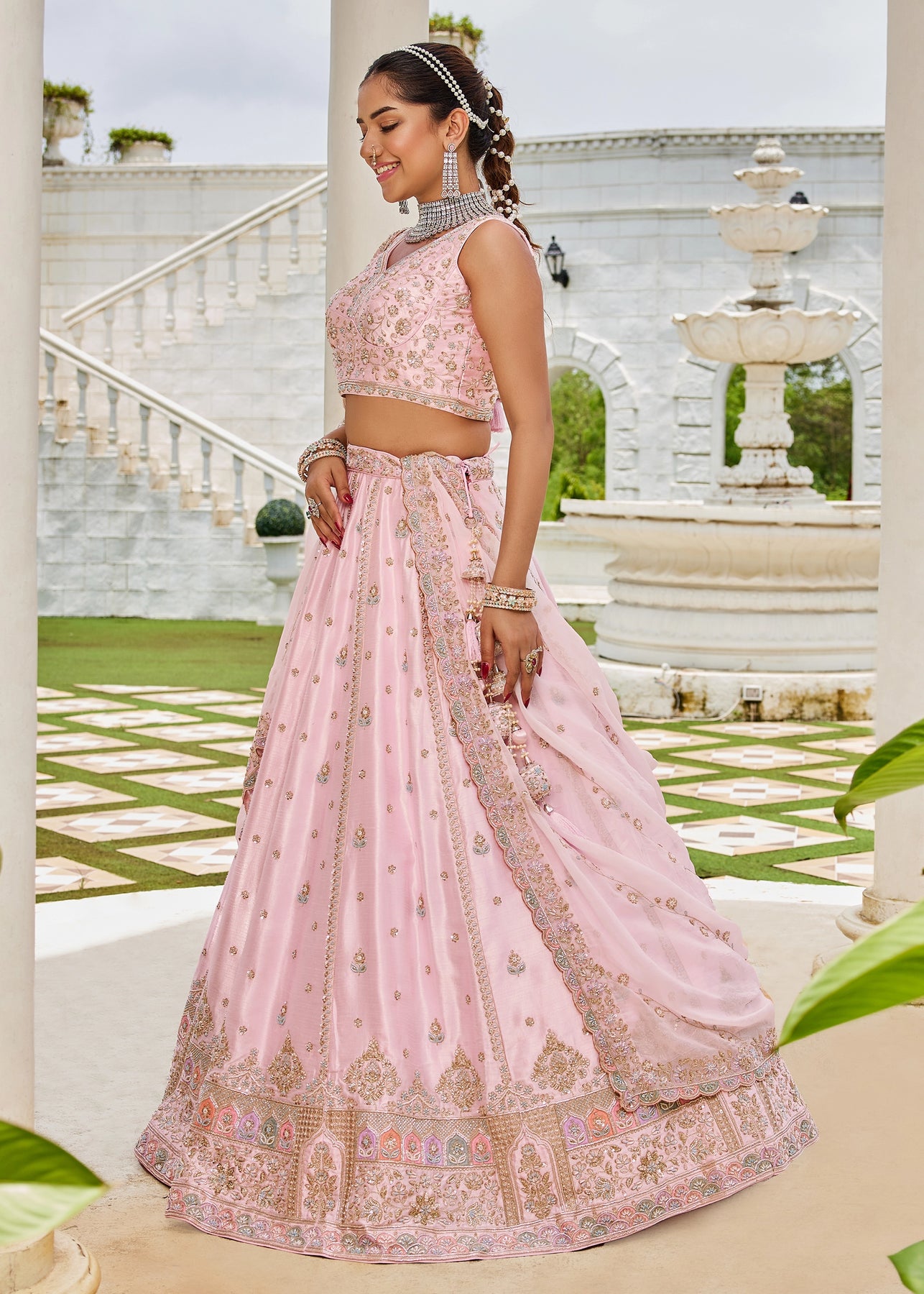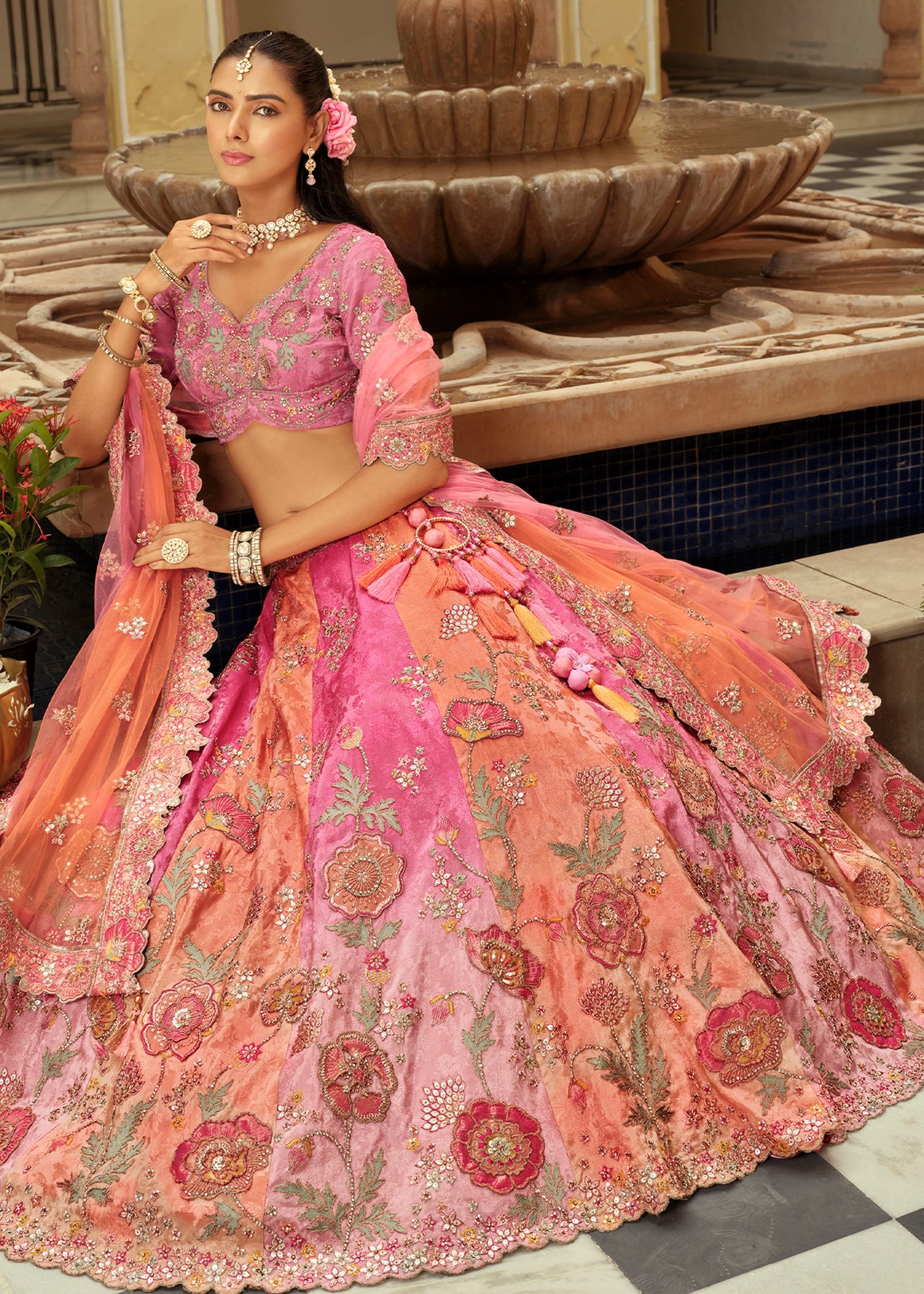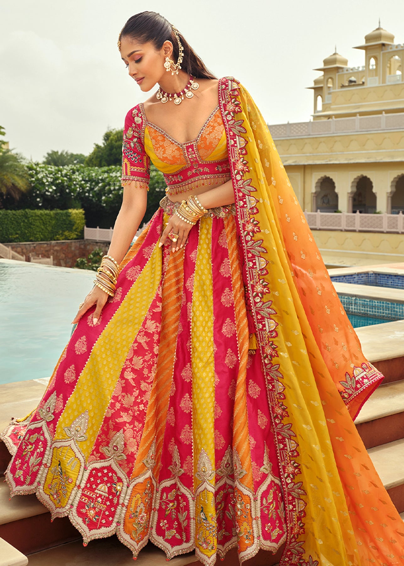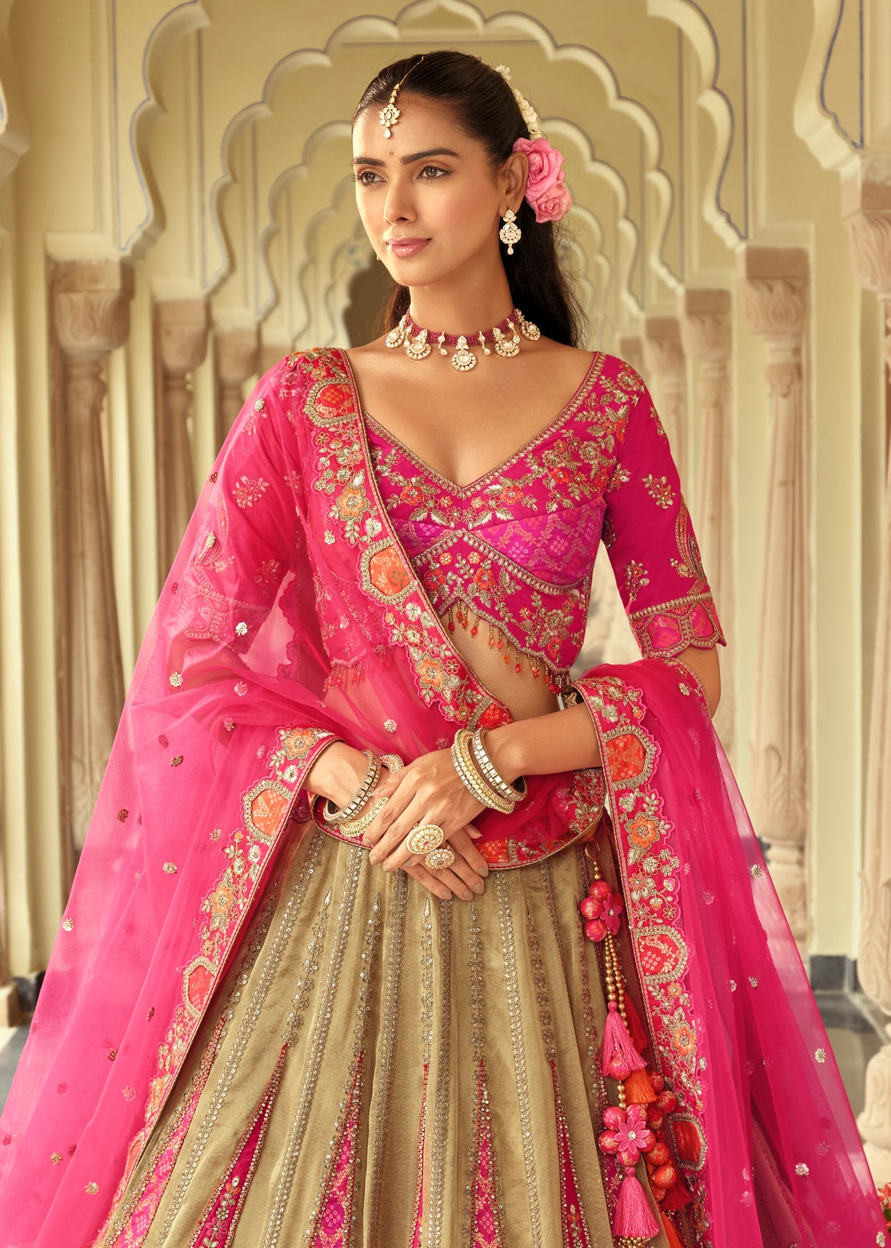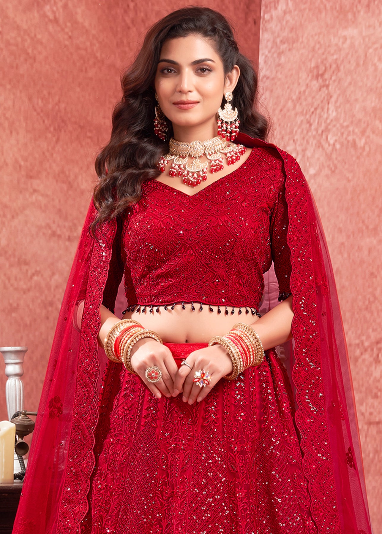 Adorn yourself in this gorgeous Fancy Silk Lehenga, featuring all-over designer embroidery, intricate Cut Work border, stone, sequence, and mirror...