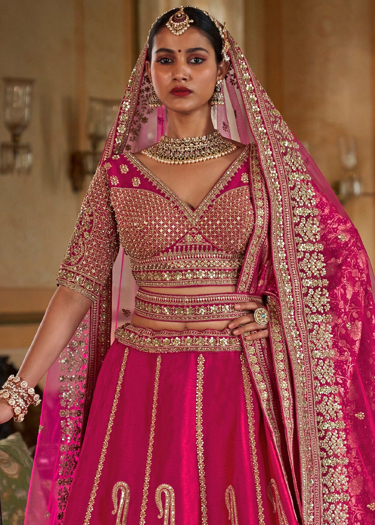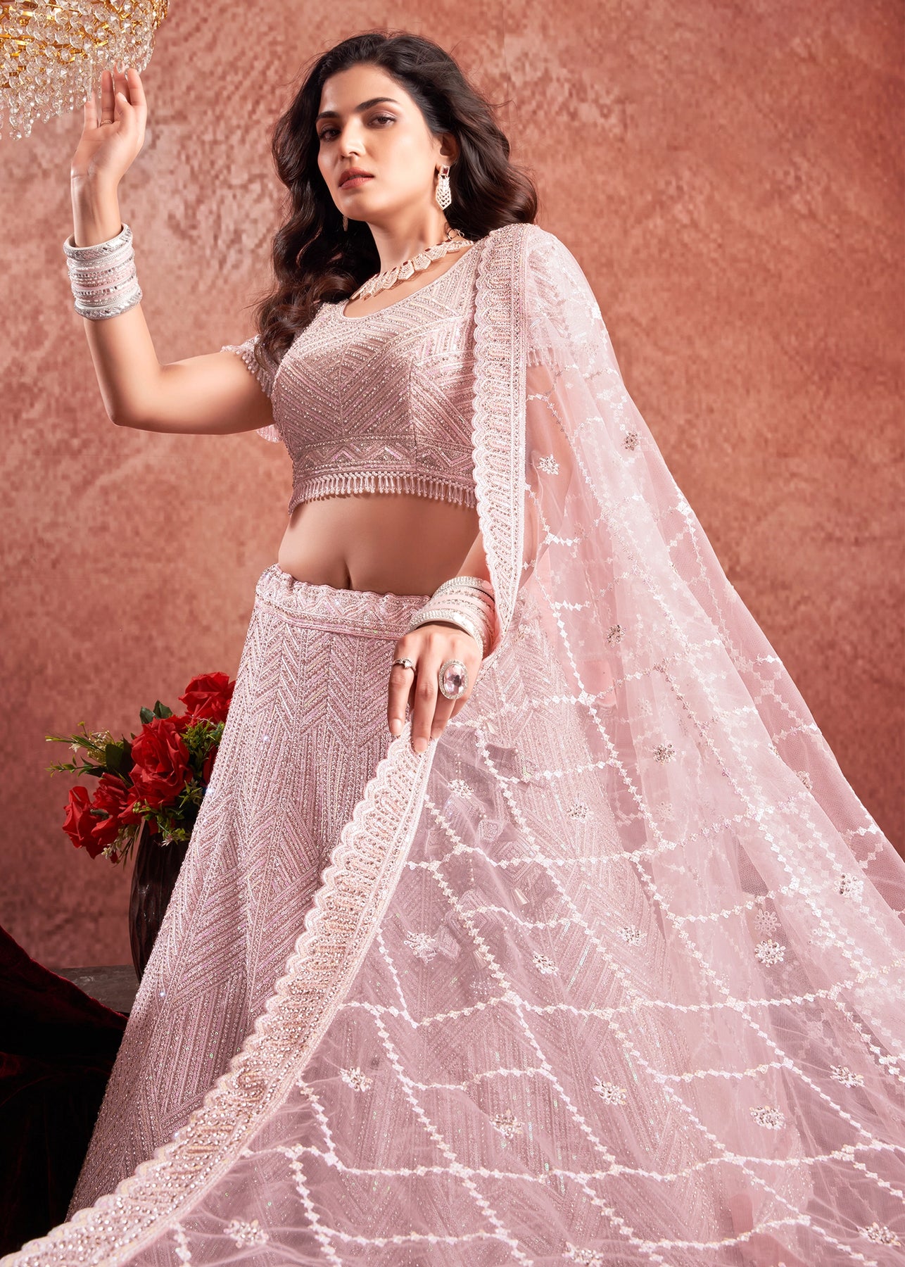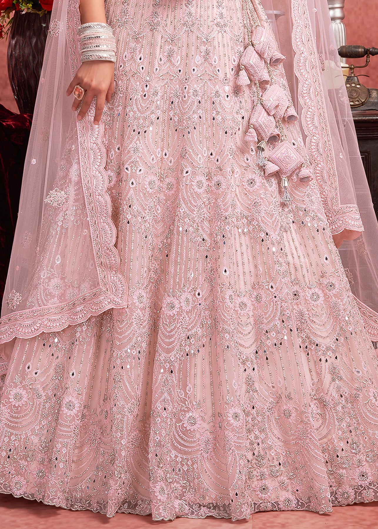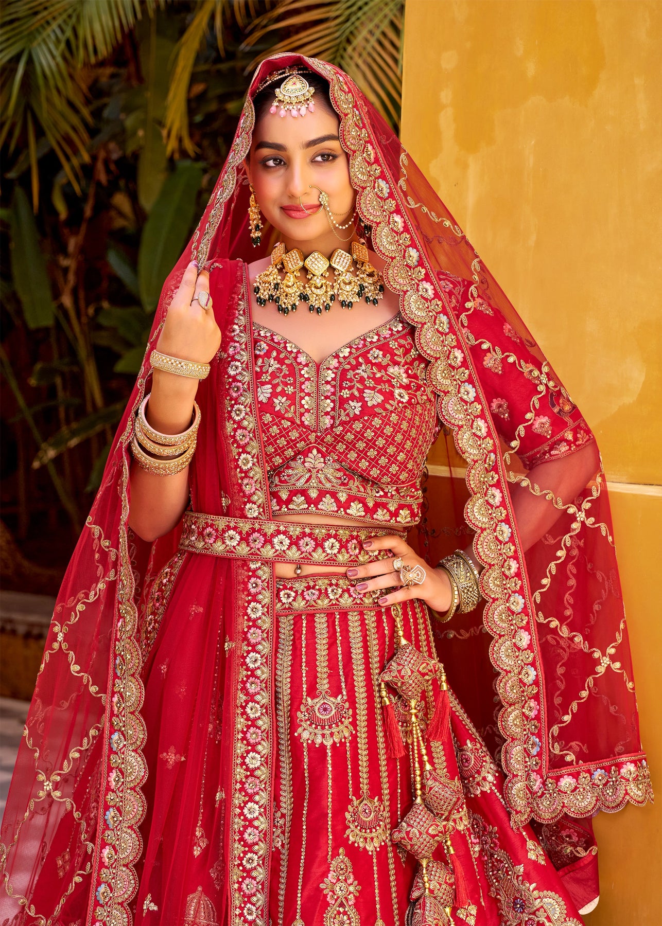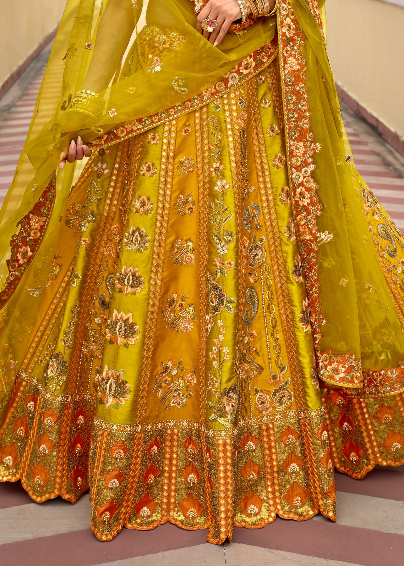Adorn yourself in this gorgeous Fancy Silk Lehenga, featuring all-over designer embroidery, intricate Cut Work border, stone, sequence, and mirror...