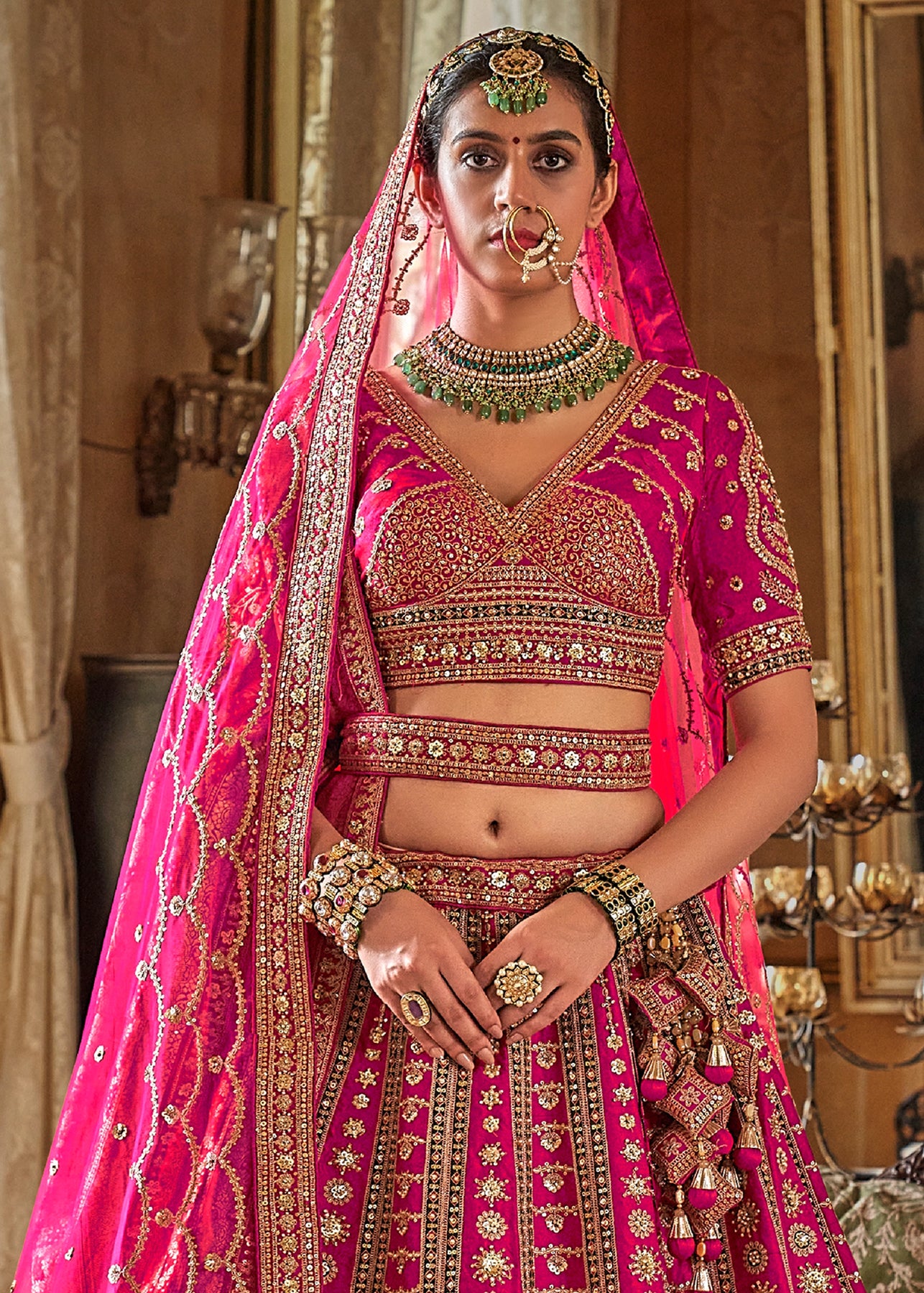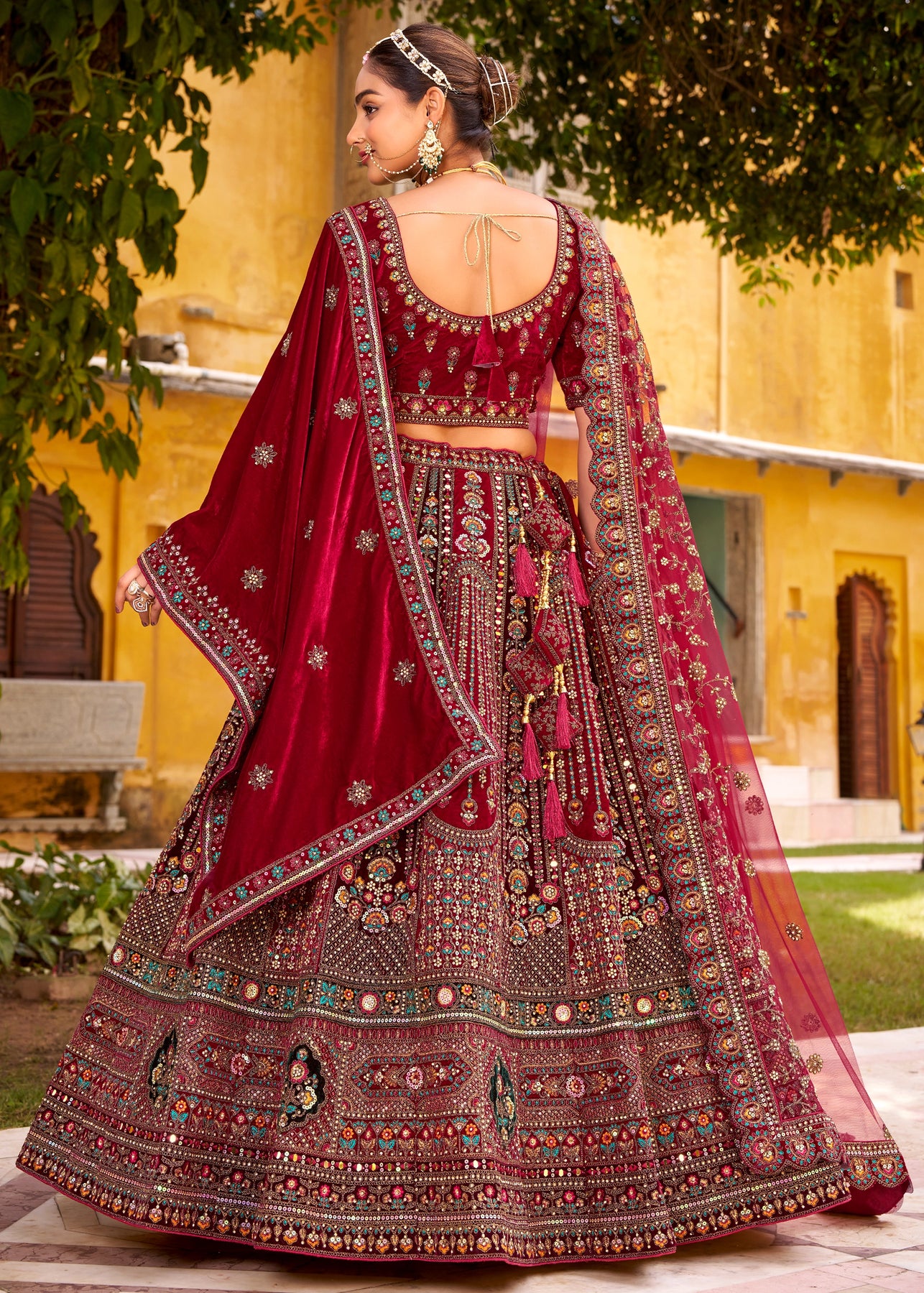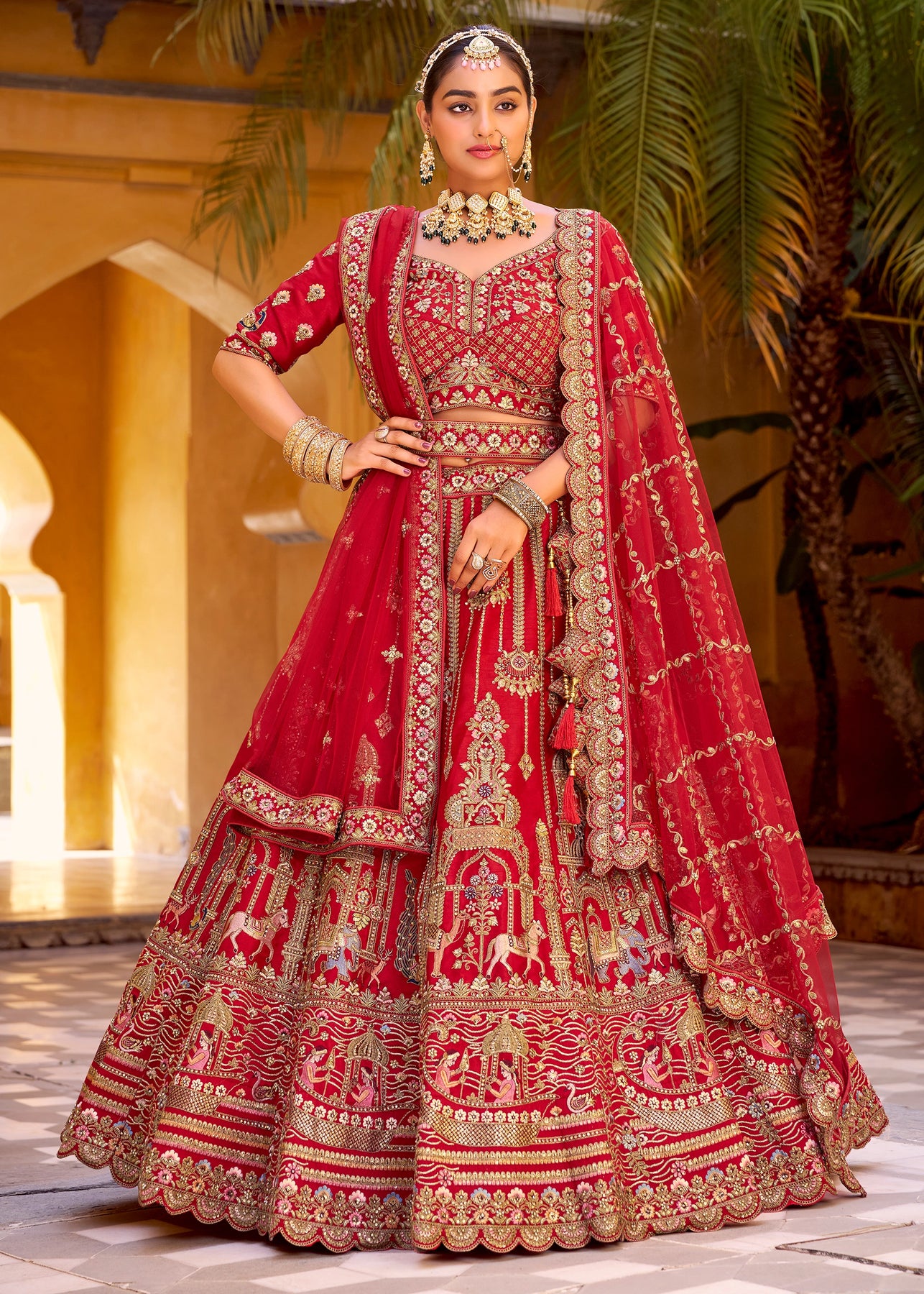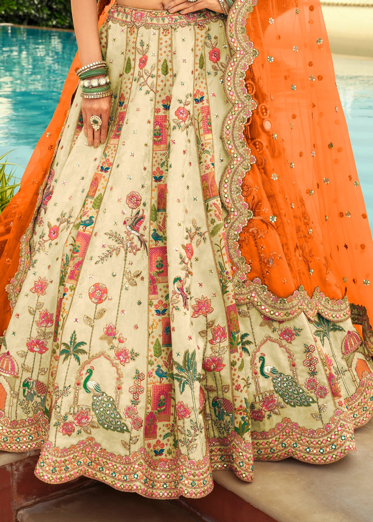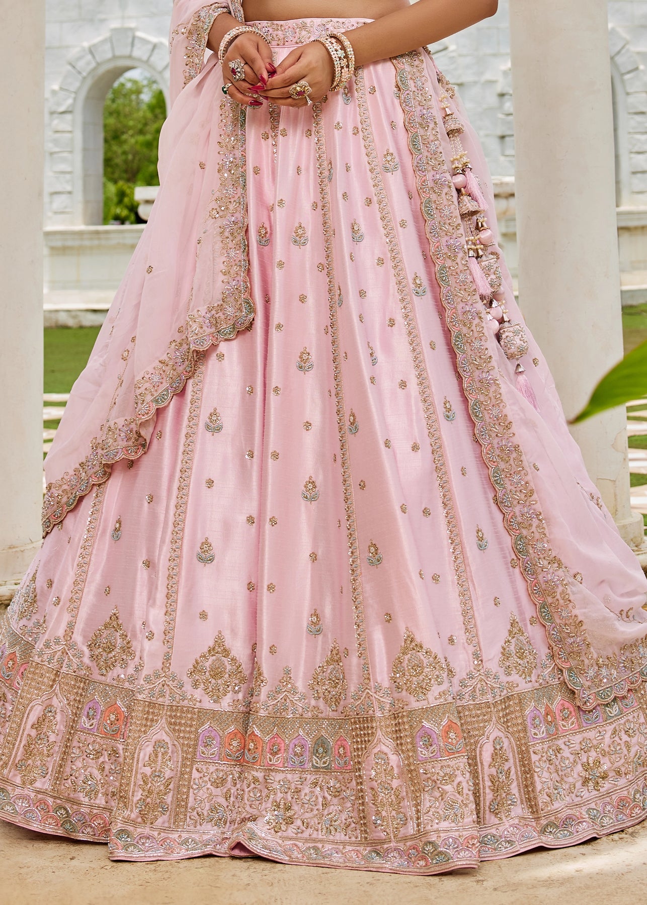 Adorn yourself in this gorgeous Fancy Silk Lehenga, featuring all-over designer embroidery, intricate Cut Work border, stone, sequence, and mirror...