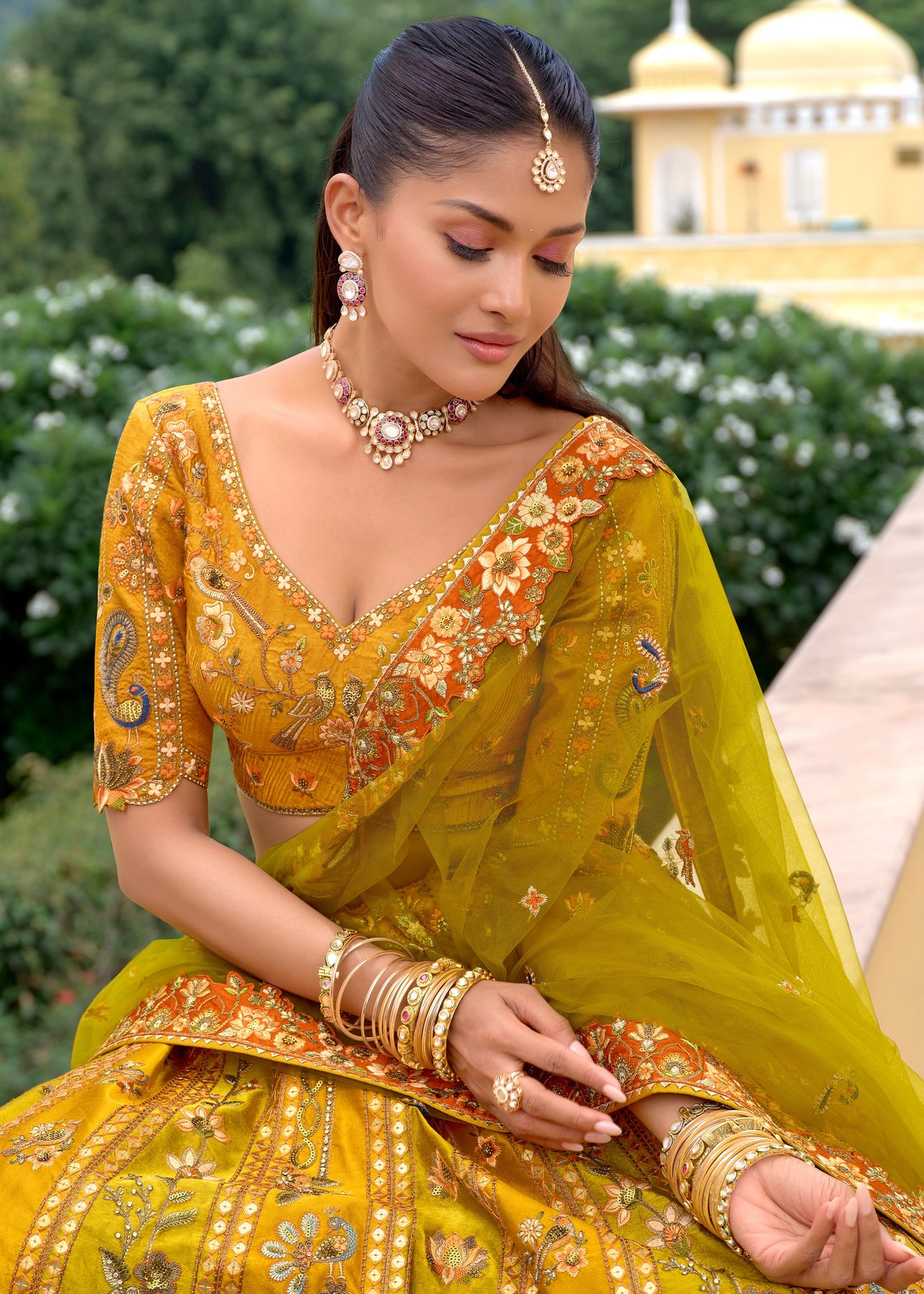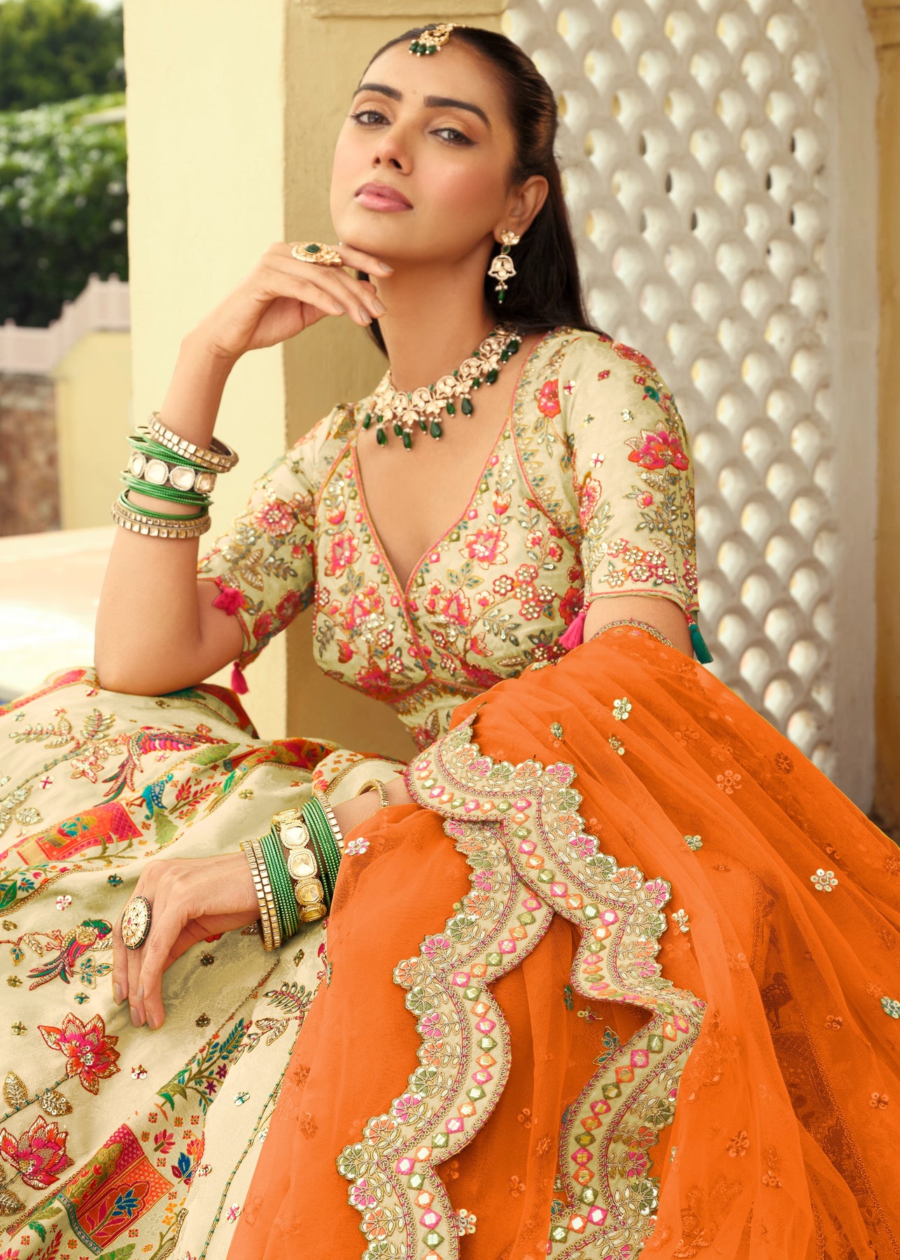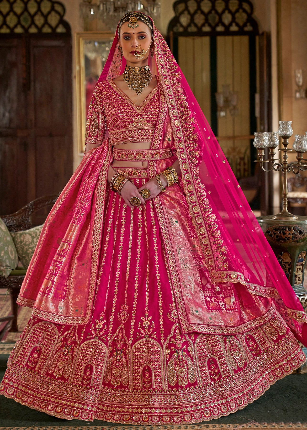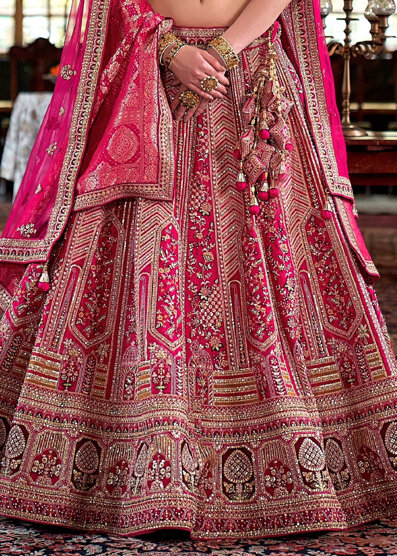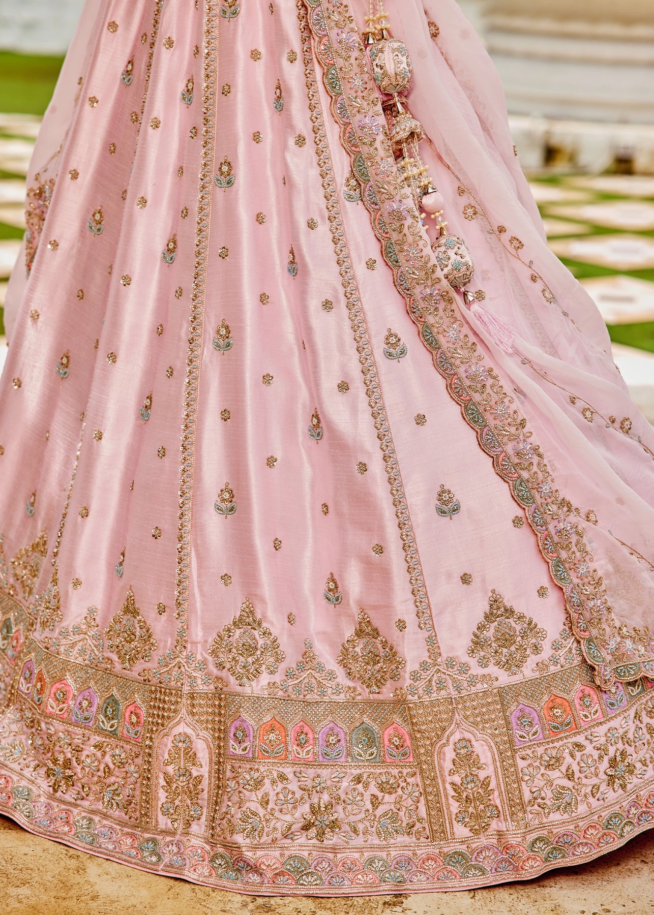 Adorn yourself in this gorgeous Fancy Silk Lehenga, featuring all-over designer embroidery, intricate Cut Work border, stone, sequence, and mirror...