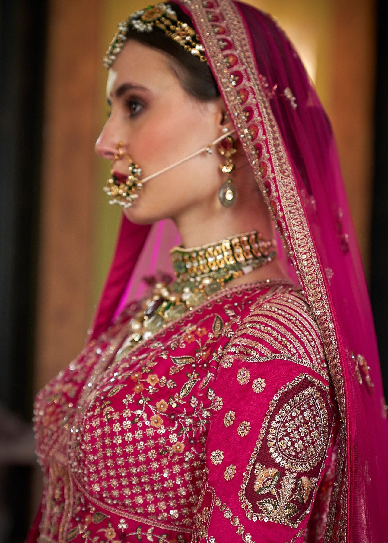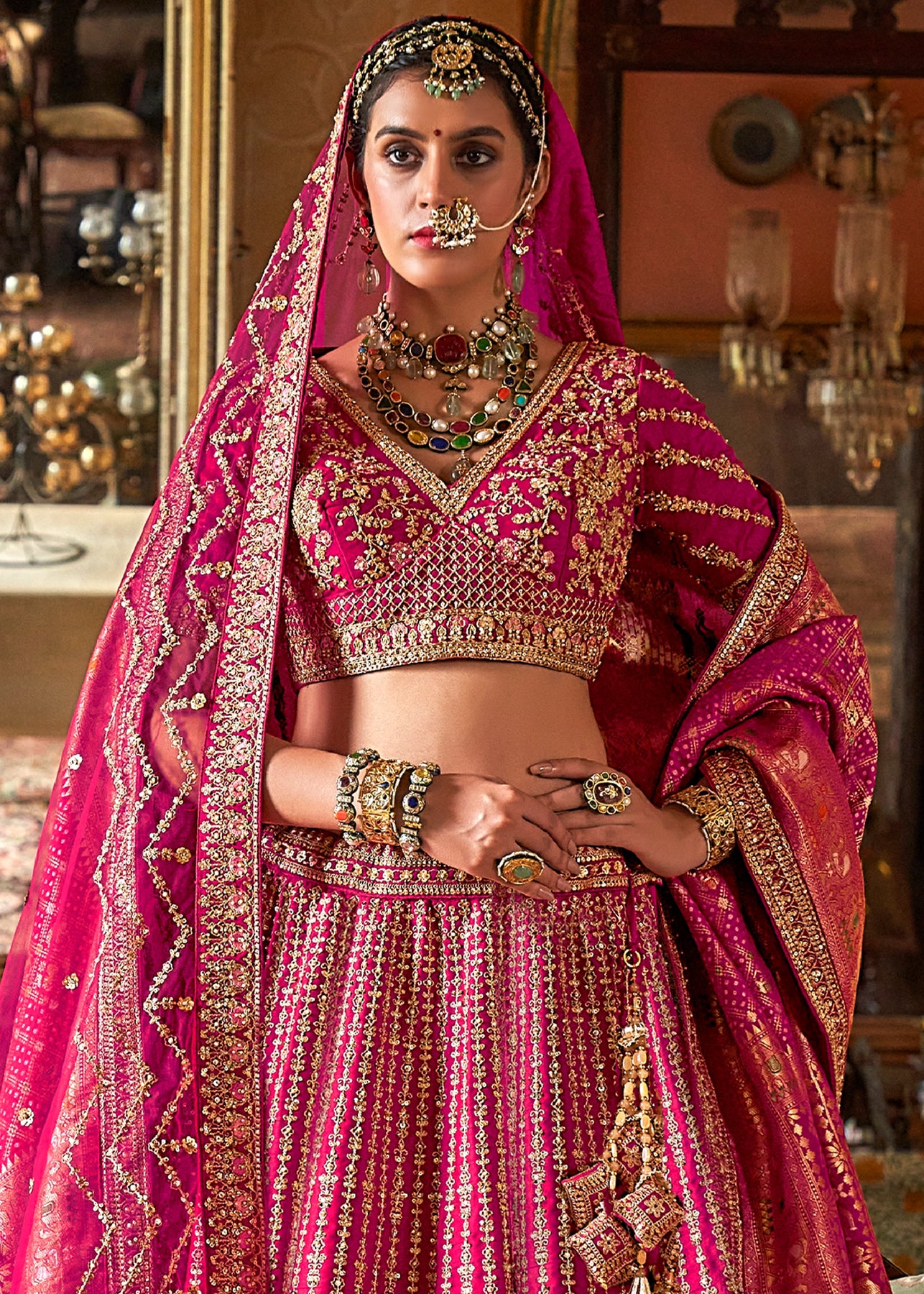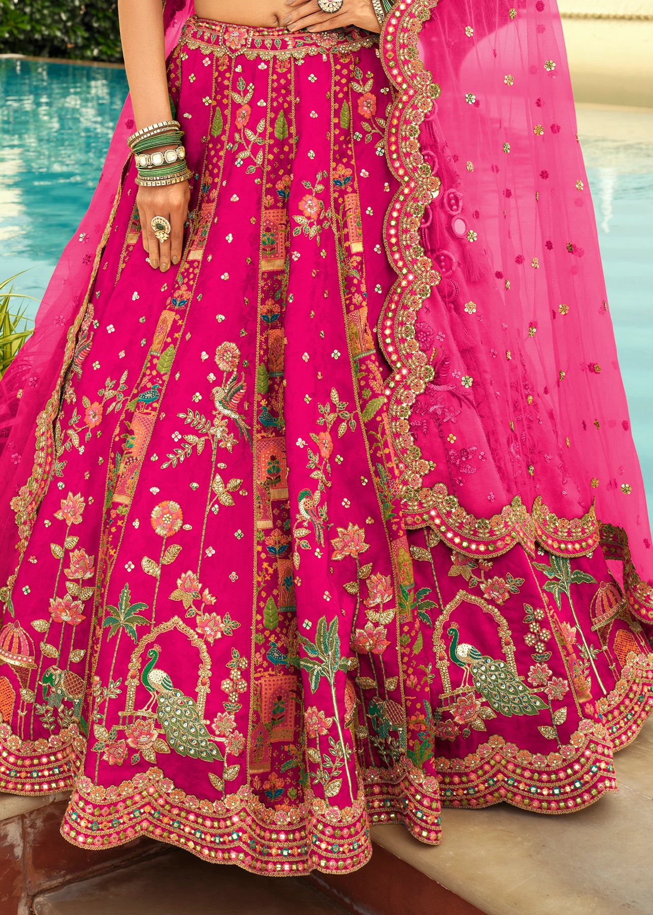Adorn yourself in this gorgeous Fancy Silk Lehenga, featuring all-over designer embroidery, intricate Cut Work border, stone, sequence, and mirror detailing. Unstitched up to 42 inches.