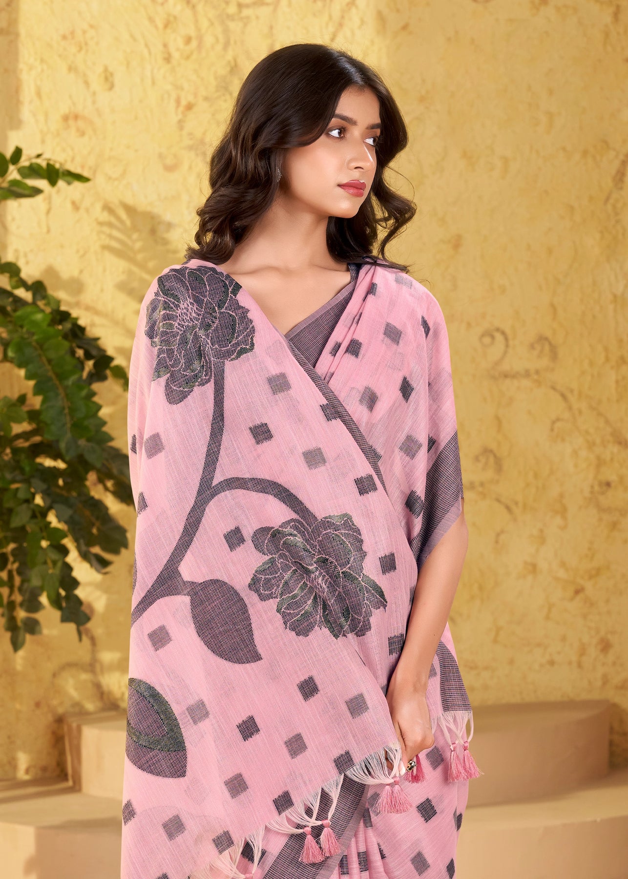 Gajari Pink Banarasi Linen Woven Silk Saree