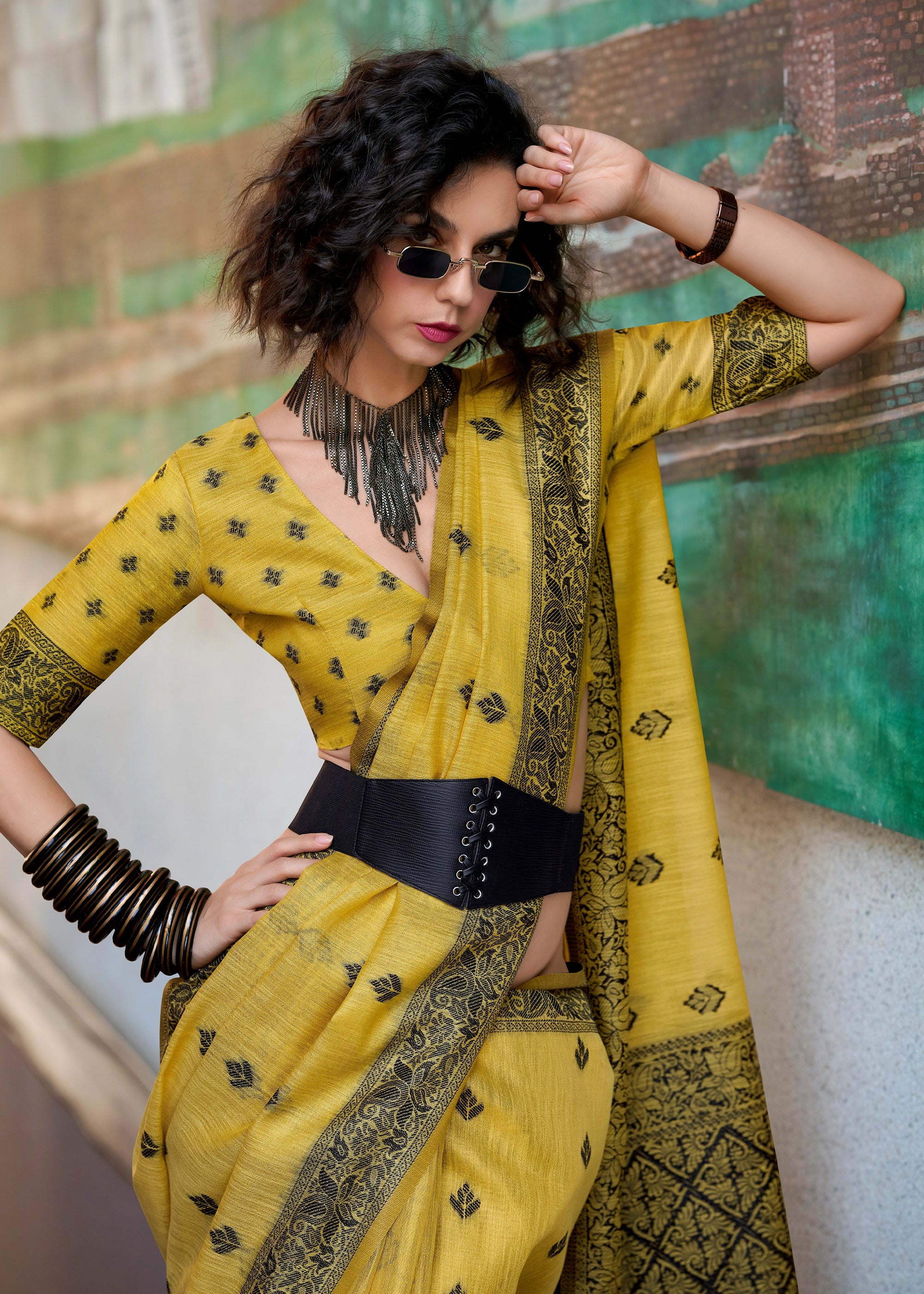 Aurora Yellow Woven Tissue Linen Silk Saree