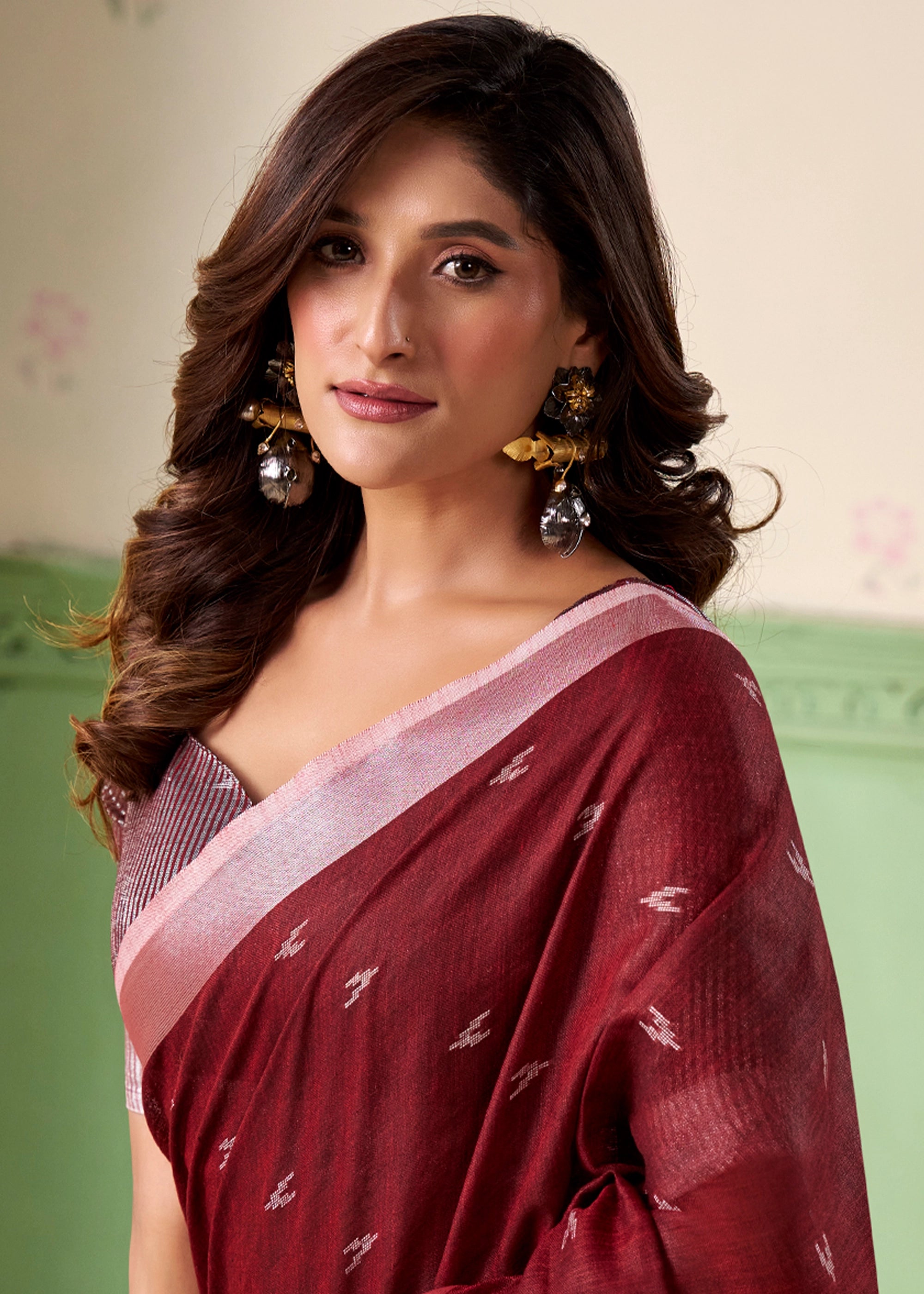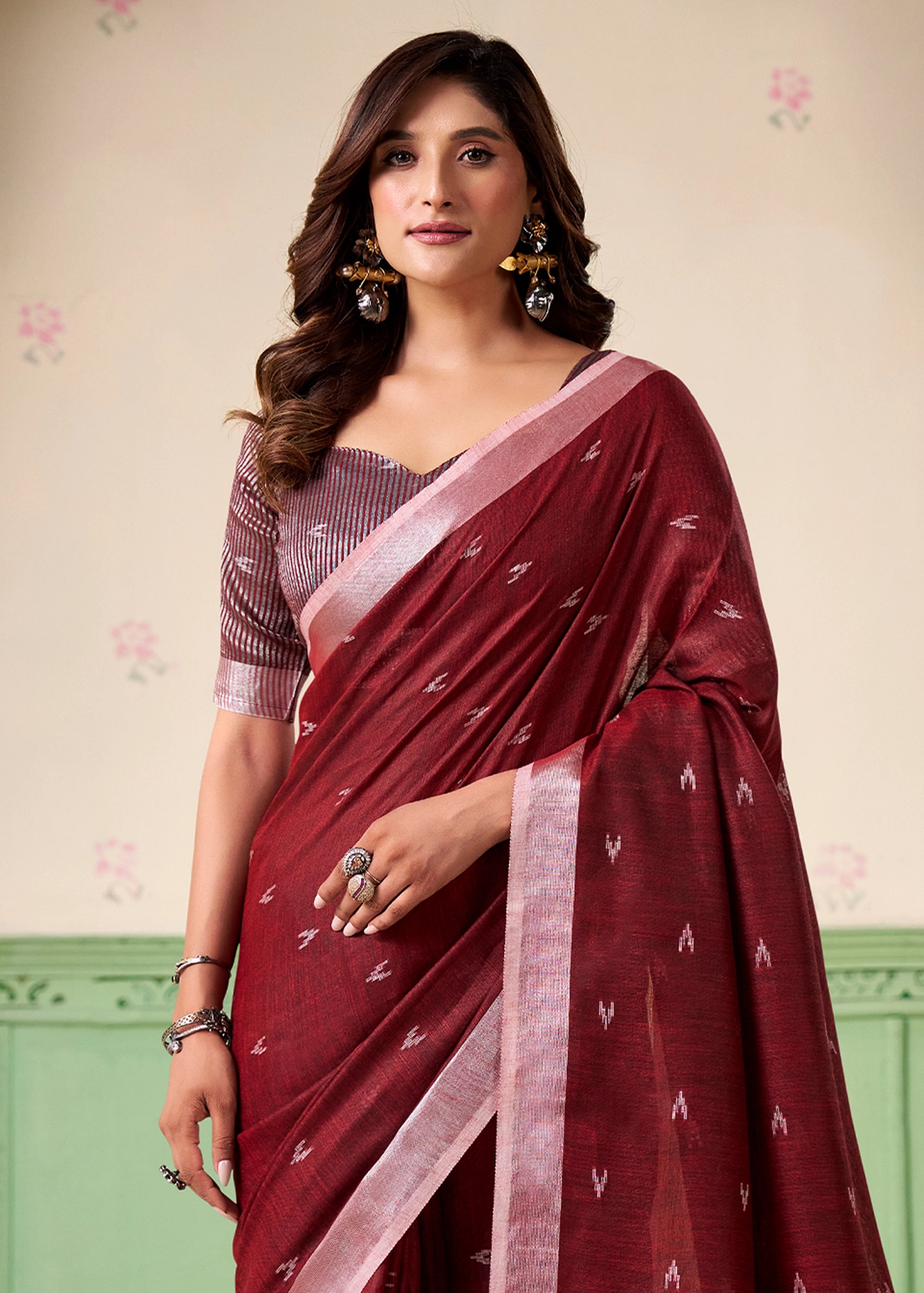 Elevate your ethnic wardrobe with this exquisite Linen Silk Saree, known for its lightweight feel, soft texture, and luxurious...
