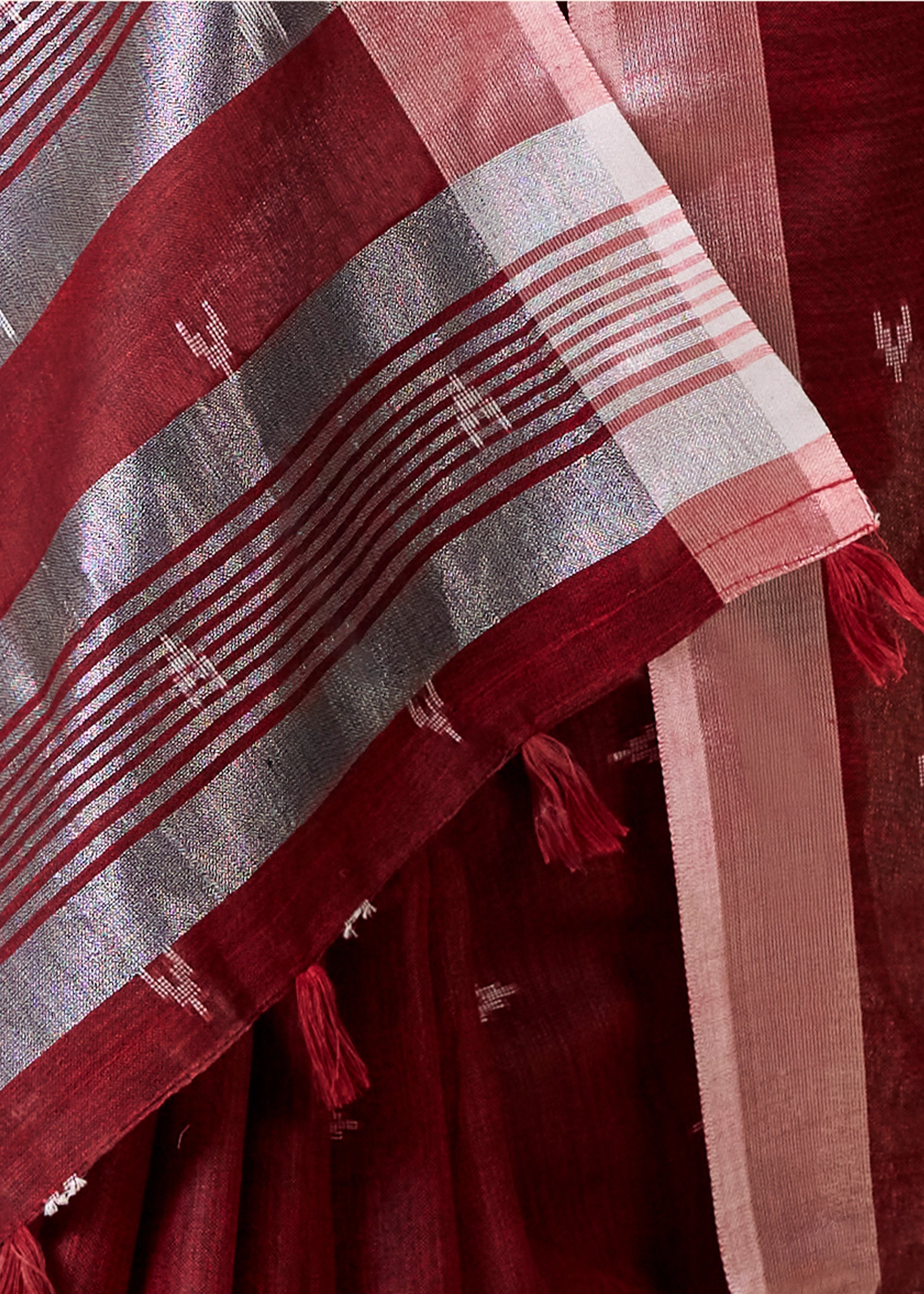 Elevate your ethnic wardrobe with this exquisite Linen Silk Saree, known for its lightweight feel, soft texture, and luxurious shimmer. Crafted by blending fine linen with cotton , the saree offers a beautiful balance of structure and fluidity, giving it a graceful, airy drape.