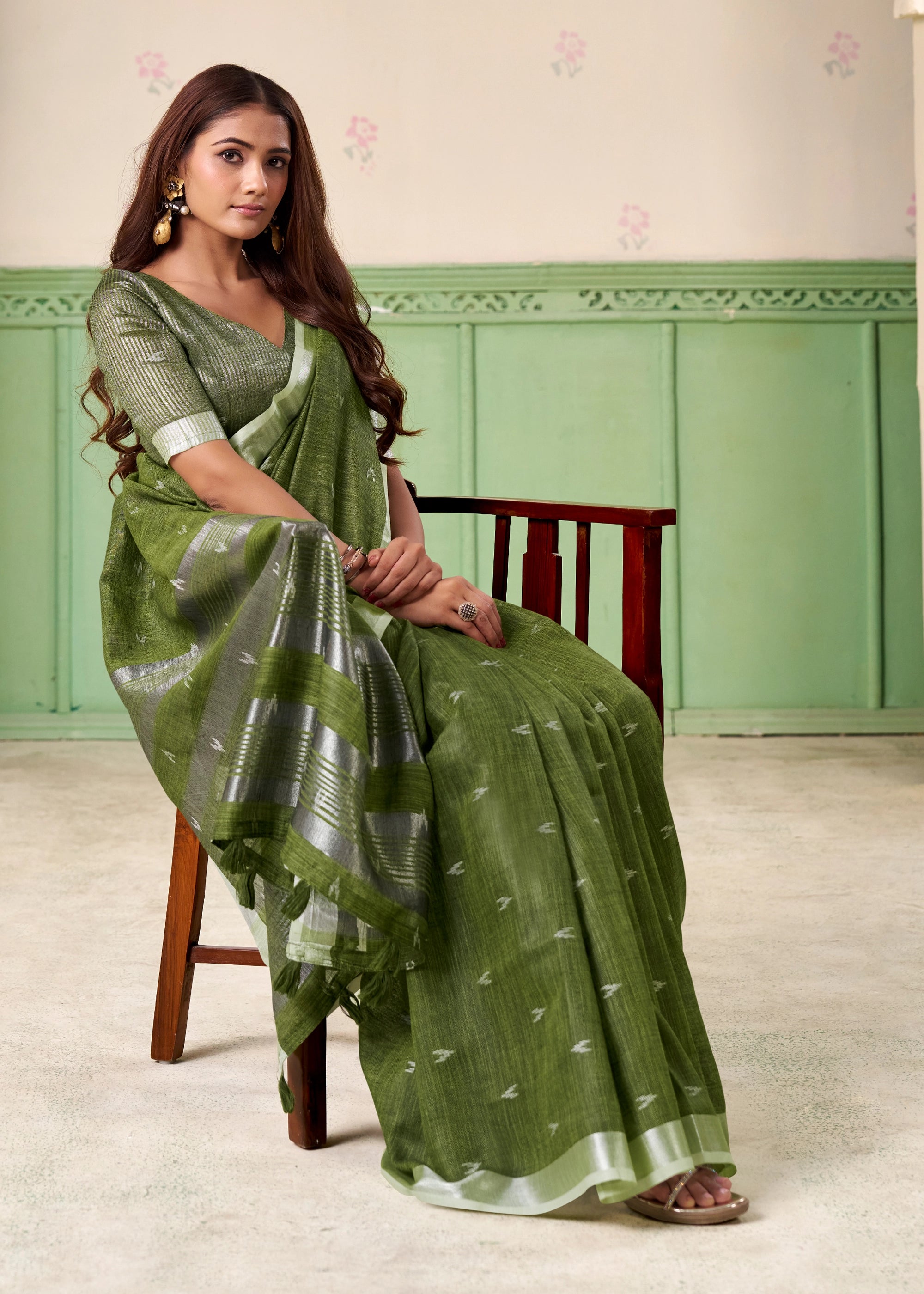 Graceful, breathable, and effortlessly elegant — this Linen Cotton Silk Saree brings together the best of three natural fibers. Crafted with the cool comfort of linen, the soft durability of cotton, and the luxurious sheen of silk, this saree is a timeless choice for both casual sophistication and festive charm.