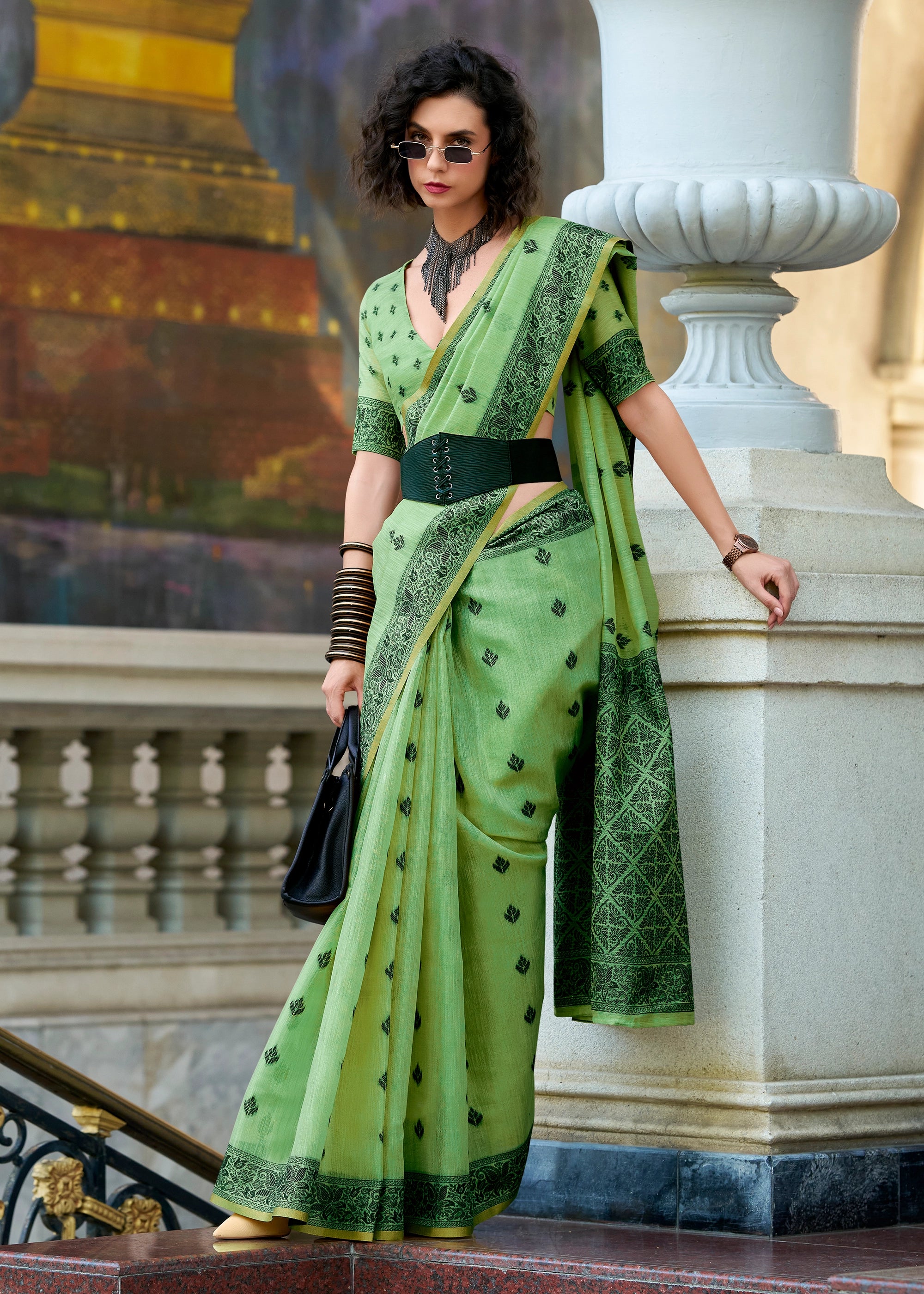 Pista Green Woven Tissue Linen Silk Saree