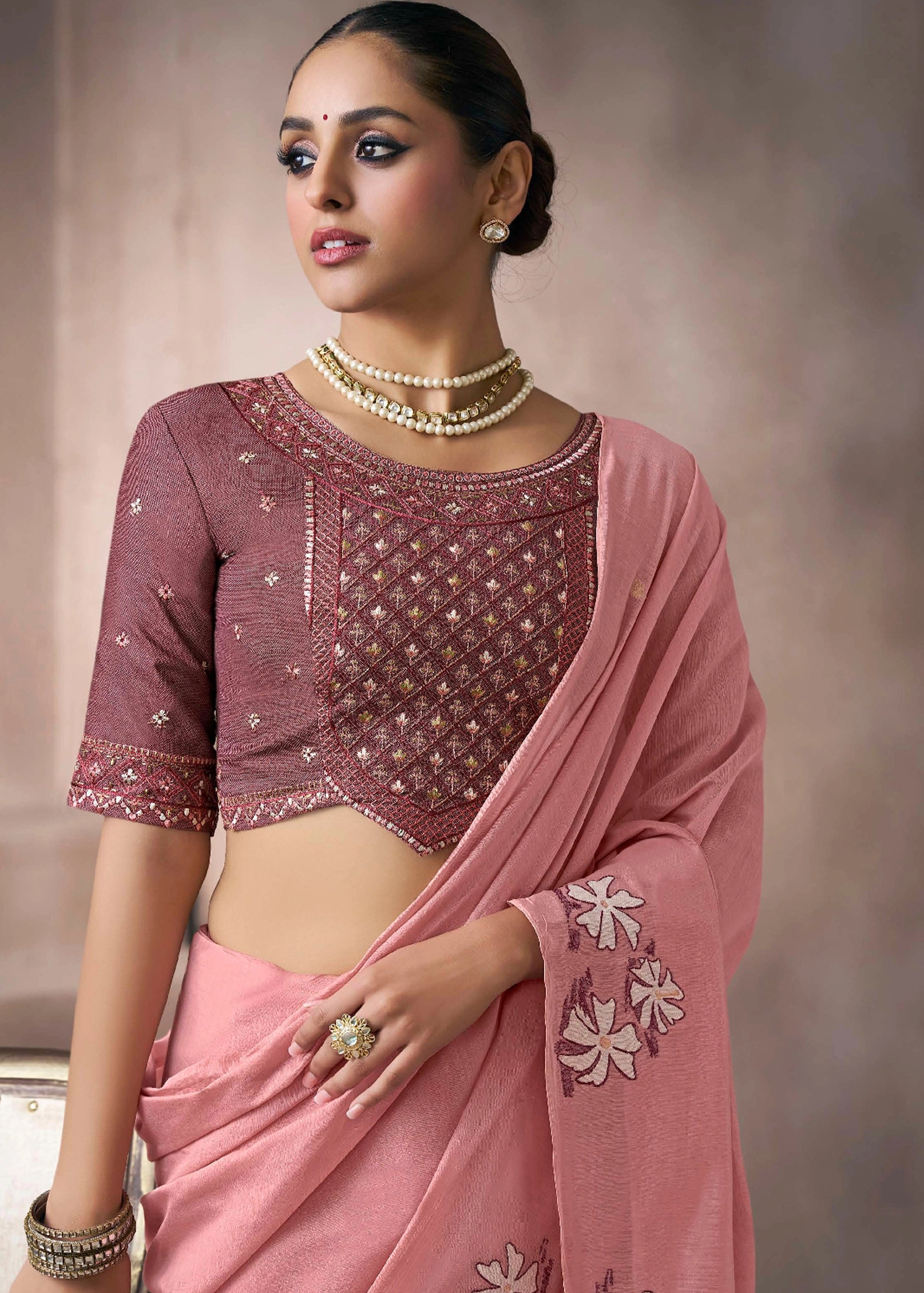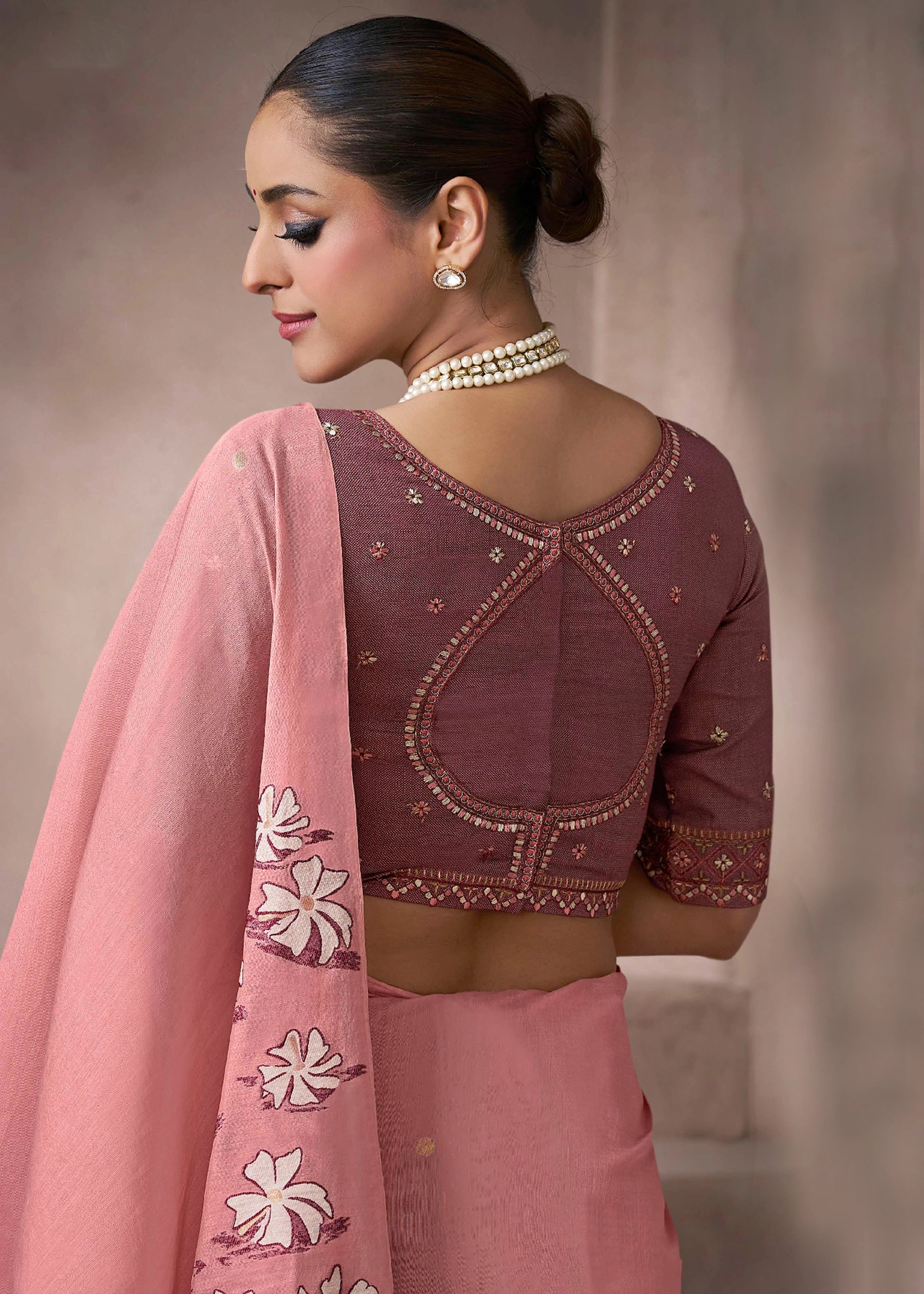 “Exclusive Offer” : Blush Pink Woven Cotton Silk Saree