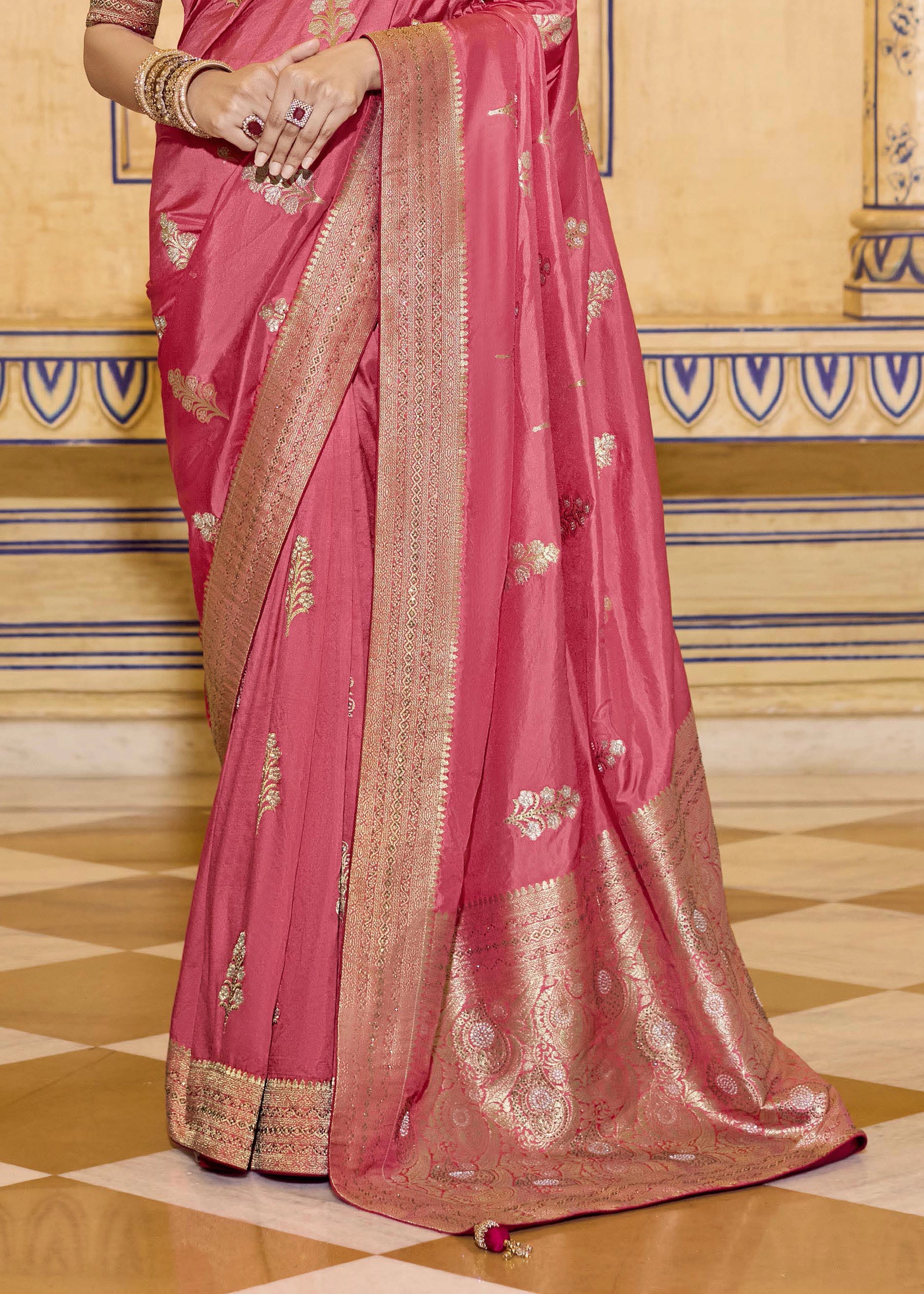 Gajari Pink Woven Banarasi Silk Saree