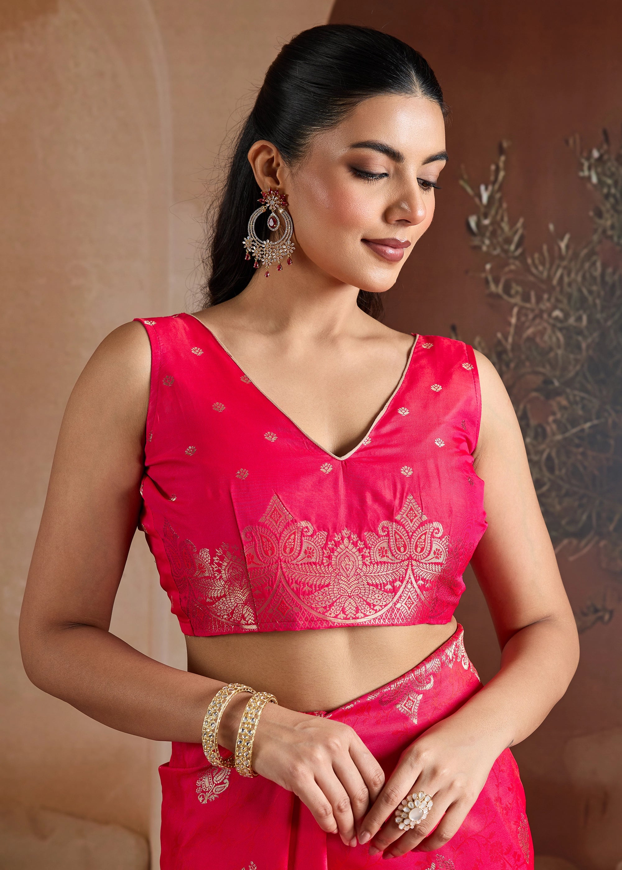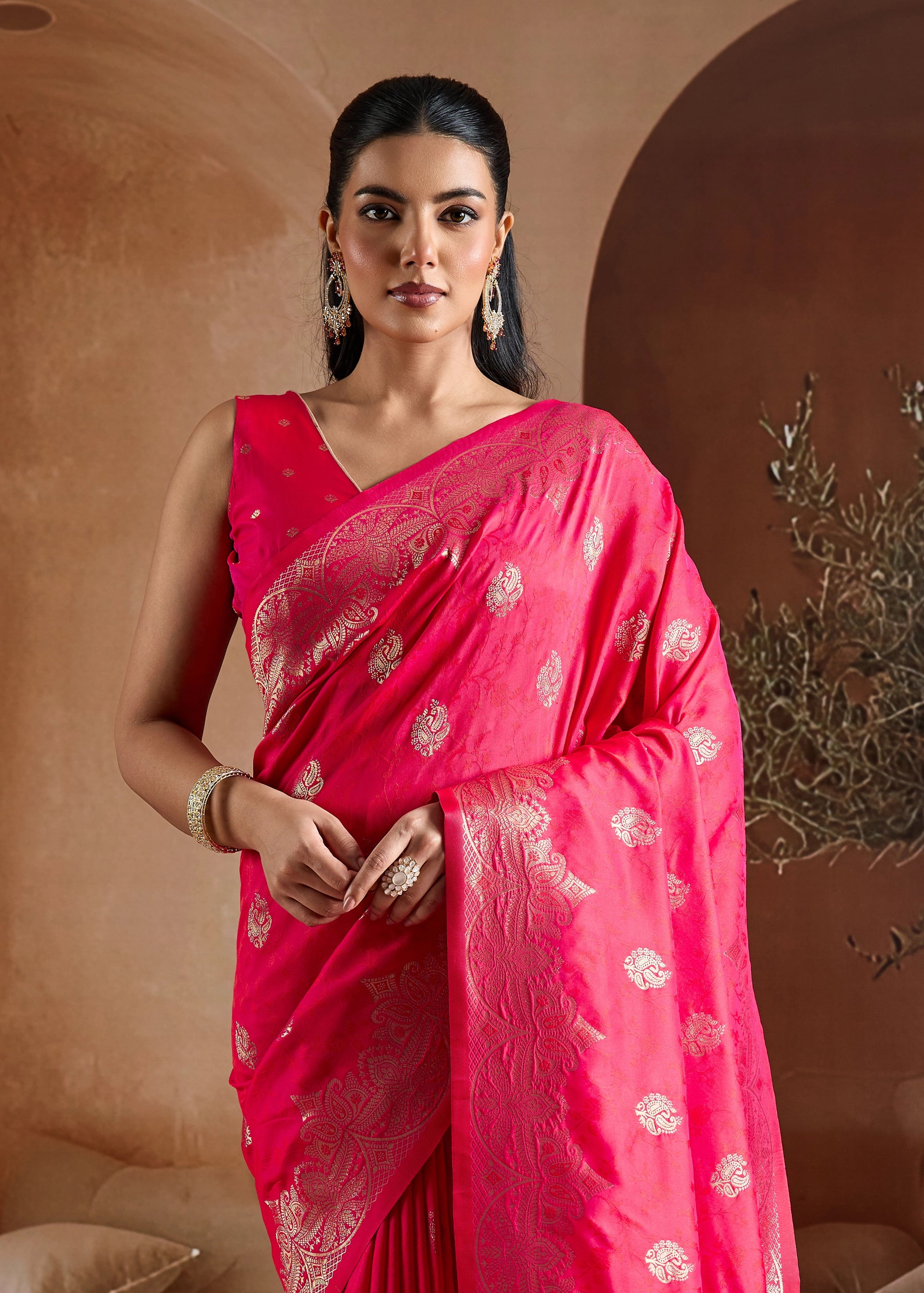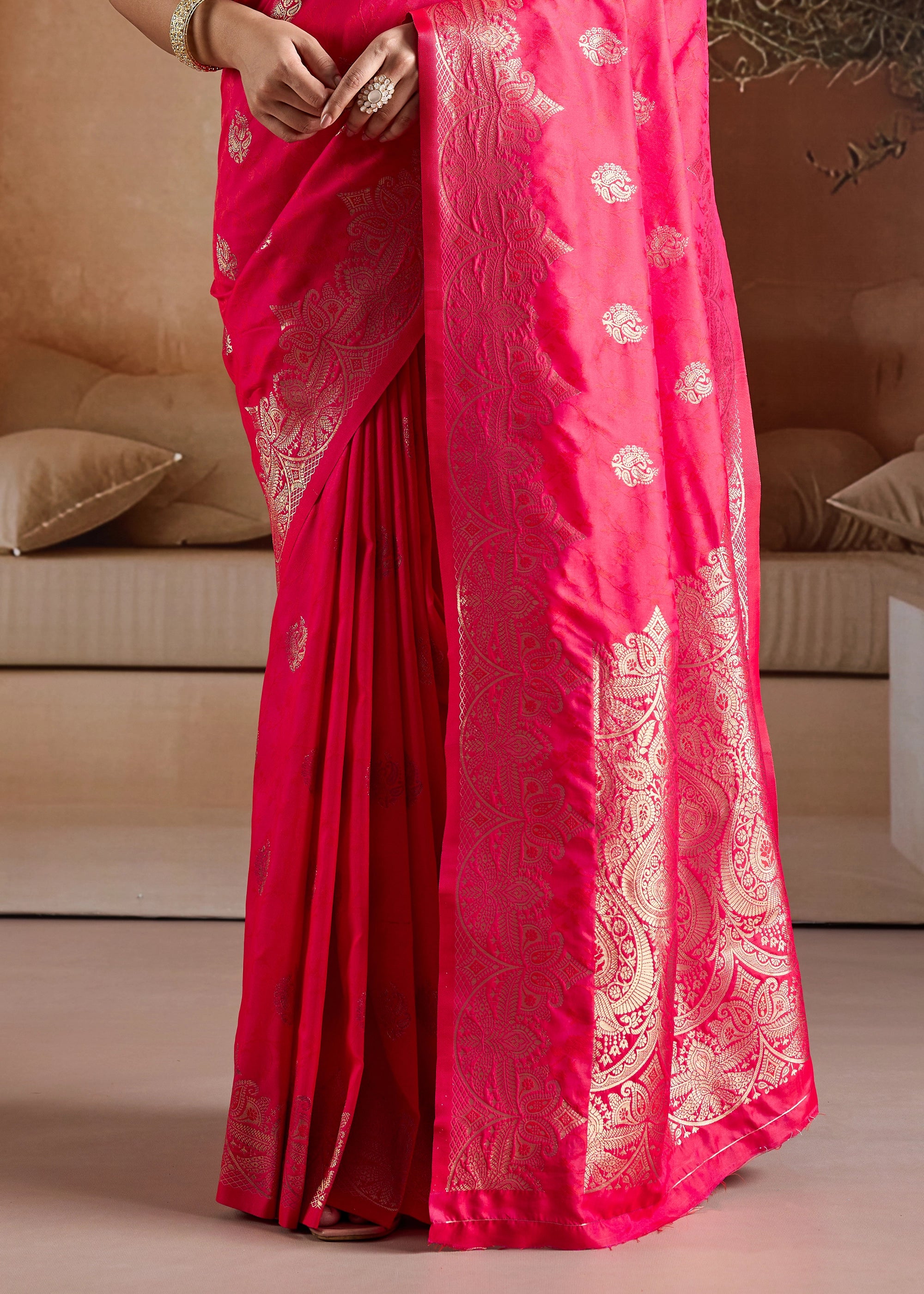 Hot Pink Woven Banarasi Silk Saree