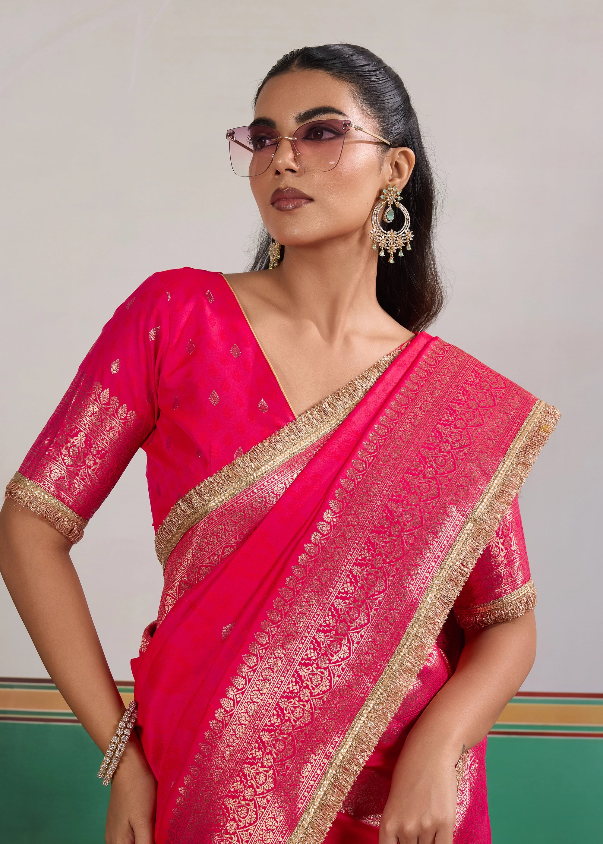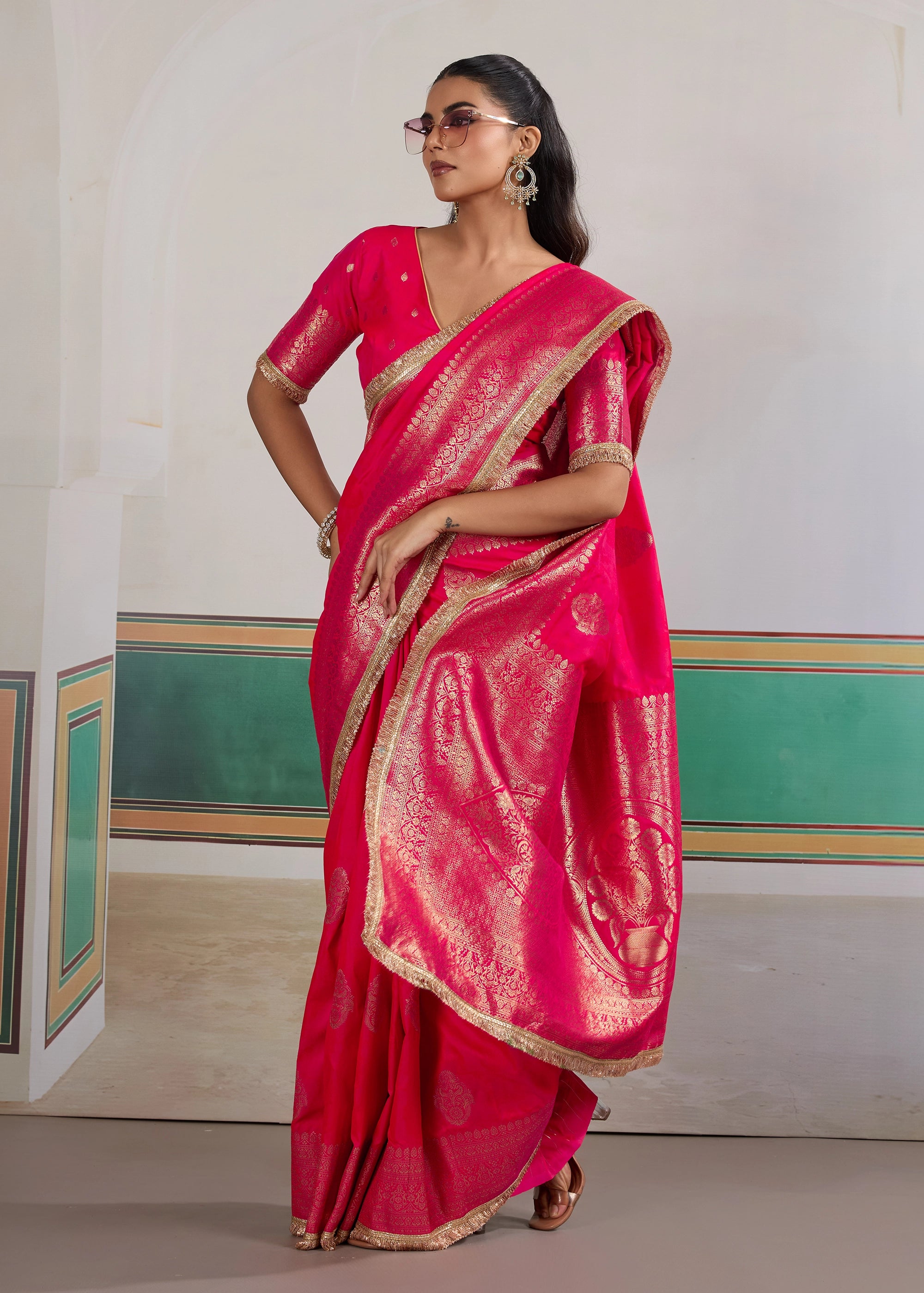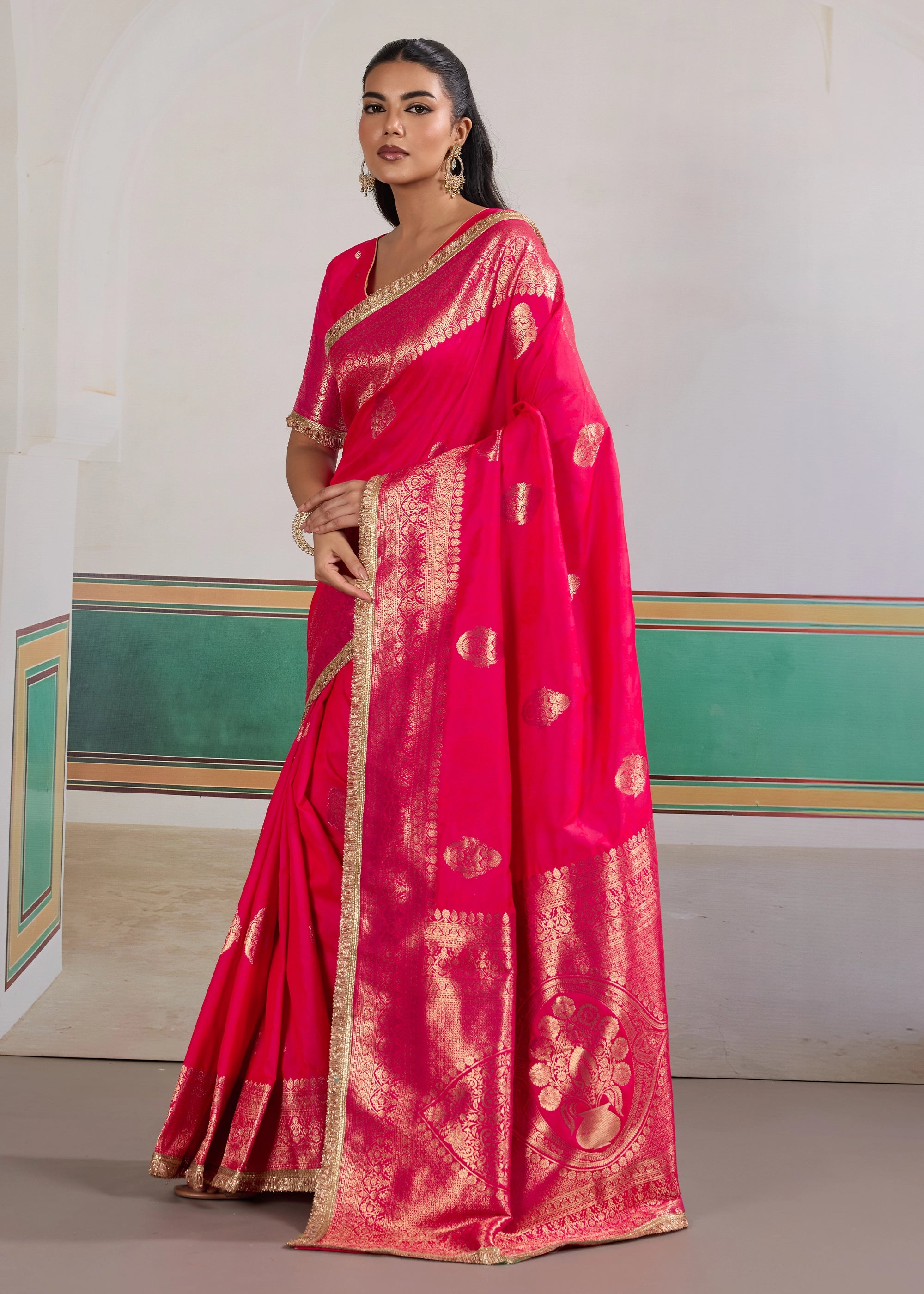 Princess Pink Woven Banarasi Satin Silk Saree