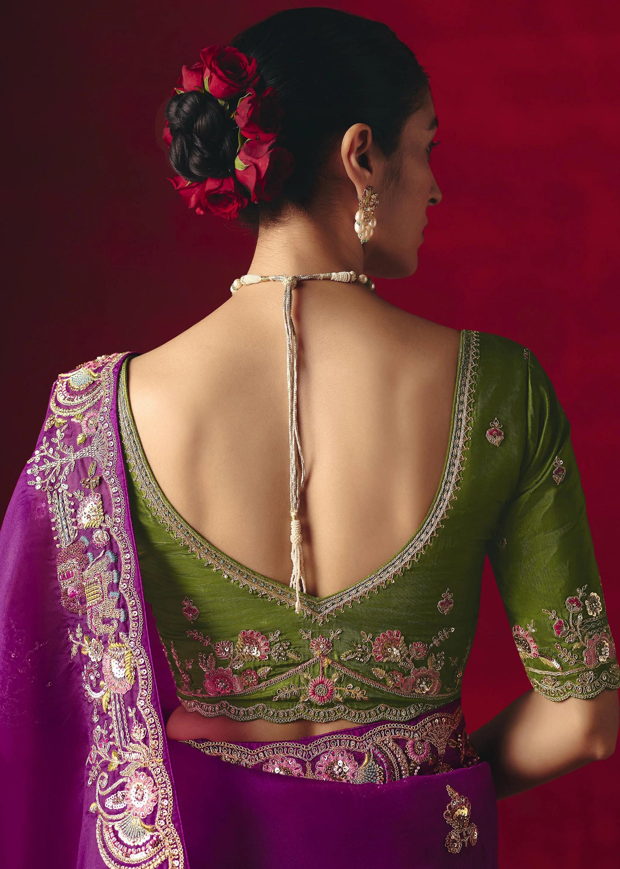 Berry Purple Designer Embroidered Saree