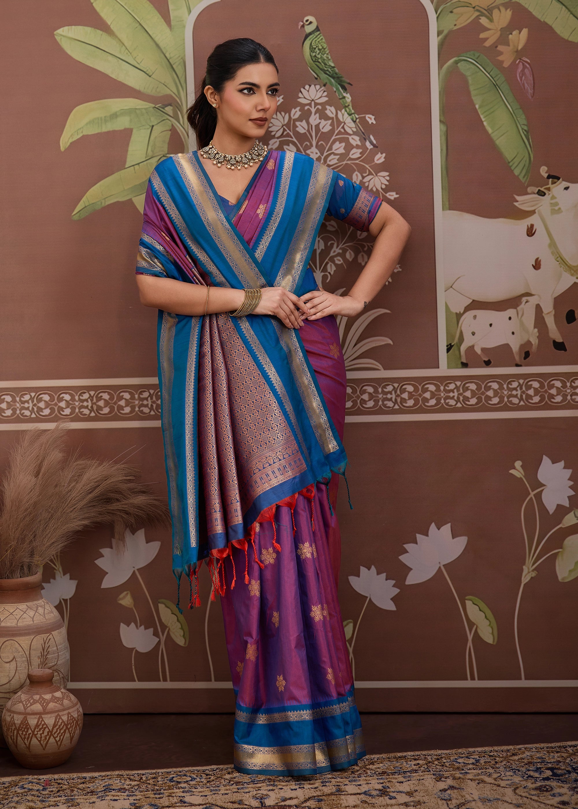 Discover the understated luxury of tradition with this exquisiteTussar Silk Saree, celebrated for its natural texture and rich golden sheen. Woven from pure tussar silk threads, this saree embodies earthy elegance and timeless craftsmanship.