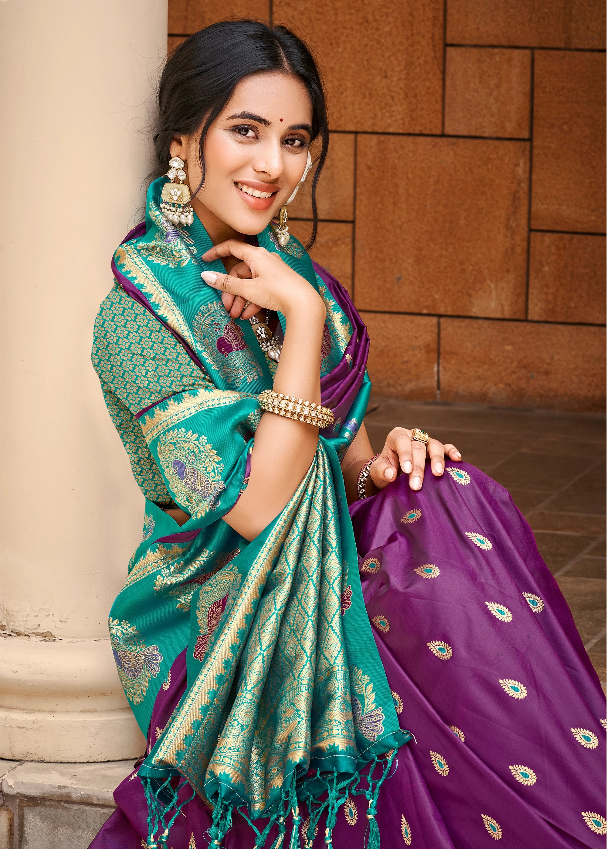 Drape yourself in this stunning saree, featuring vibrant borders and intricate weaving.Perfect for traditional events or weddings, this attire showcases elegant zari work for a touch of timeless charm.