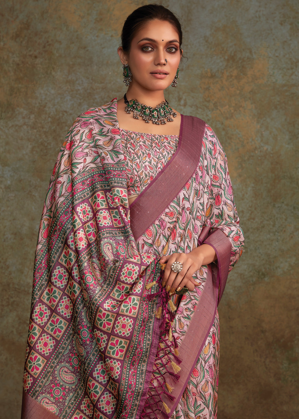 Wine Purple Printed Soft Silk Saree