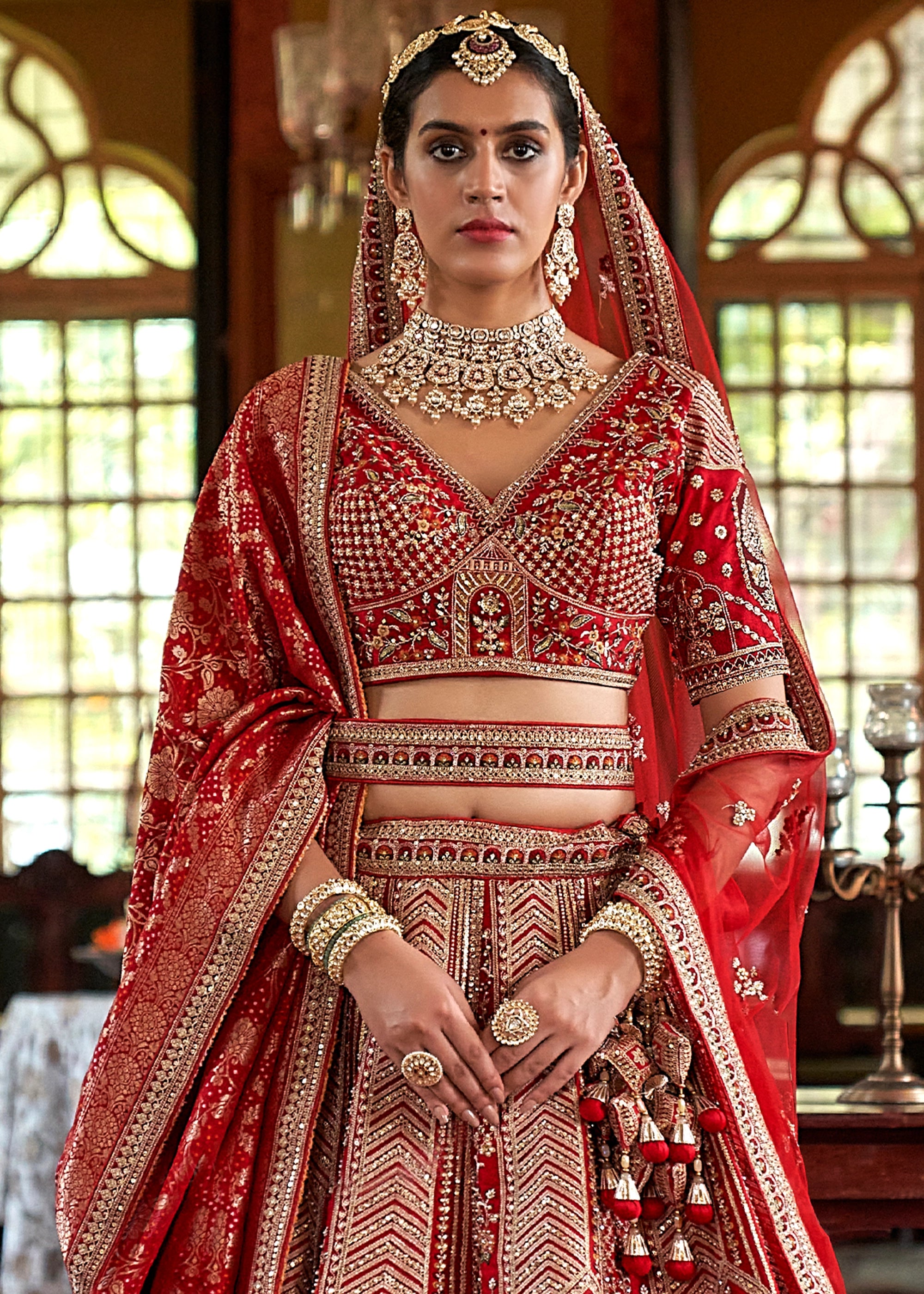 Bridal Red Heavy Embroidered Designer Lehenga
