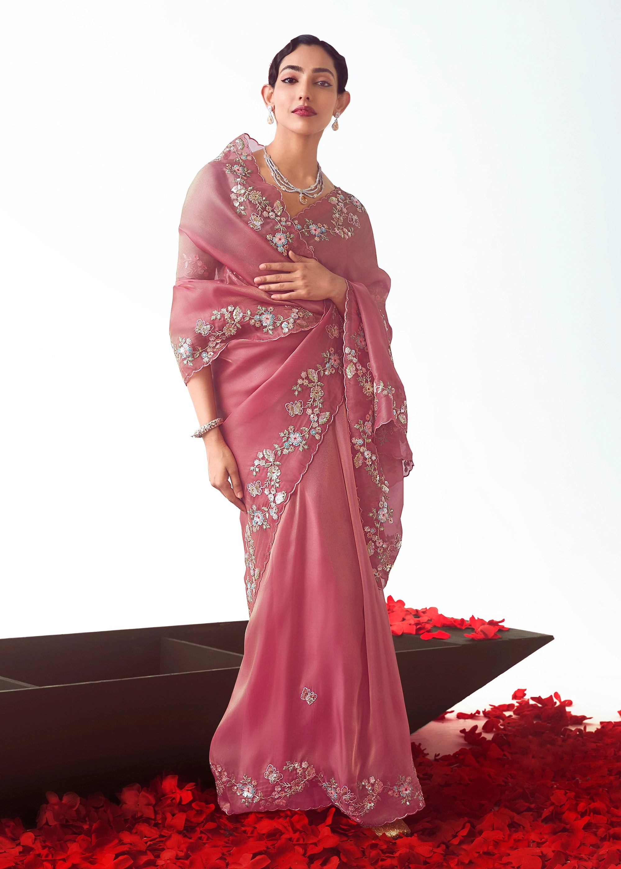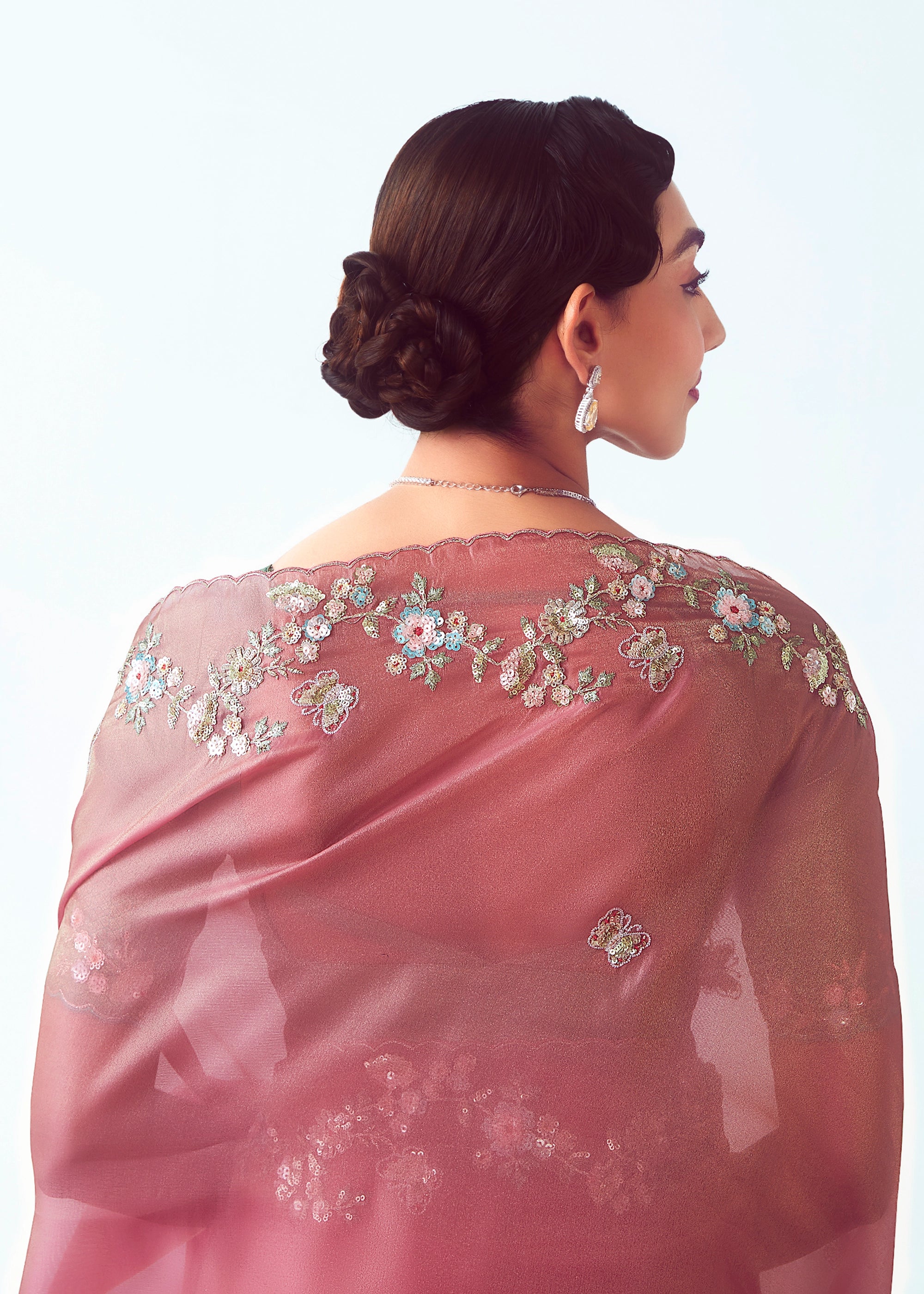 Blush Pink Embroidered Designer Tissue Saree