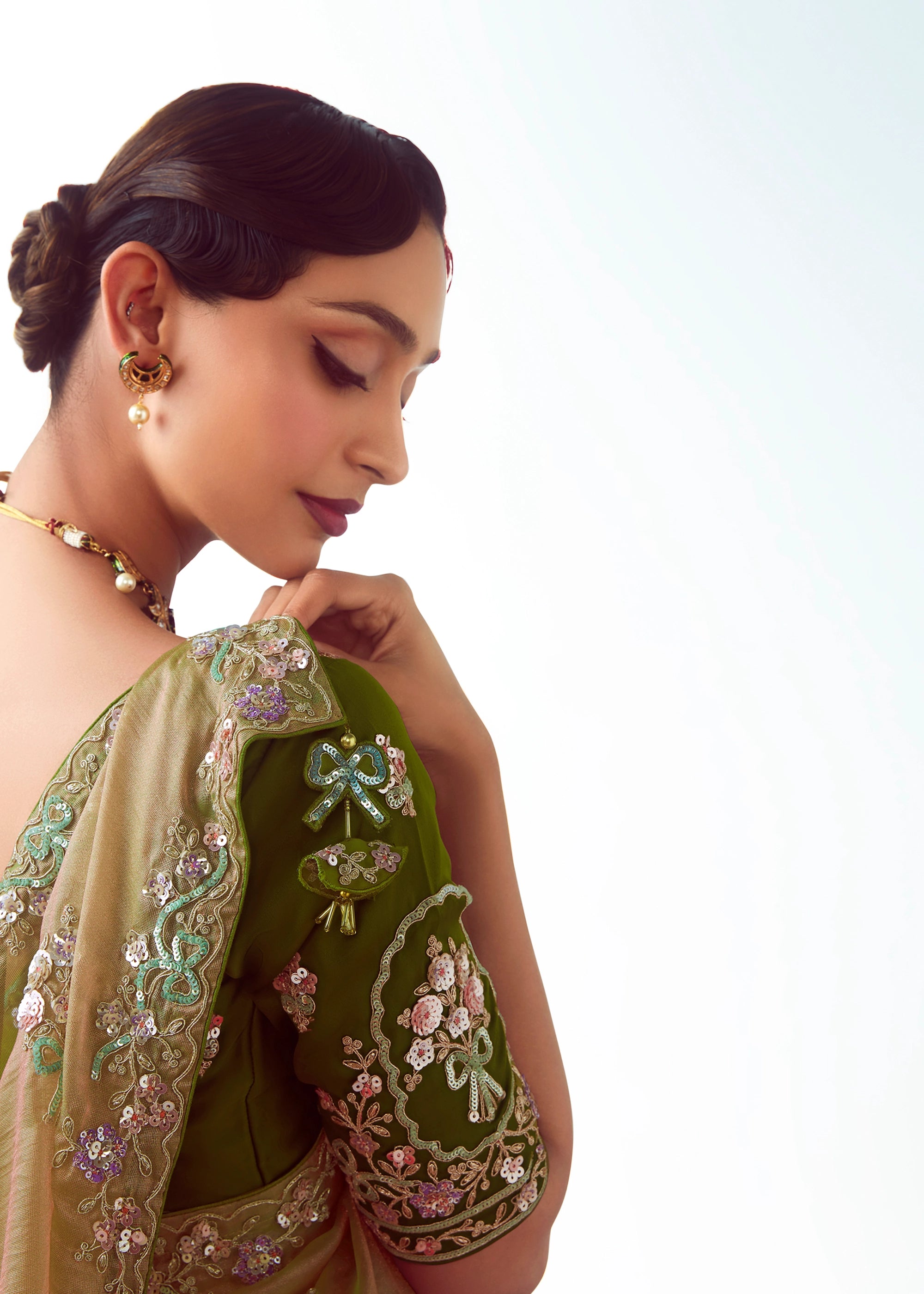 Drape yourself in this beautiful Banarasi saree with Zari woven work. This saree is woven by master weavers of Banaras. Be it your sangeet ceremony or haldi or any auspicious ceremonies, this saree will be the best companion, with the rich style and color coordination this saree is a must in wardrobe! Style it with a potli bag and high heels for a flawless look.