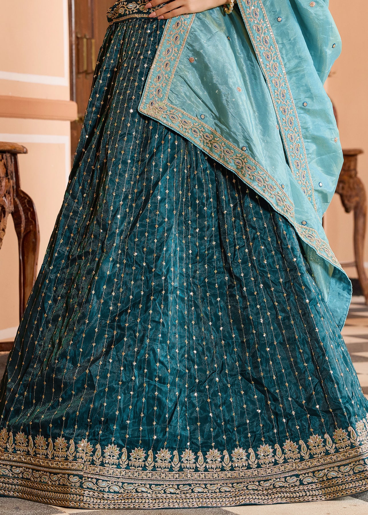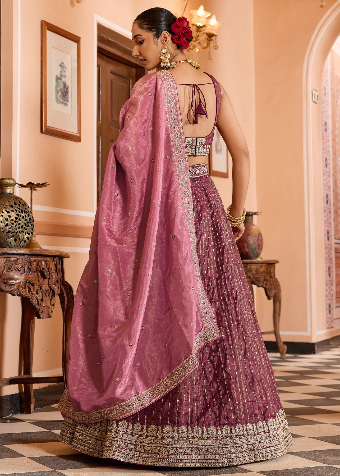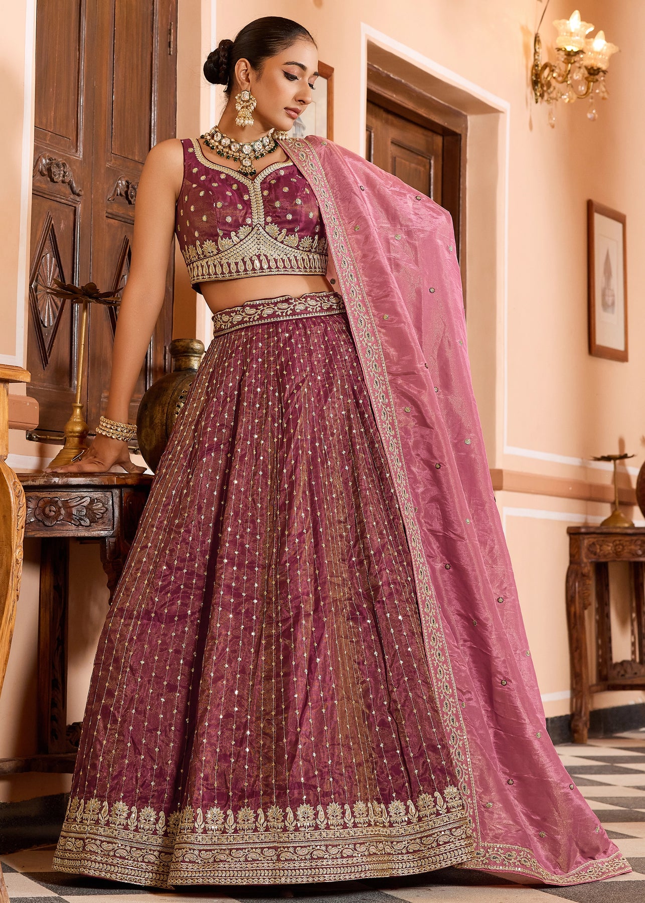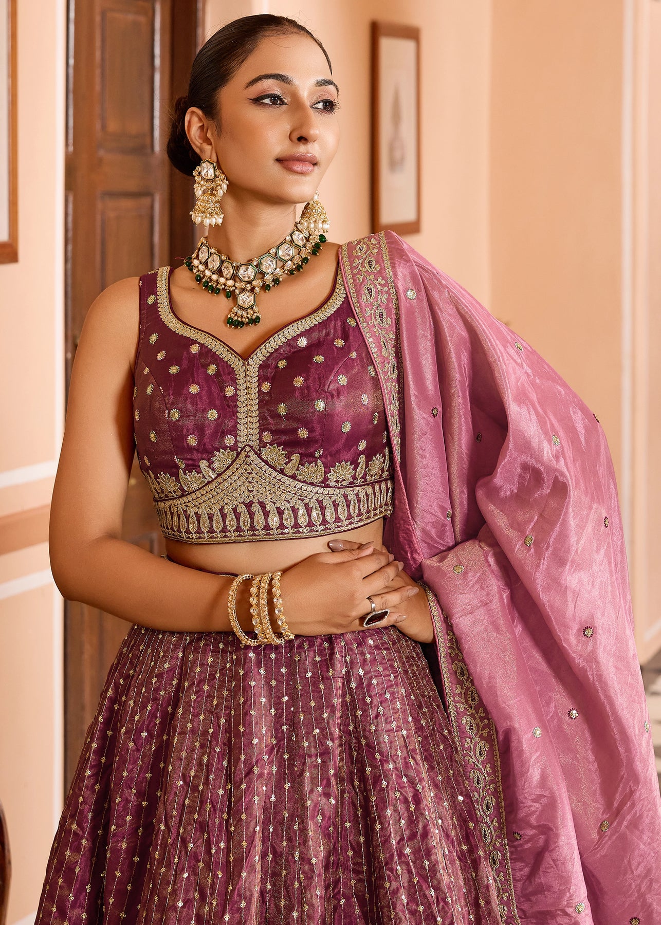 This stunning tissue silk saree features delicate resham and sequin work, exuding warmth and festive radiance. A truly graceful choice for weddings or celebrations, it embodies a timeless and elegant style.