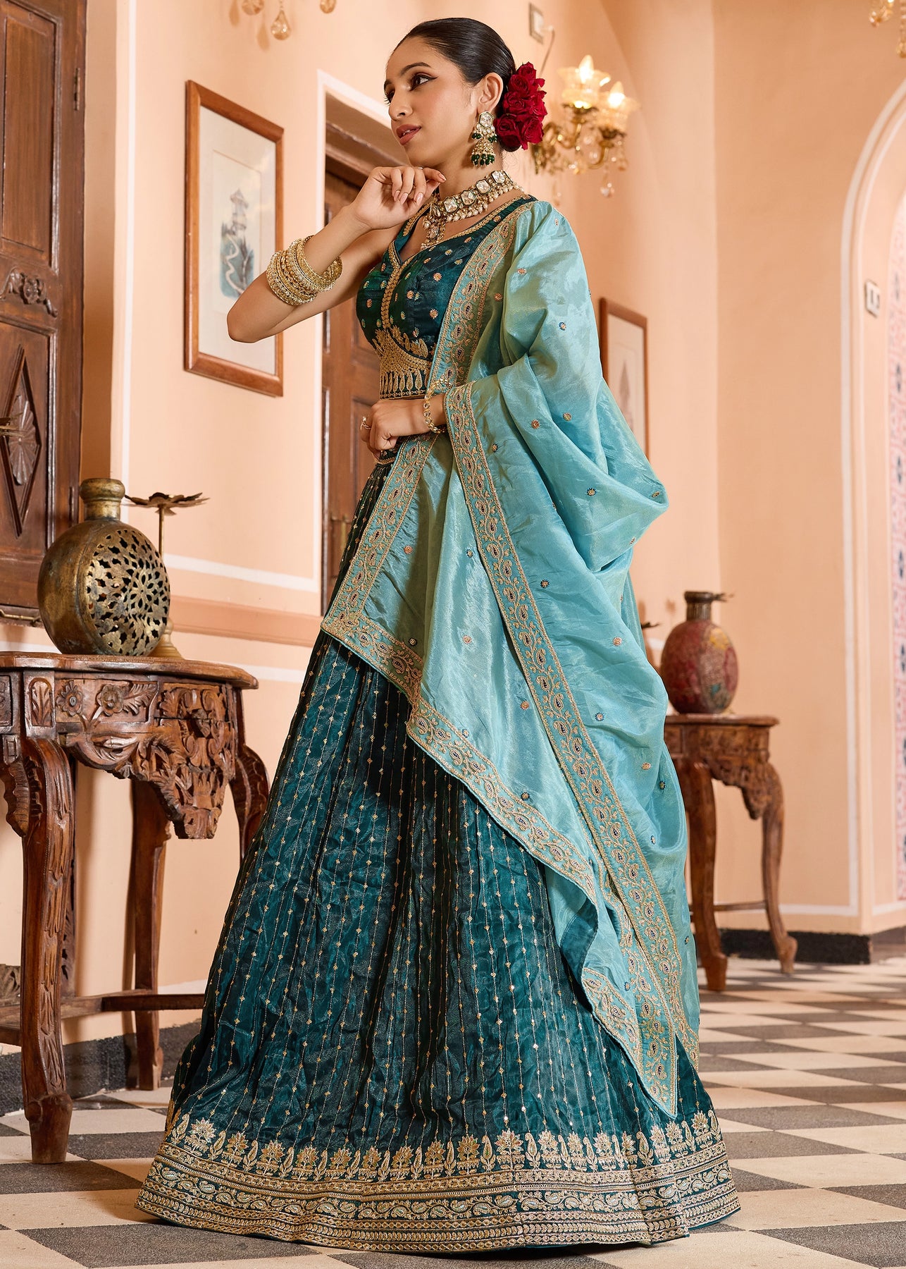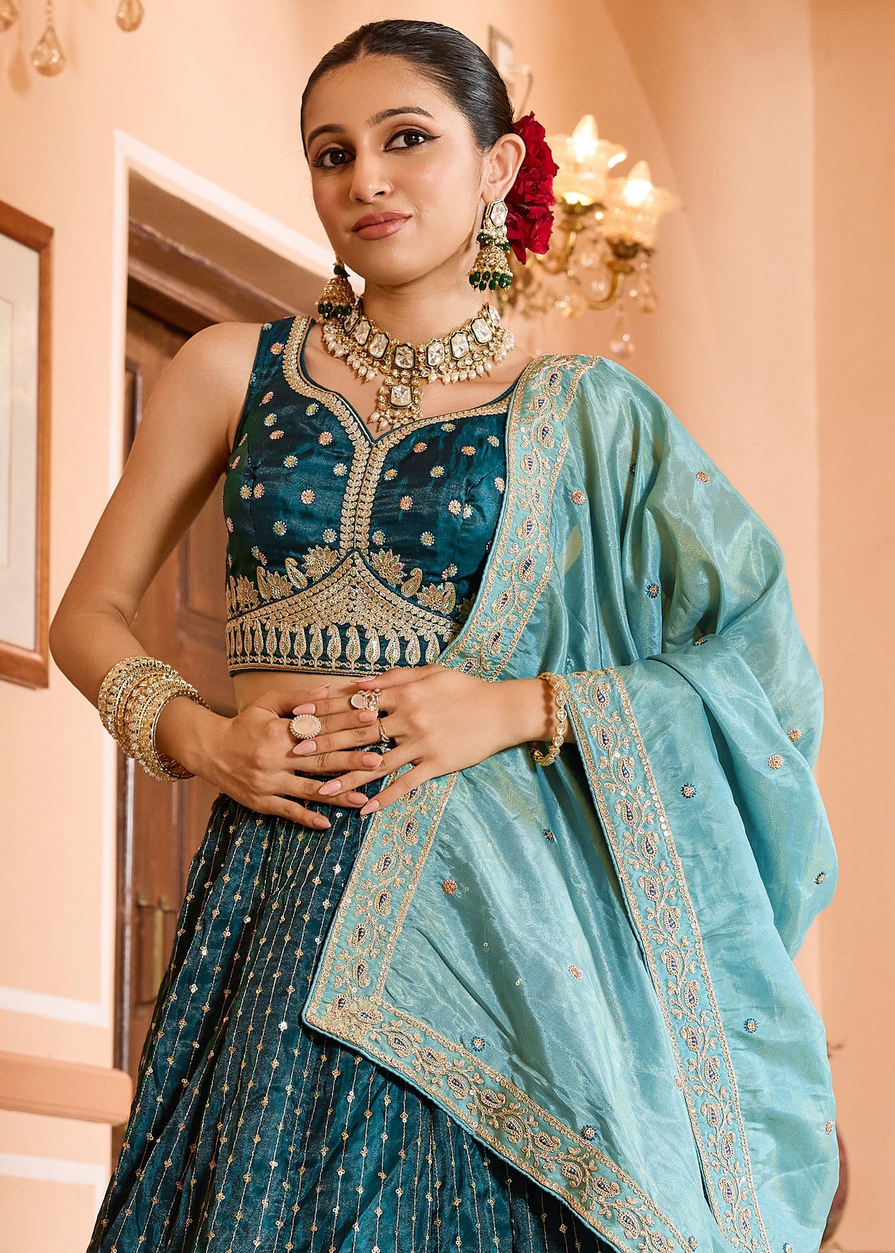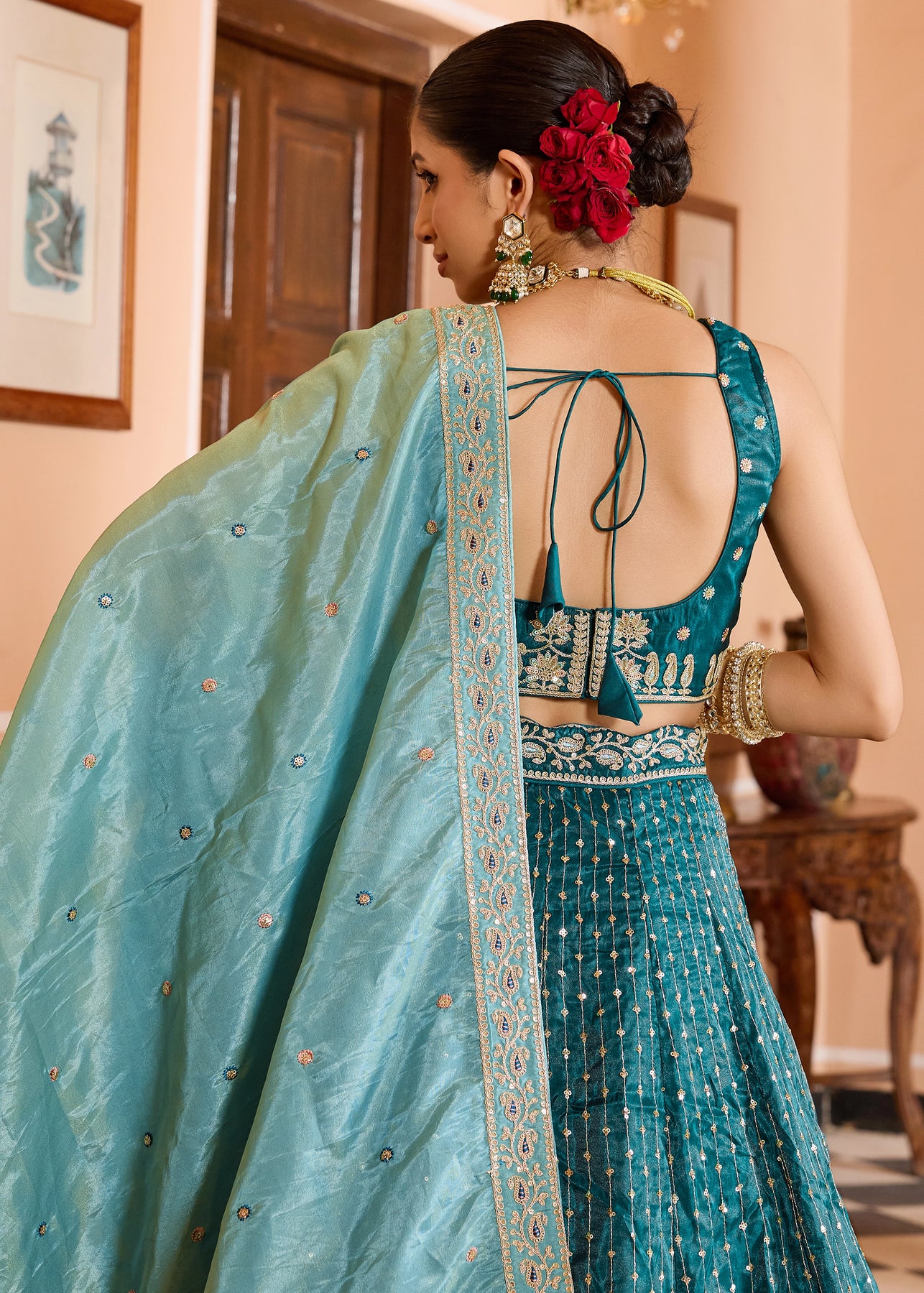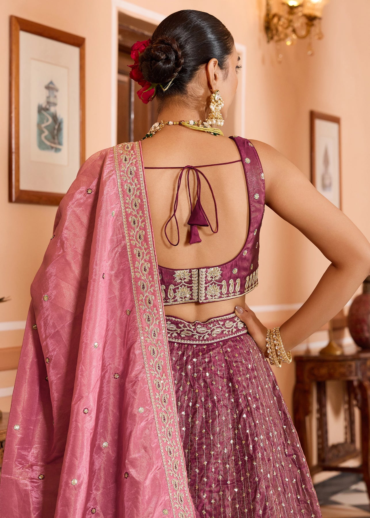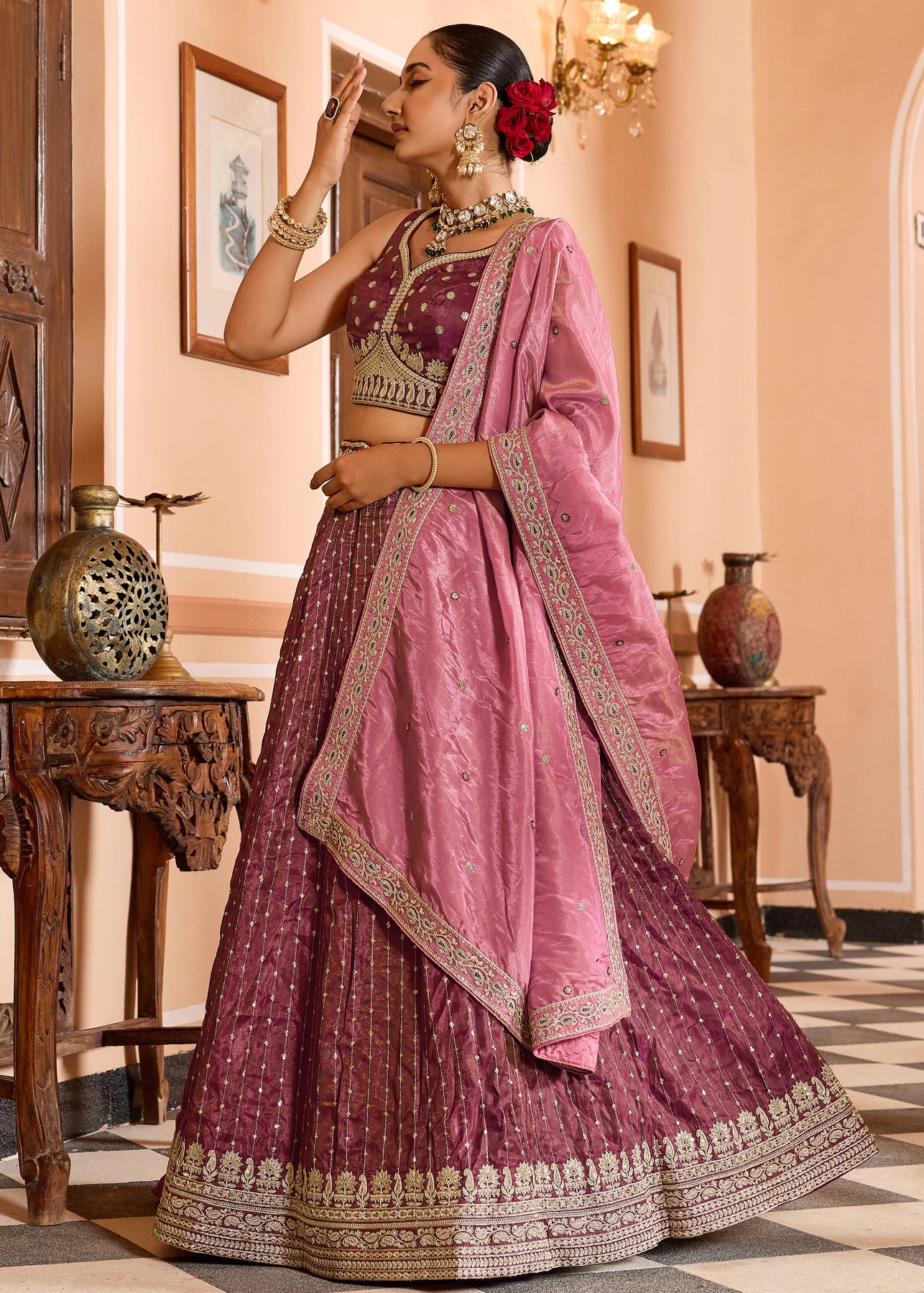 This stunning tissue silk saree features delicate resham and sequin work, exuding warmth and festive radiance. A truly graceful choice for weddings or celebrations, it embodies a timeless and elegant style.