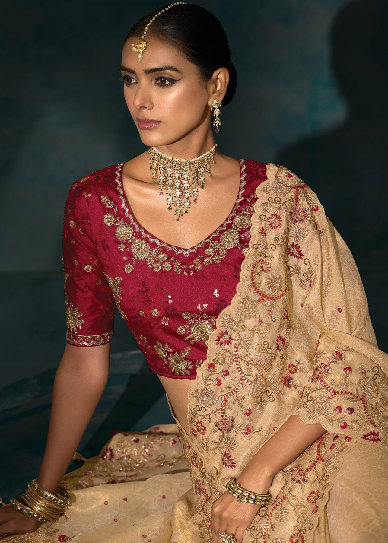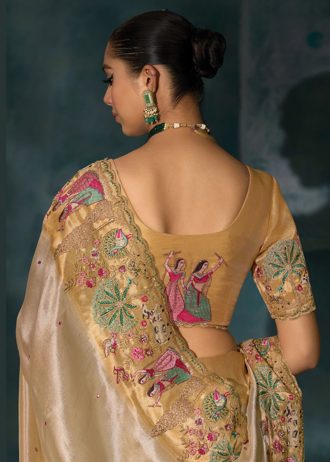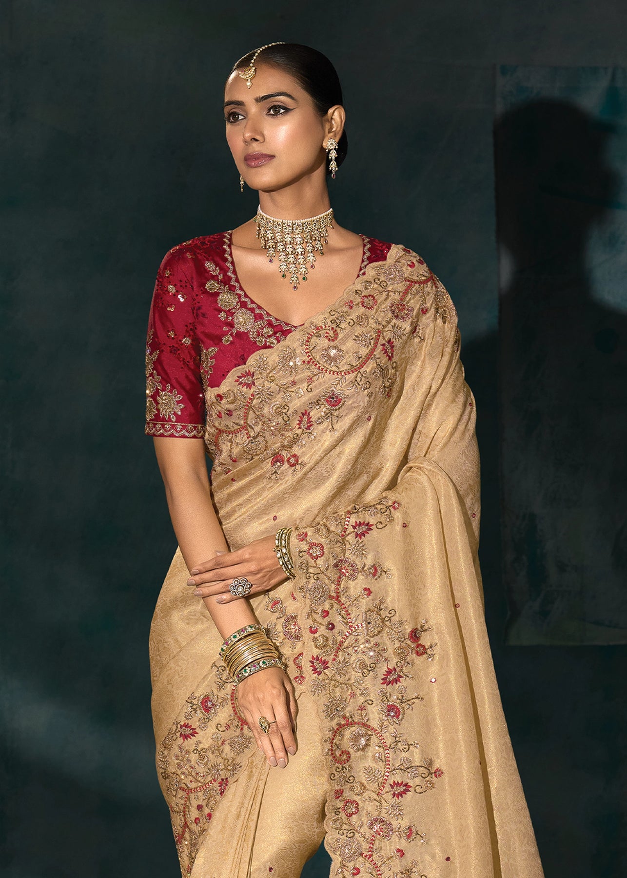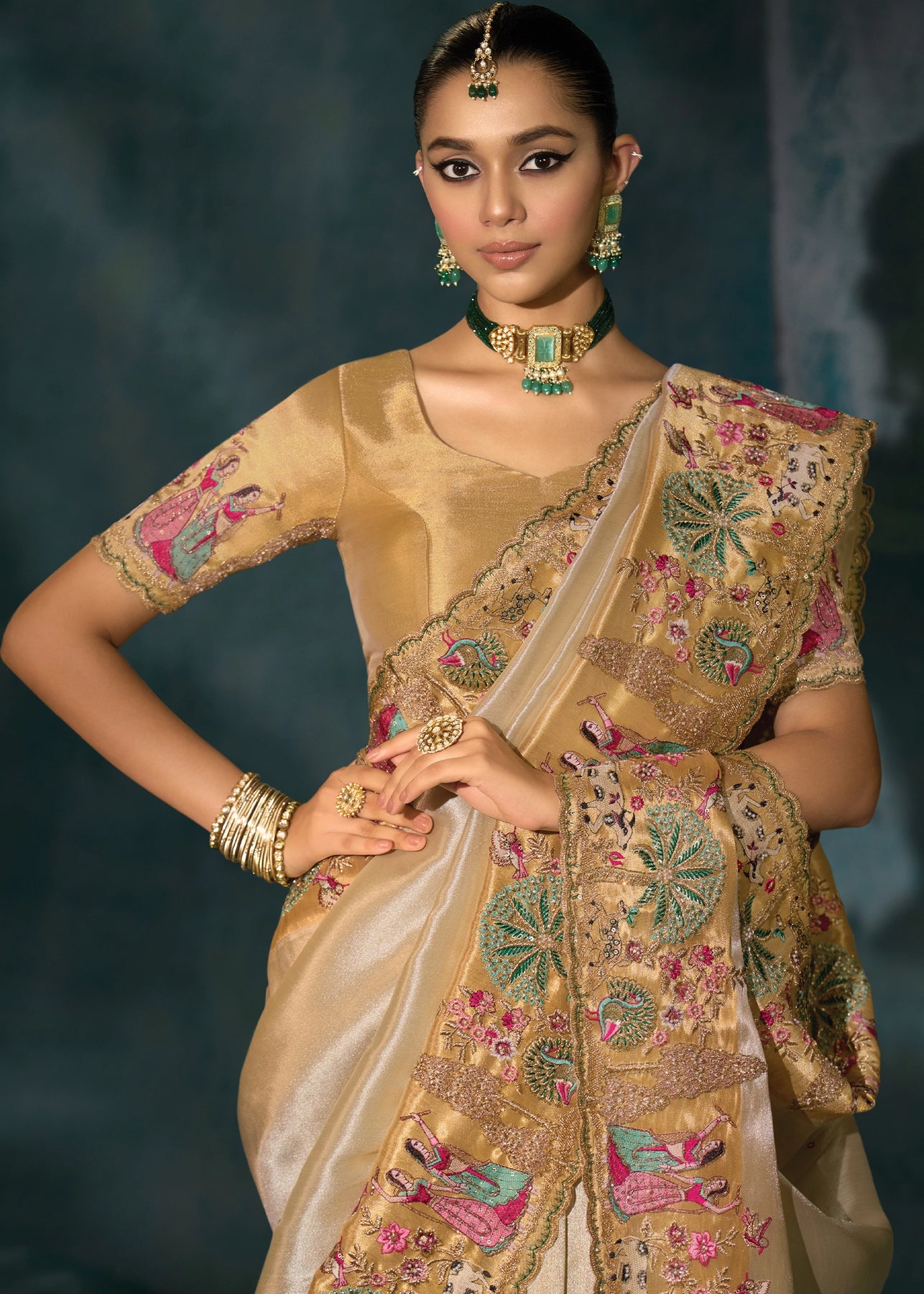 Rich Cream Embroidered Designer Tissue Saree