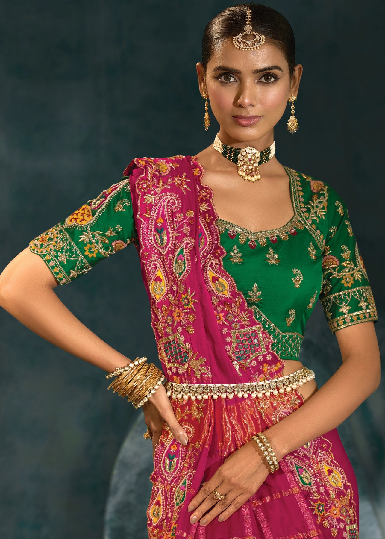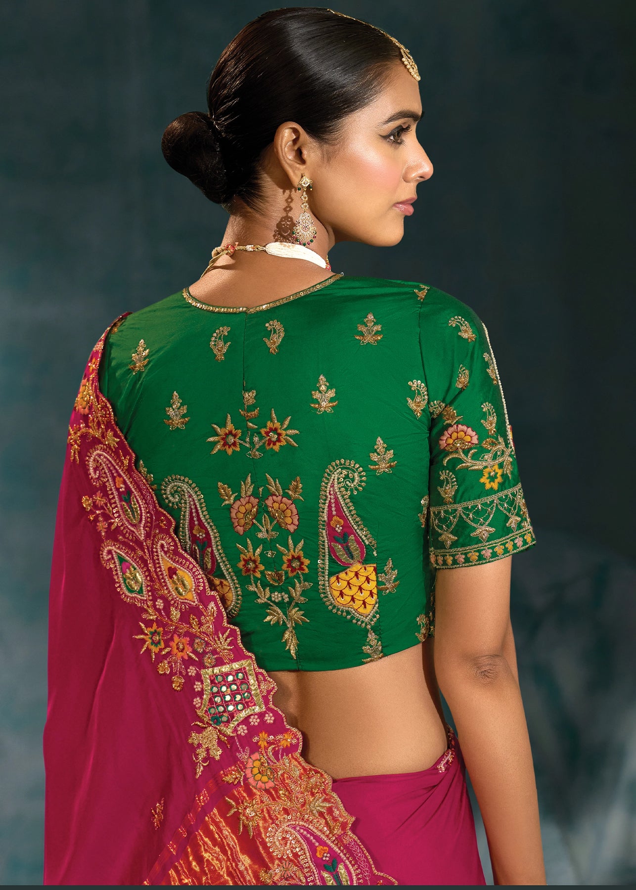 Raspberry Pink Embroidered Designer Tissue Saree