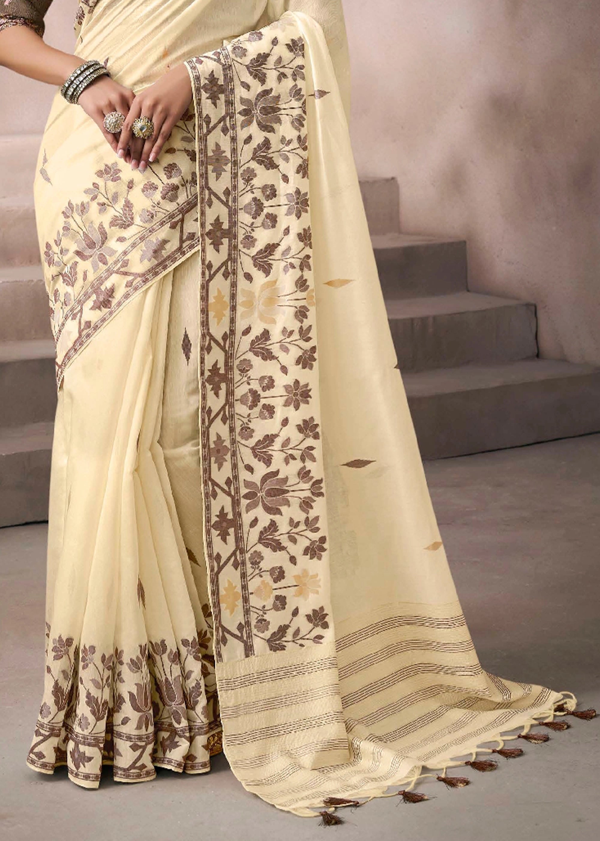 “Exclusive Offer” : Creamy White Woven Cotton Silk Saree
