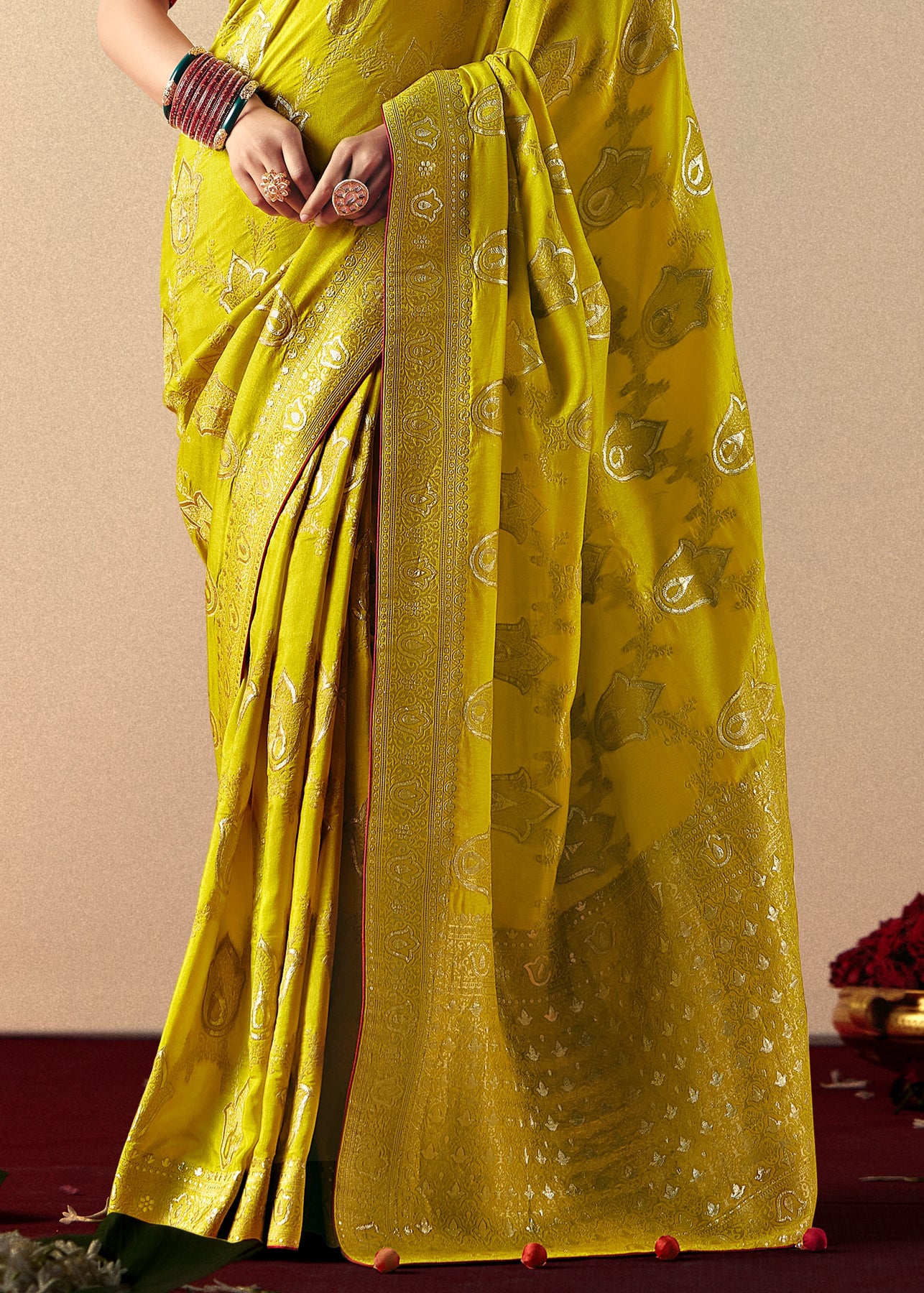 Aamras Yellow Woven Banarasi Silk Saree With Brocade Blouse